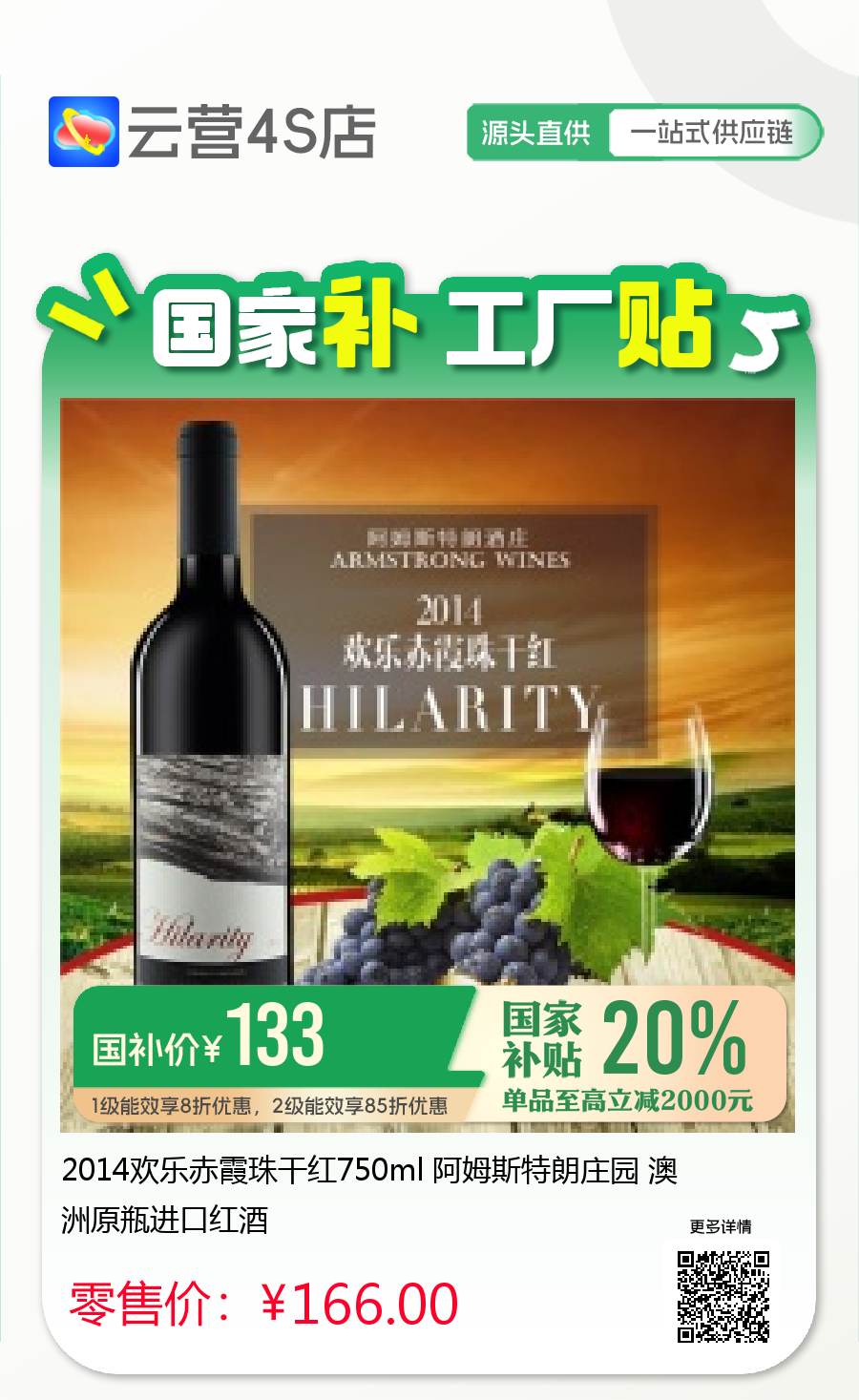 2014欢乐赤霞珠干红750ml 阿姆斯特朗庄园 澳洲原瓶进口红酒
