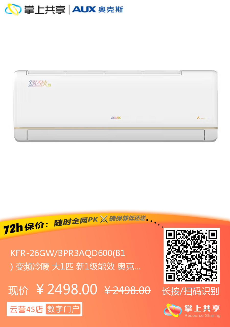 KFR-26GW/BPR3AQD600(B1) 变频冷暖 大1匹 新1级能效 奥克斯空调 舒适侠III系列