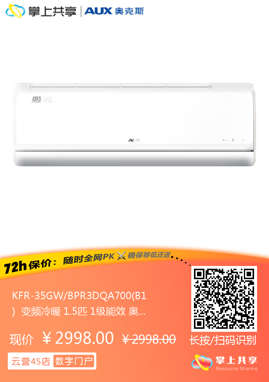 KFR-35GW/BPR3DQA700(B1) 变频冷暖 1.5匹 1级能效 奥克斯空调 奥知音系列