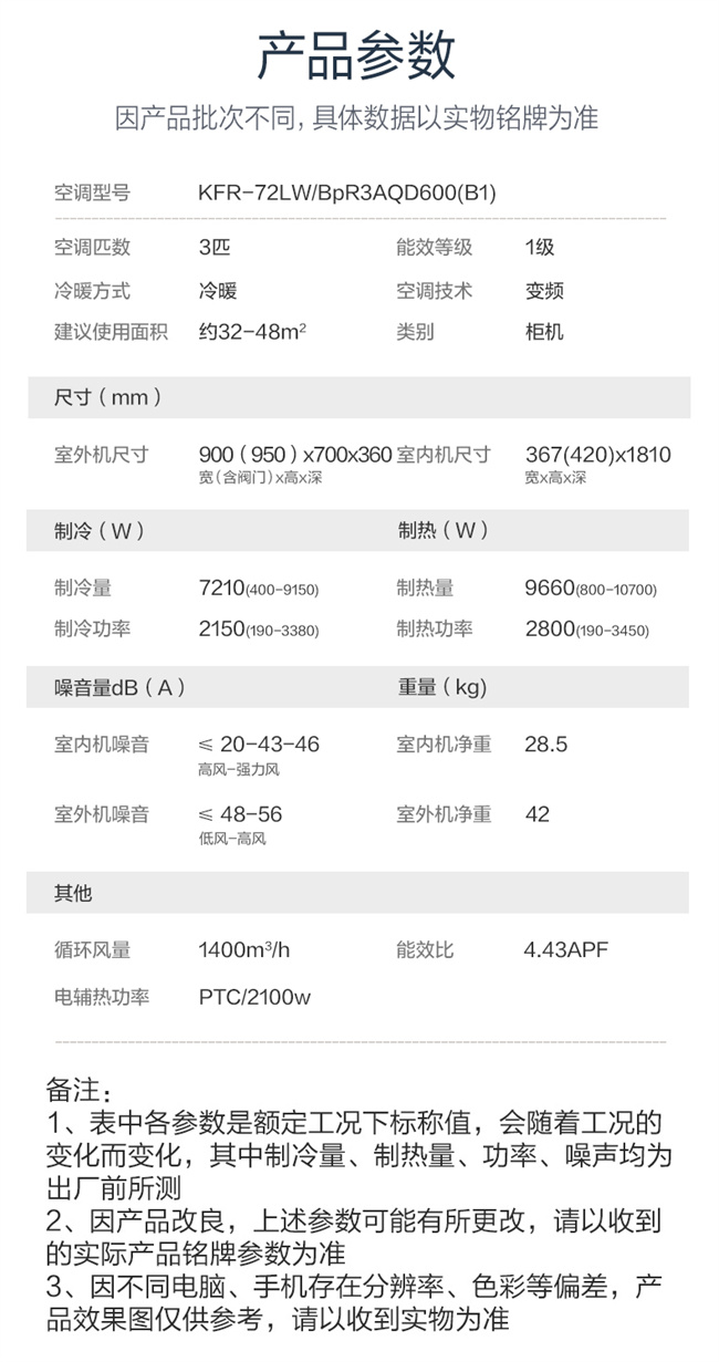 KFR-72LW/BPR3AQD600(B1) 变频冷暖 大3匹 1级能效 奥克斯空调 舒适侠III系列