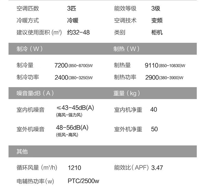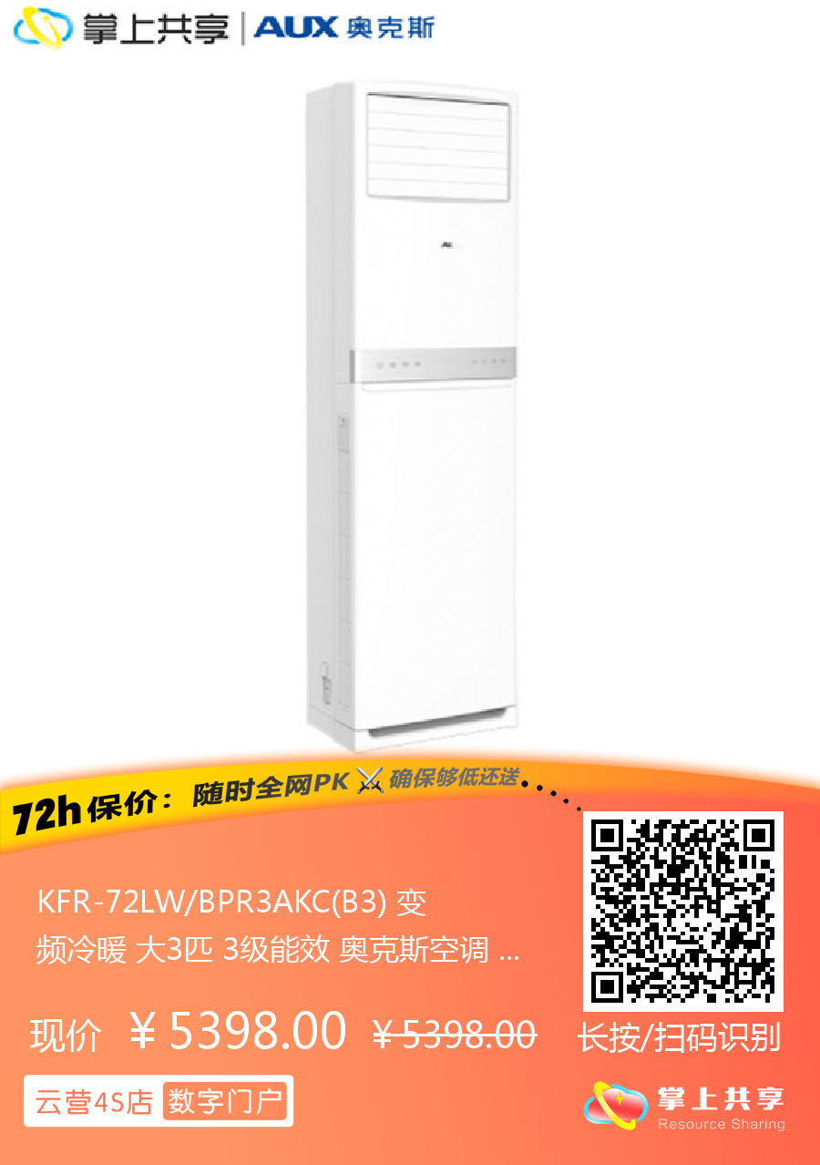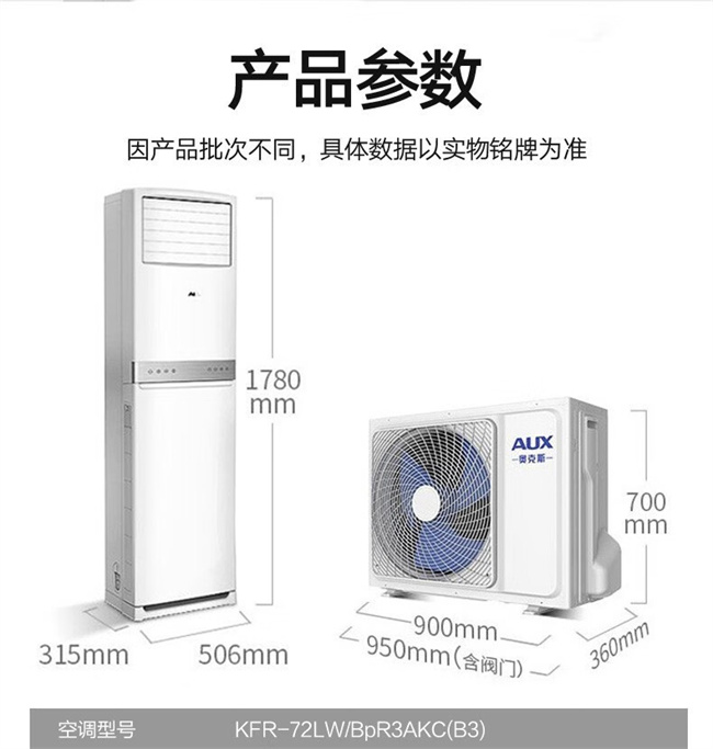 KFR-72LW/BPR3AKC(B3) 变频冷暖 大3匹 3级能效 奥克斯空调 商居两用