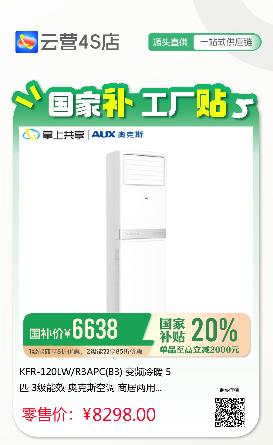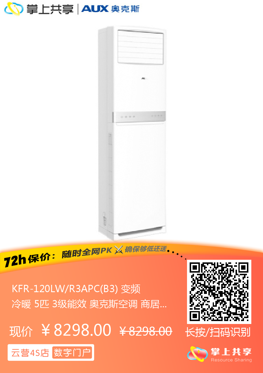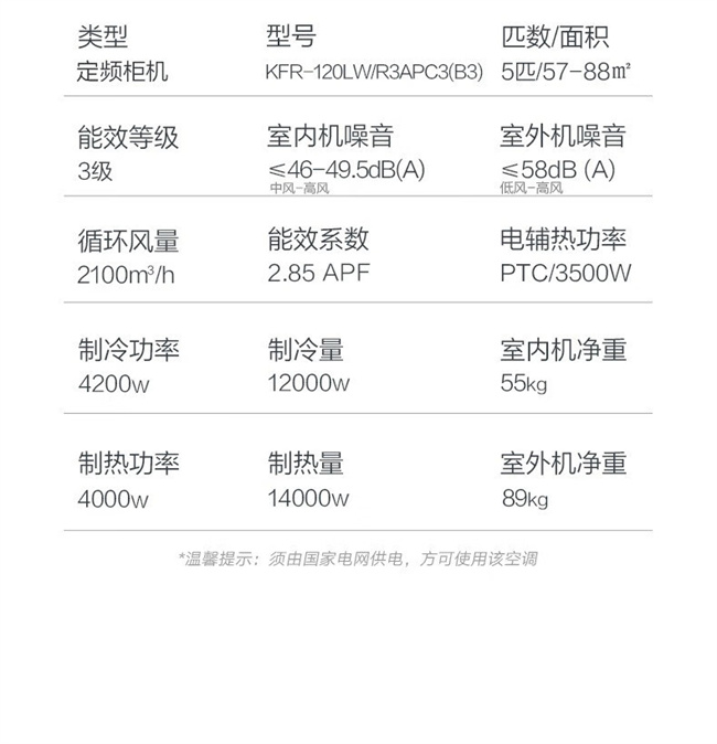 KFR-120LW/R3APC(B3) 变频冷暖 5匹 3级能效 奥克斯空调 商居两用