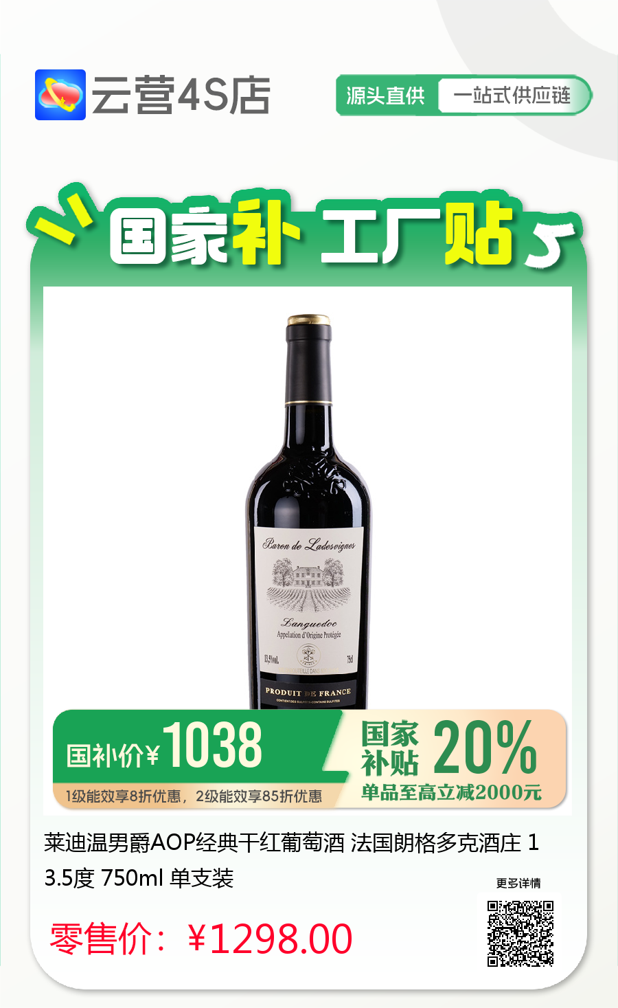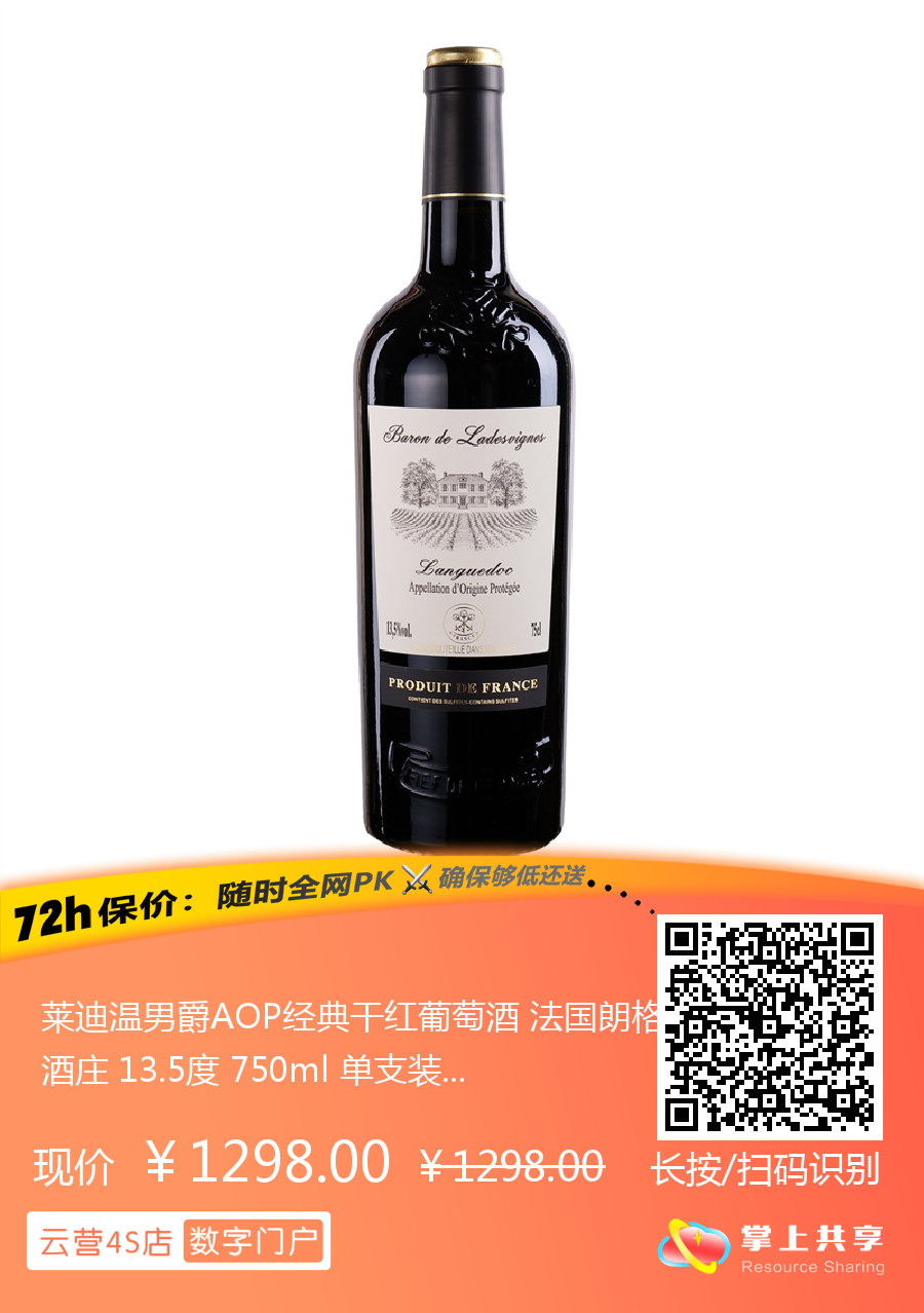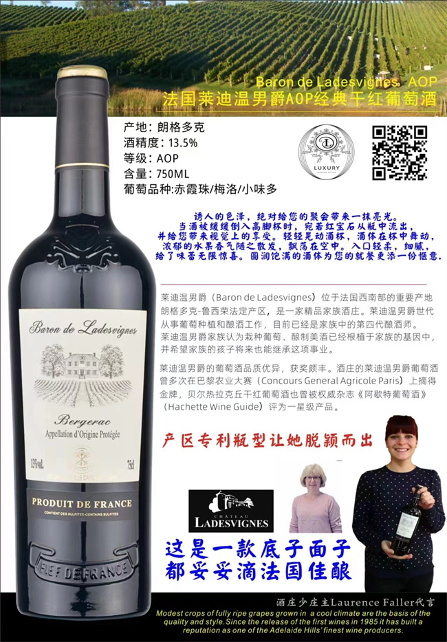 莱迪温男爵AOP经典干红葡萄酒 法国朗格多克酒庄 13.5度 750ml 单支装