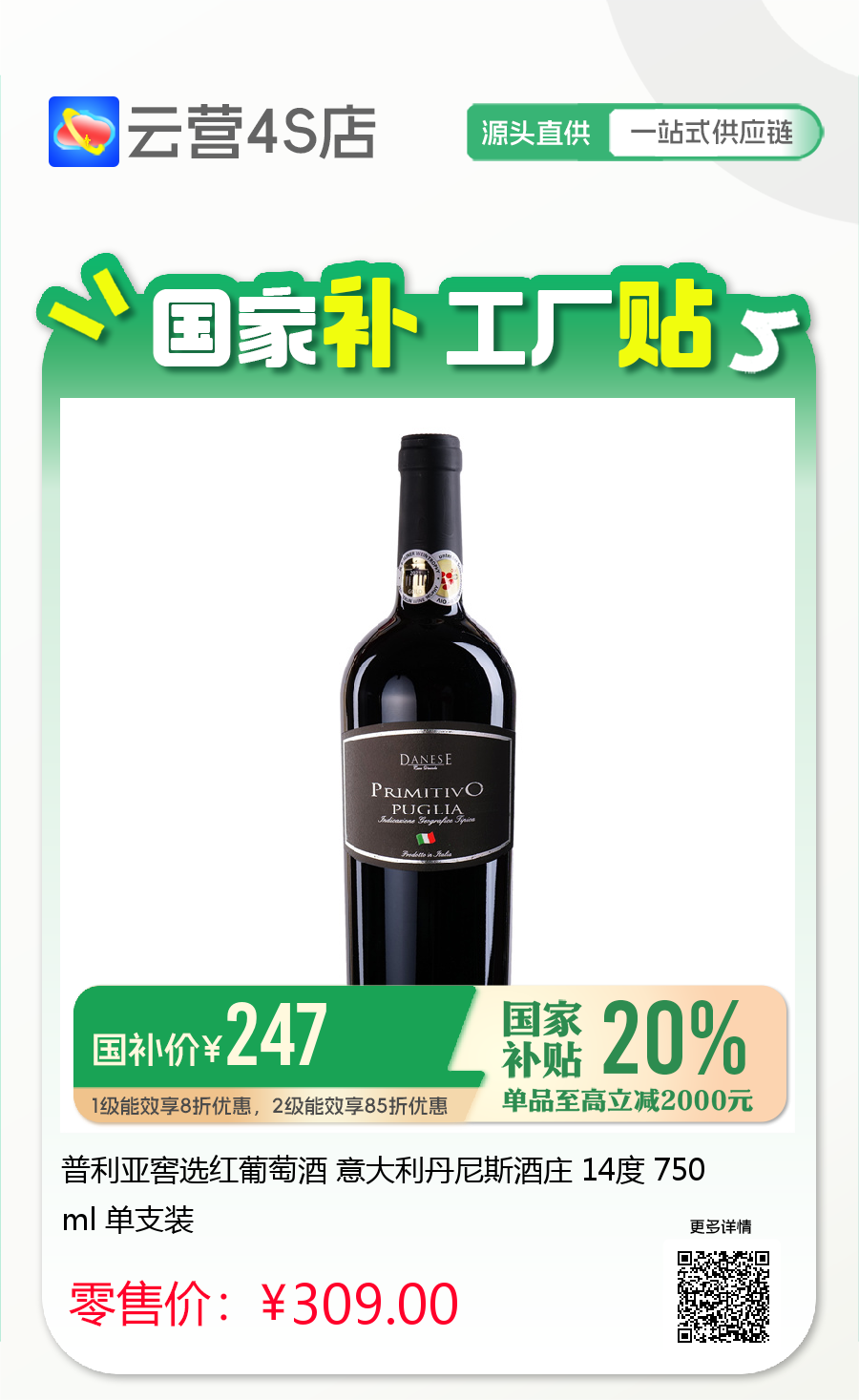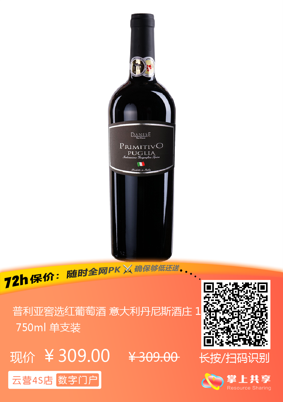 普利亚窖选红葡萄酒 意大利丹尼斯酒庄 14度 750ml 单支装