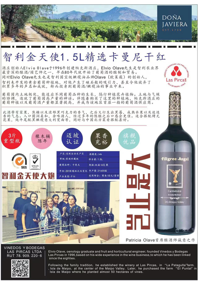 智利金天使1.5L精选卡曼尼干红 智利帕克斯酒庄 14度 750ml 单支装