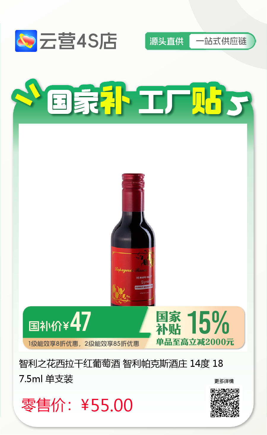 智利之花西拉干红葡萄酒 智利帕克斯酒庄 14度 187.5ml 单支装