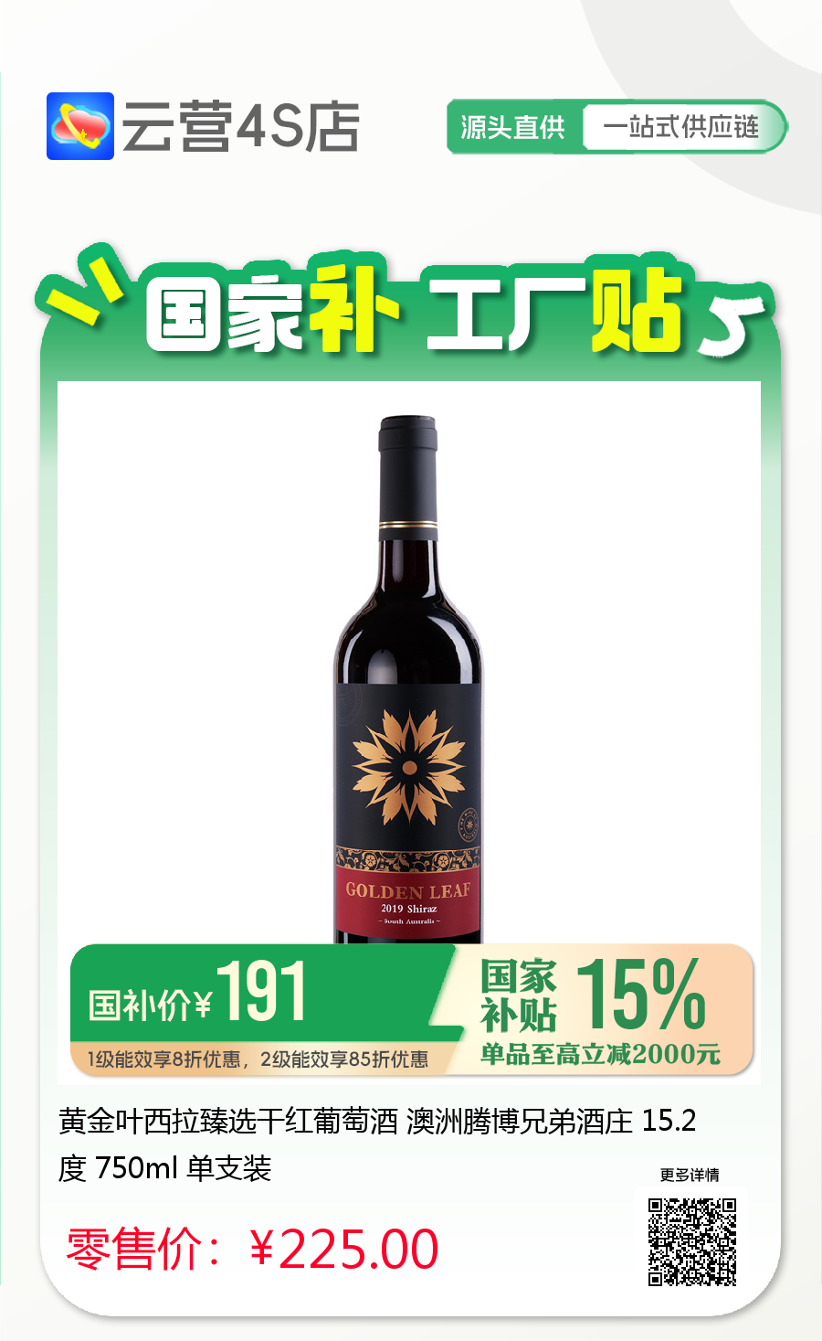黄金叶西拉臻选干红葡萄酒 澳洲腾博兄弟酒庄 15.2度 750ml 单支装