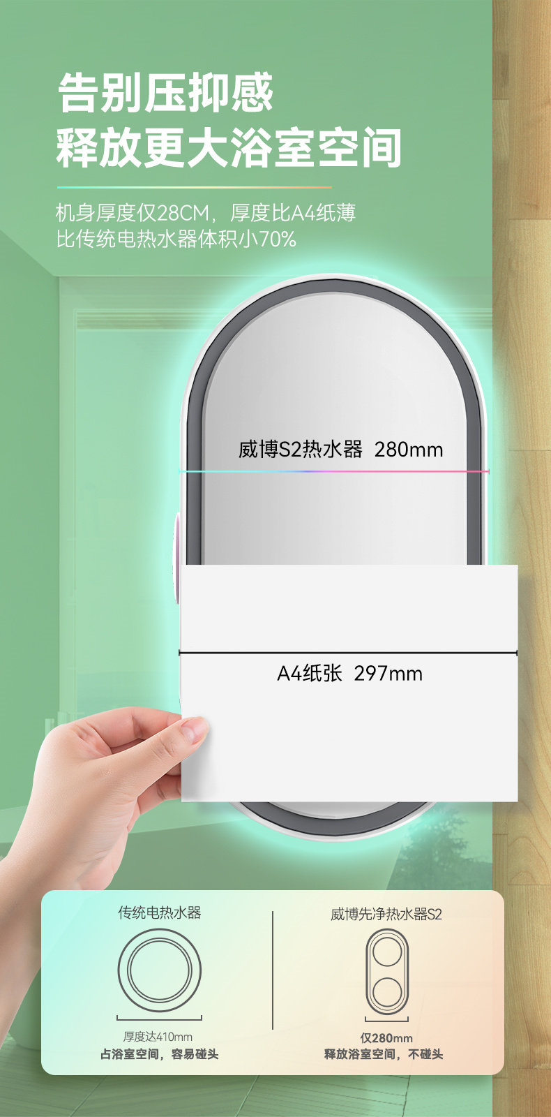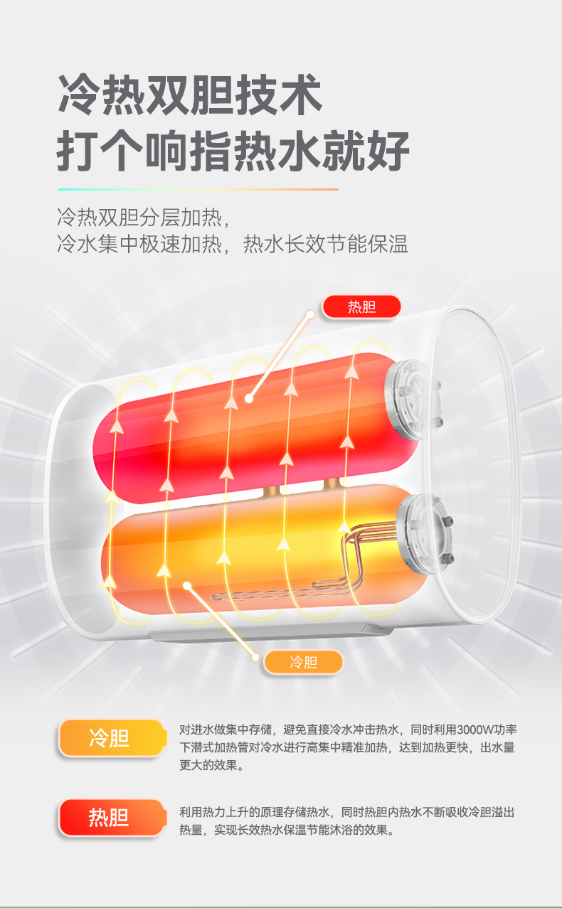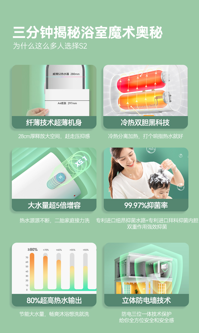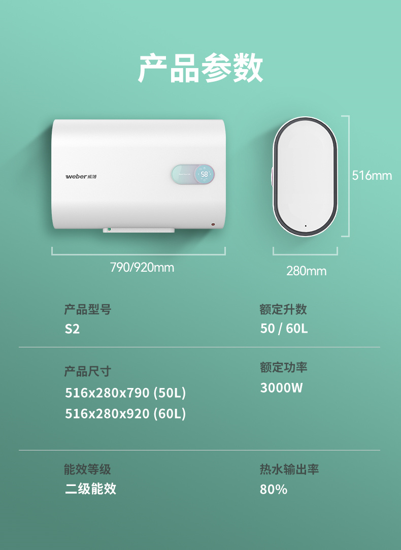 S2双胆超薄 50/60L 3000W 储水式电热水器 电脑数显 威博