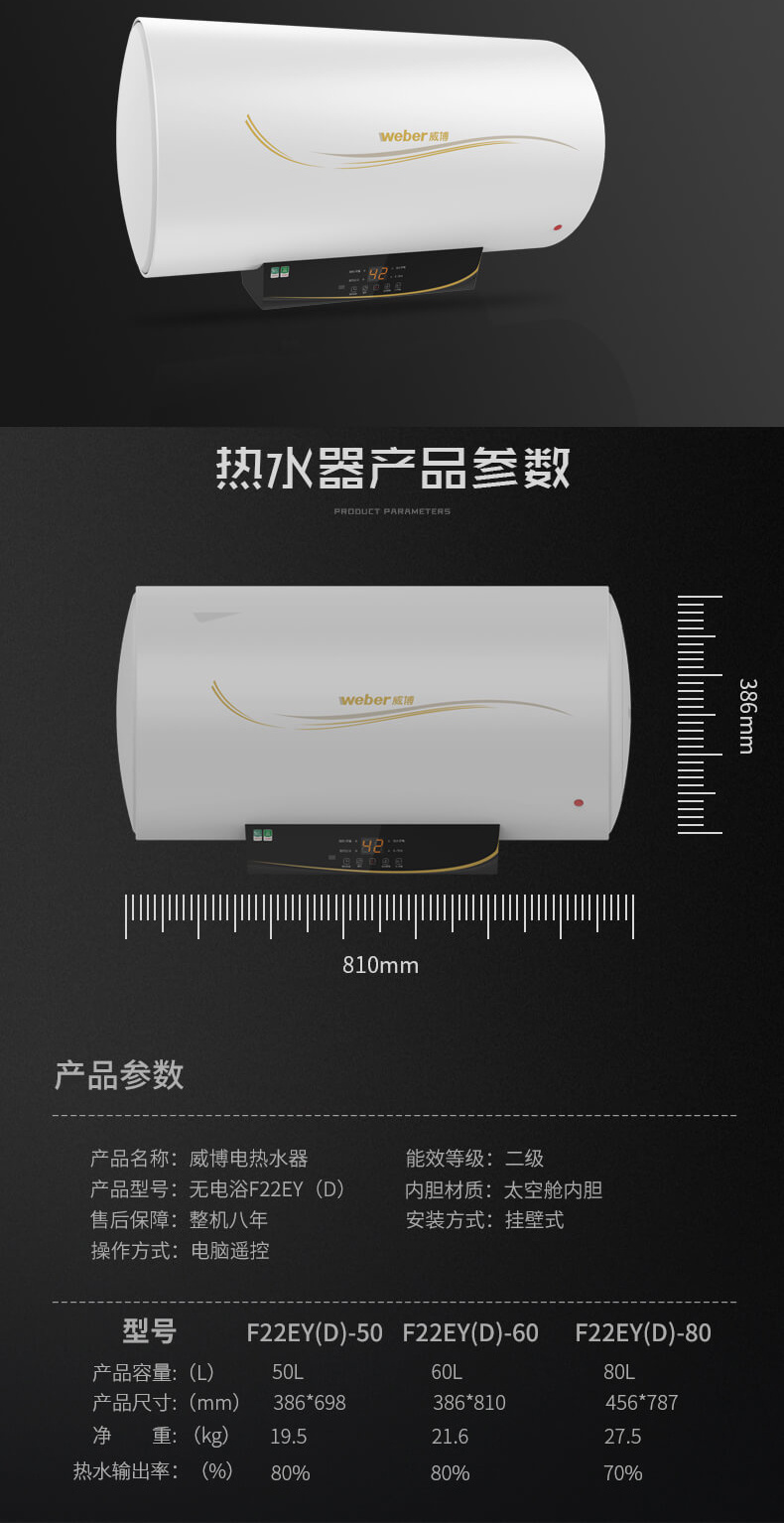 F22EY(D) 50/60/80L 2200W 储水式电热水器 电脑数显 威博