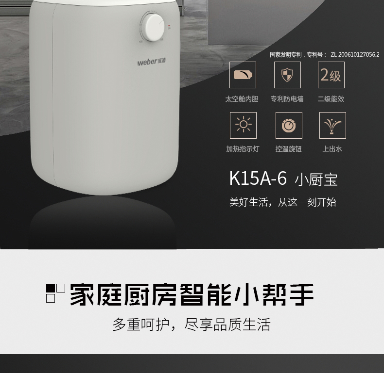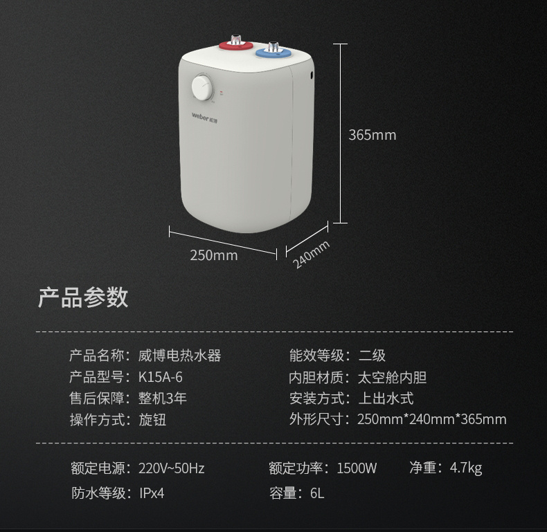 K15A-6小厨宝 6L 1500W 储水式电热水器 机械操控 威博