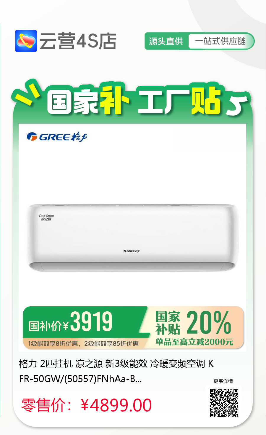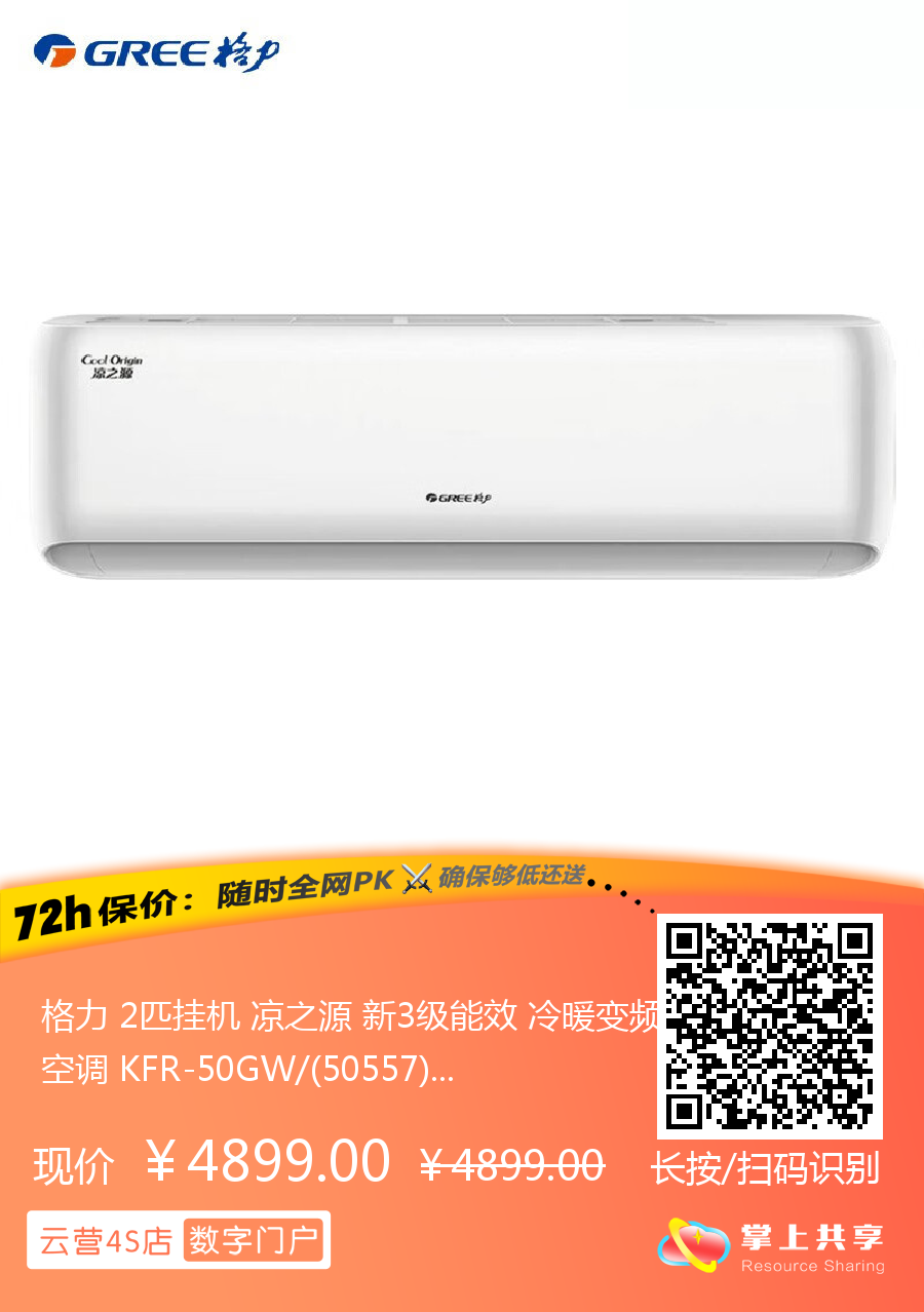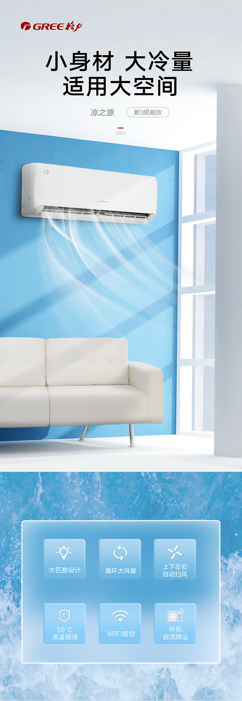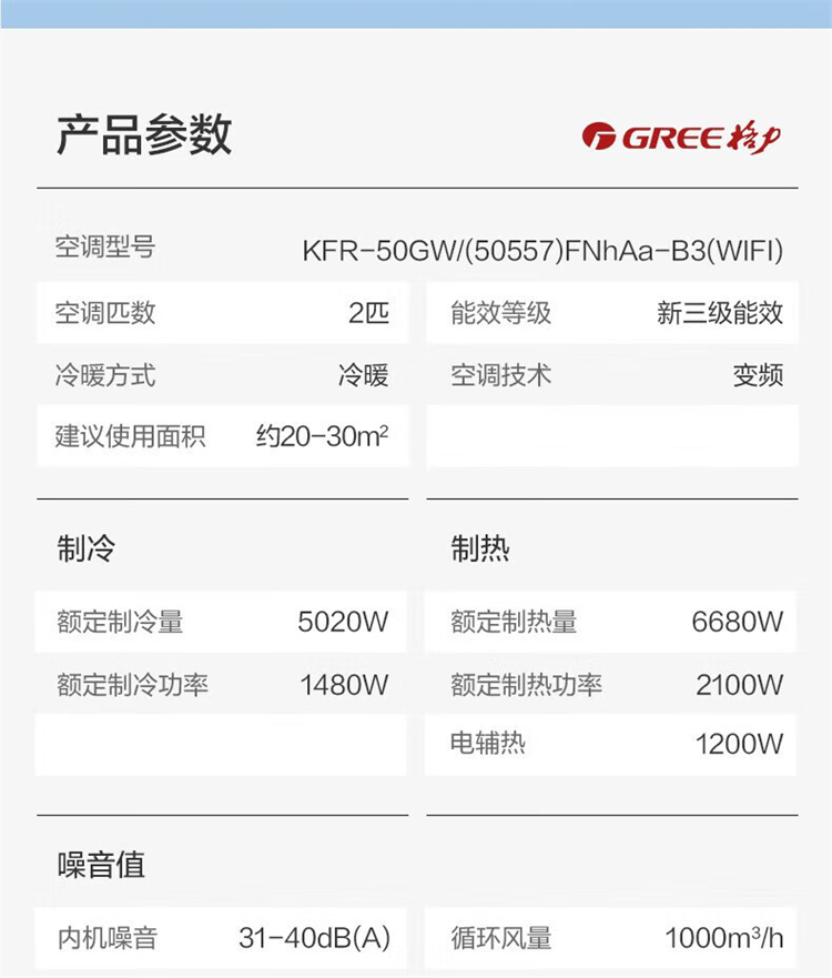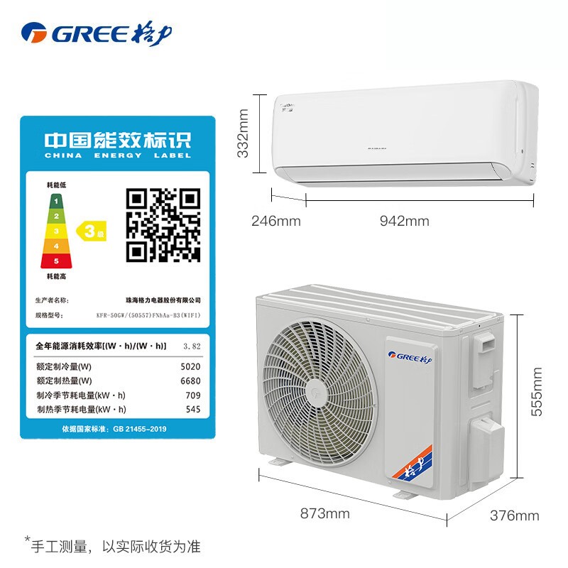 格力 2匹挂机 凉之源 新3级能效 冷暖变频空调 KFR-50GW/(50557)FNhAa-B3(WIFI)