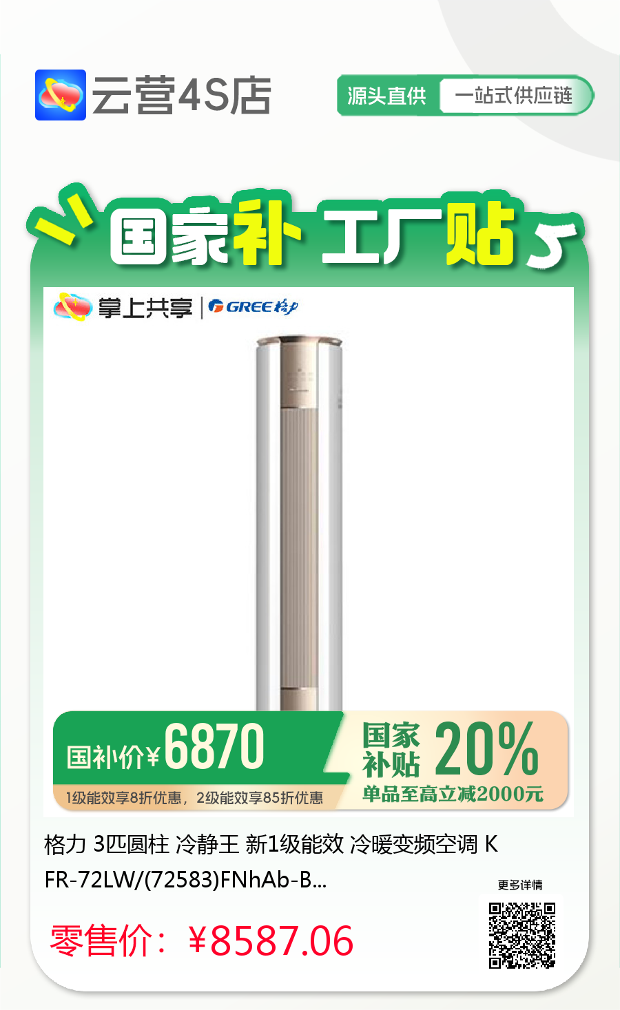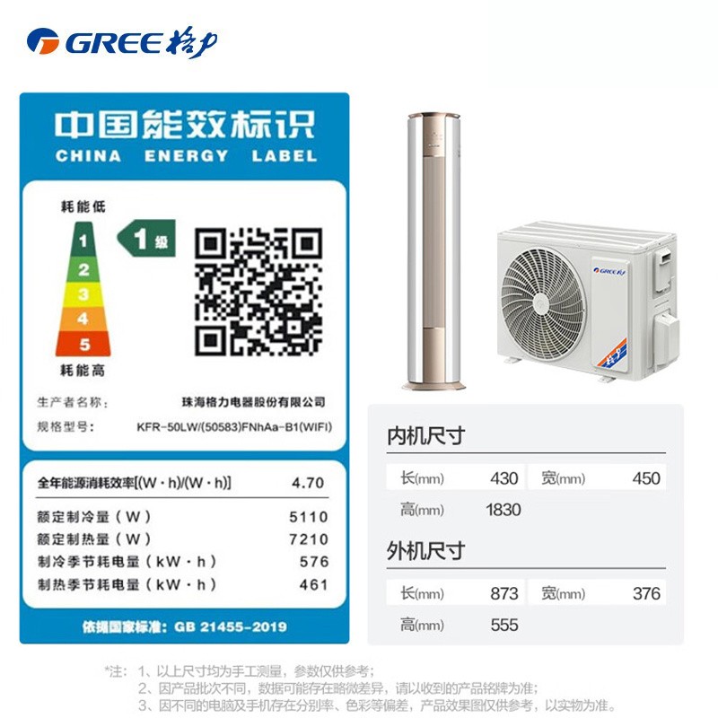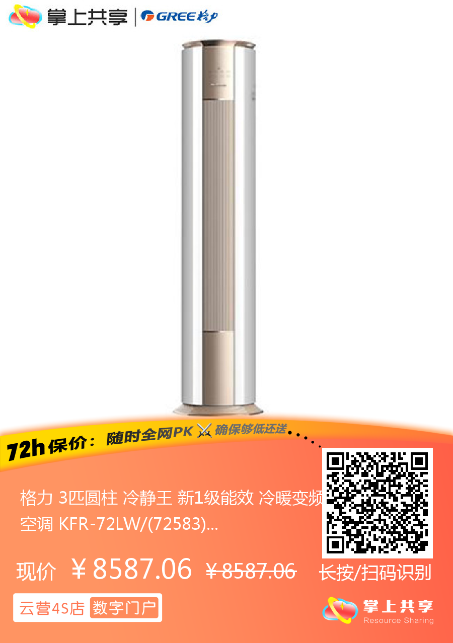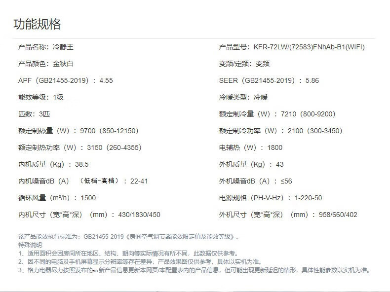 格力 3匹圆柱 冷静王 新1级能效 冷暖变频空调 KFR-72LW/(72583)FNhAb-B1(WIFI)(金秋白)