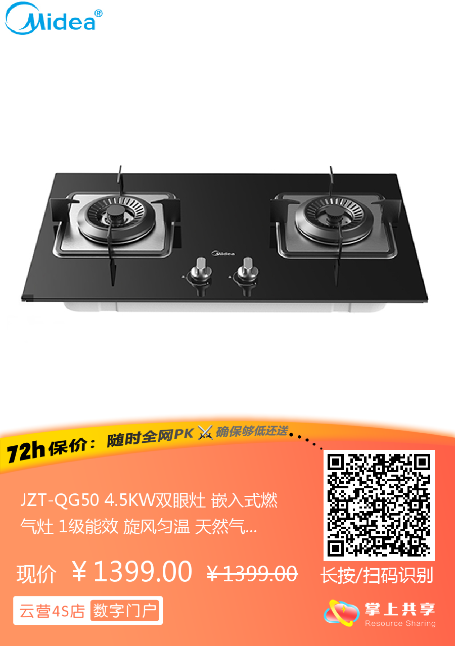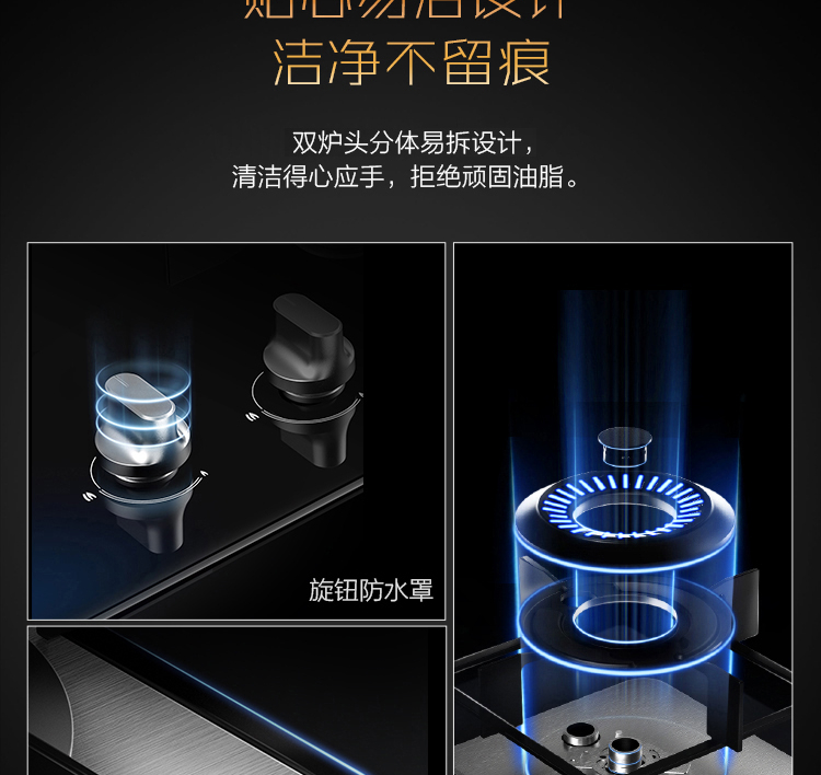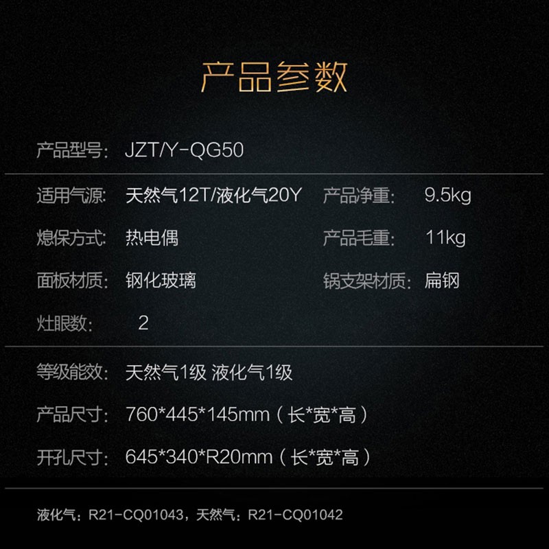 JZT-QG50 4.5KW双眼灶 嵌入式燃气灶 1级能效 旋风匀温 天然气