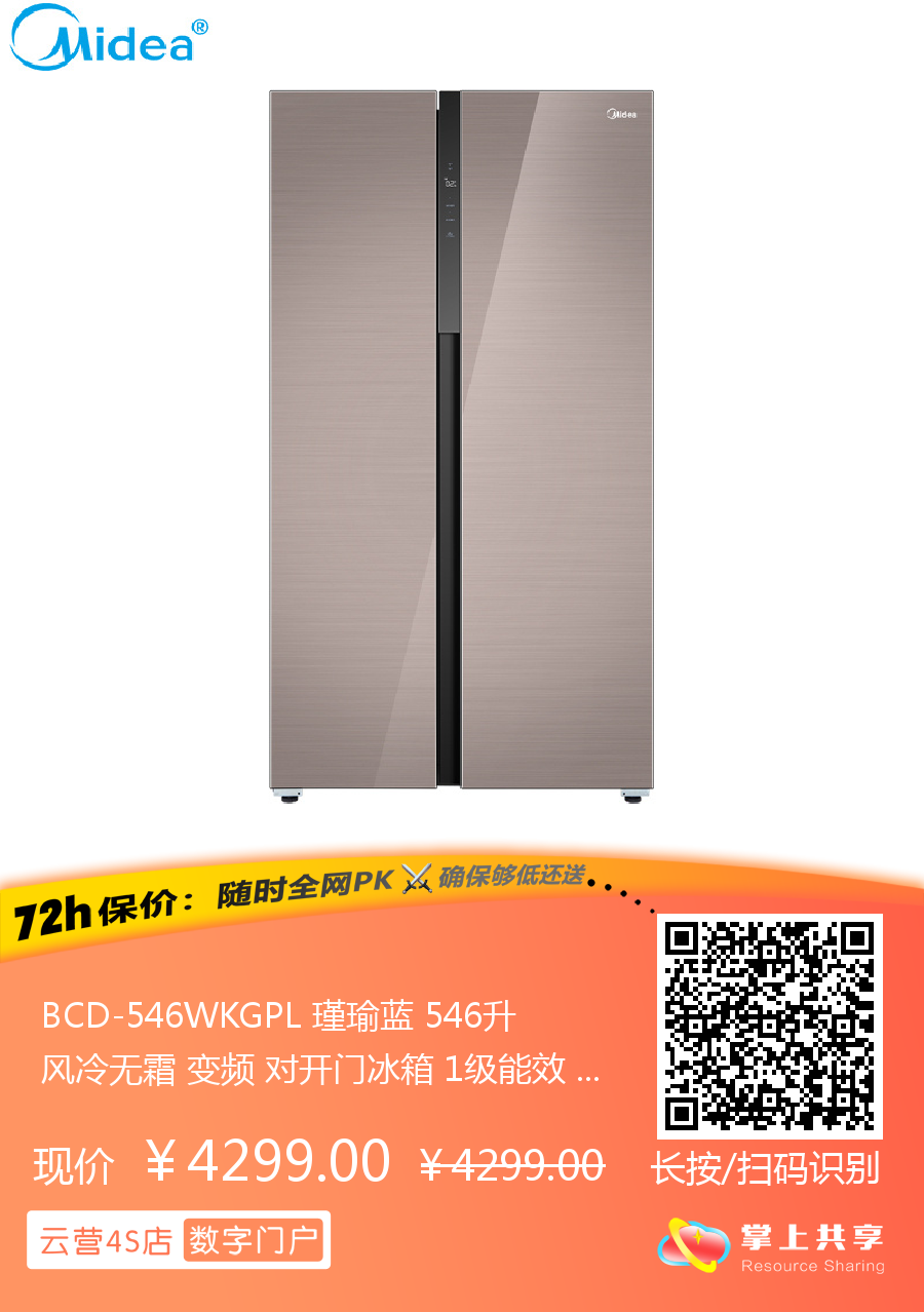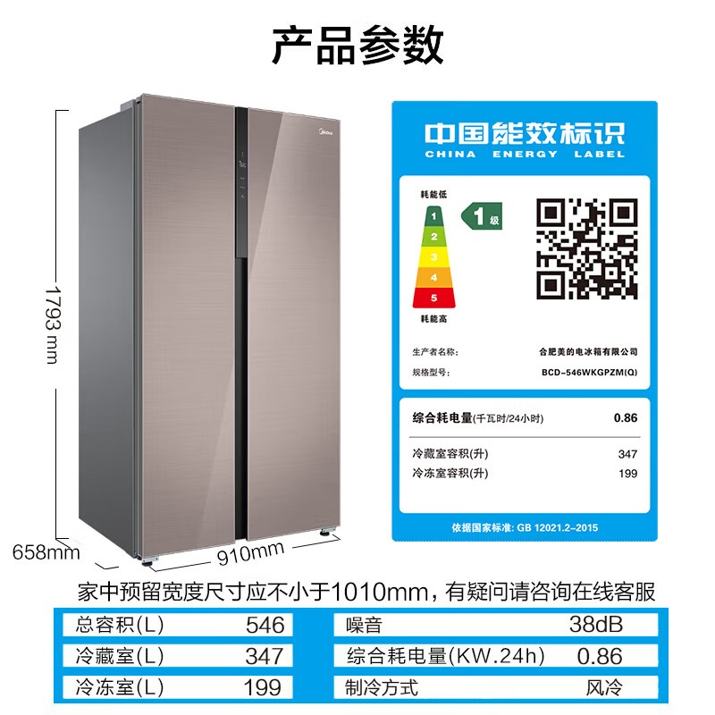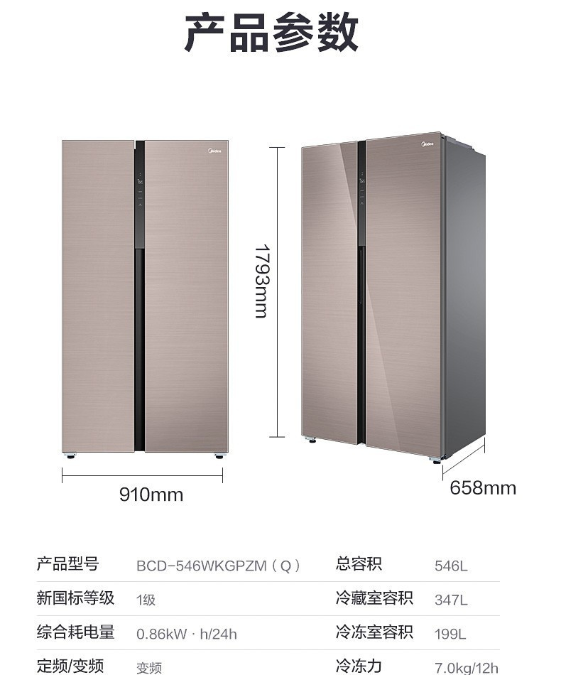 BCD-546WKGPL 瑾瑜蓝 546升 风冷无霜 变频 对开门冰箱 1级能效 小天鹅(LitteSwan)