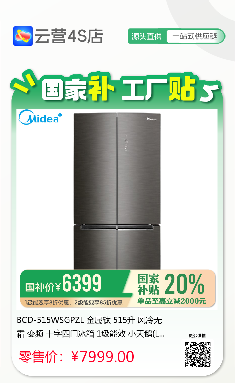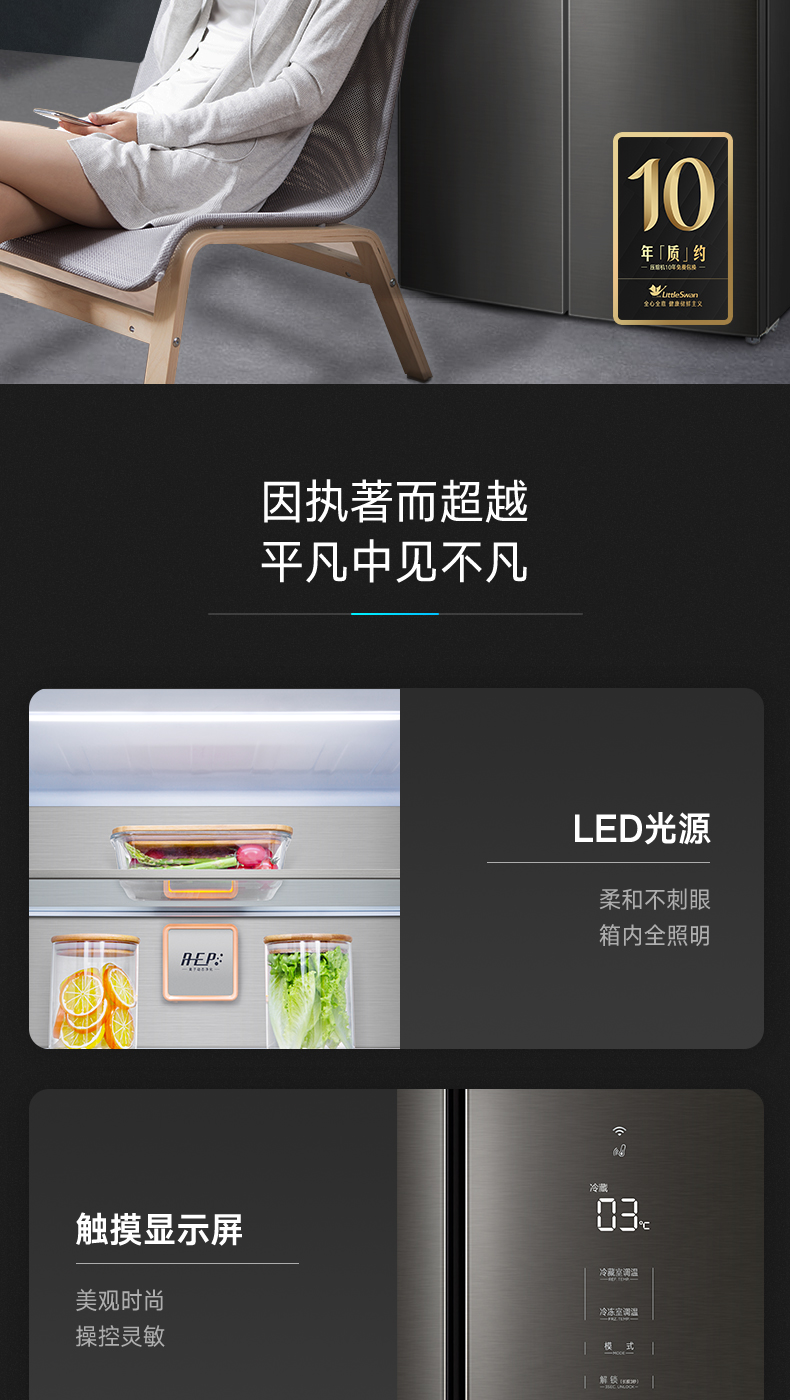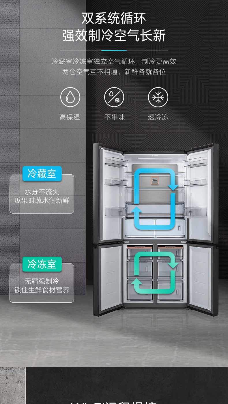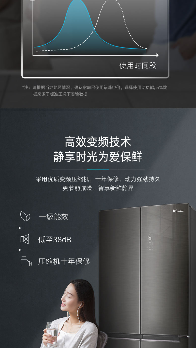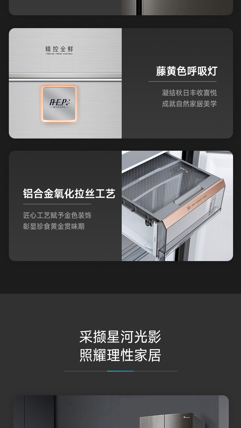 BCD-515WSGPZL 金属钛 515升 风冷无霜 变频 十字四门冰箱 1级能效 小天鹅(LitteSwan)