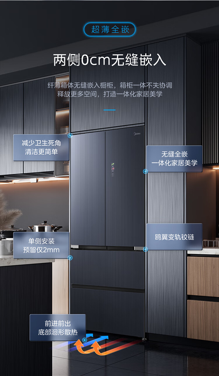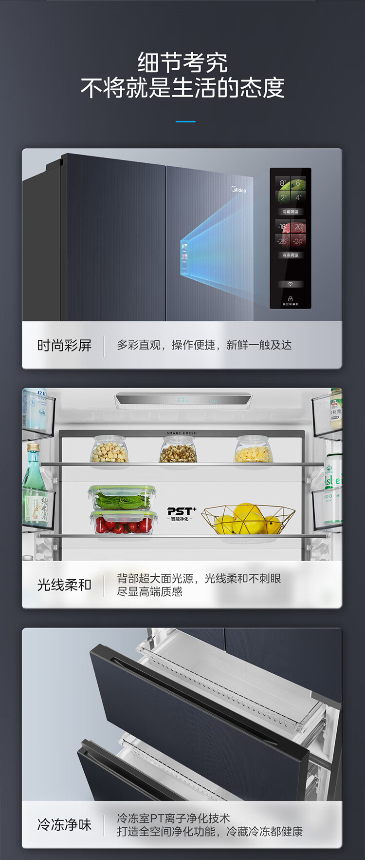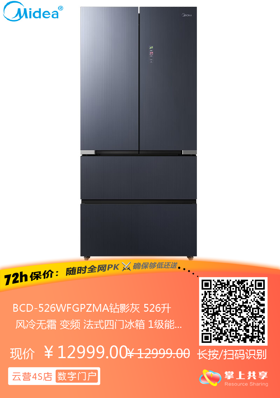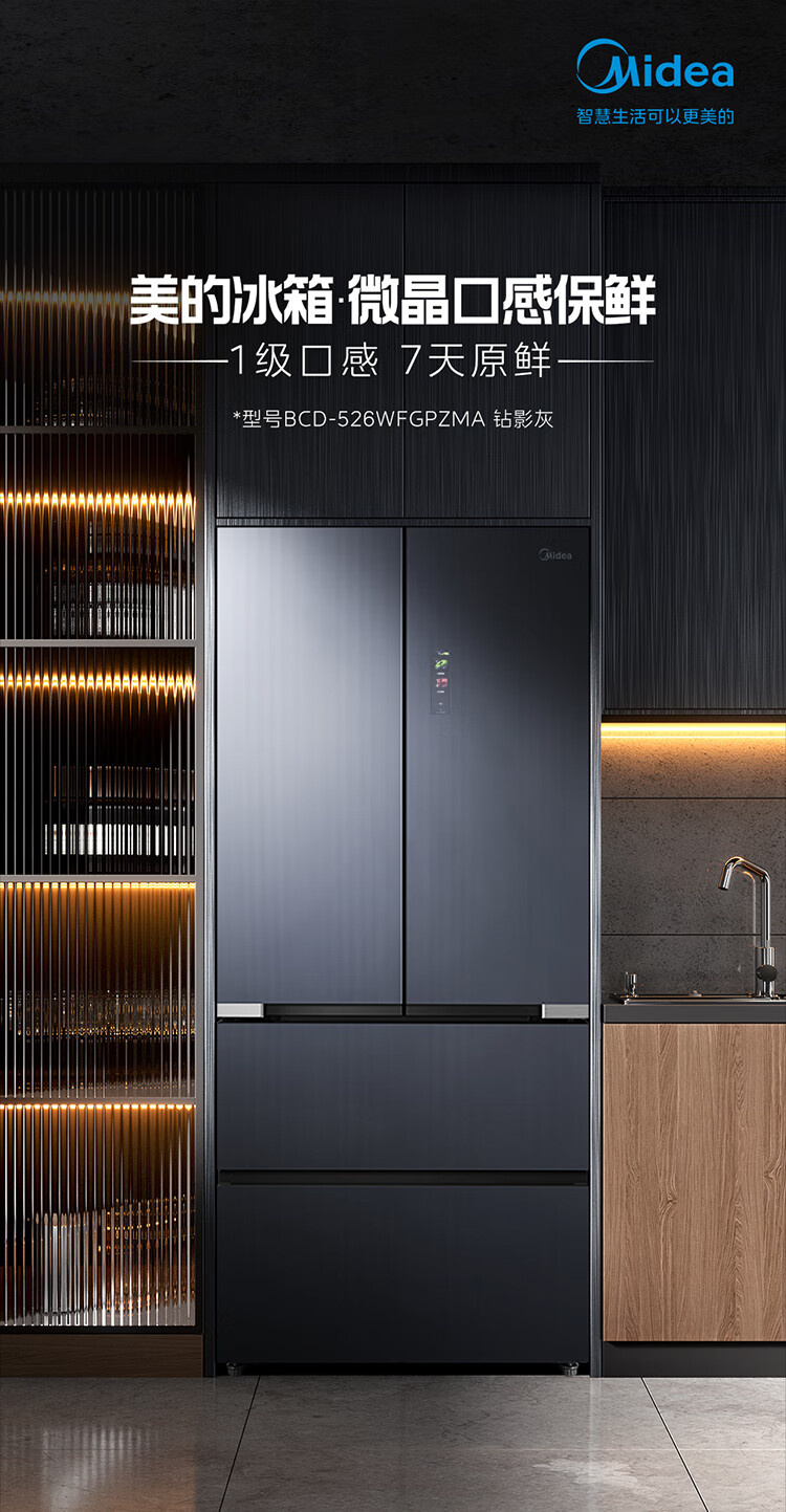 BCD-526WFGPZMA钻影灰 526升 风冷无霜 变频 法式四门冰箱 1级能效 美的(Midea)