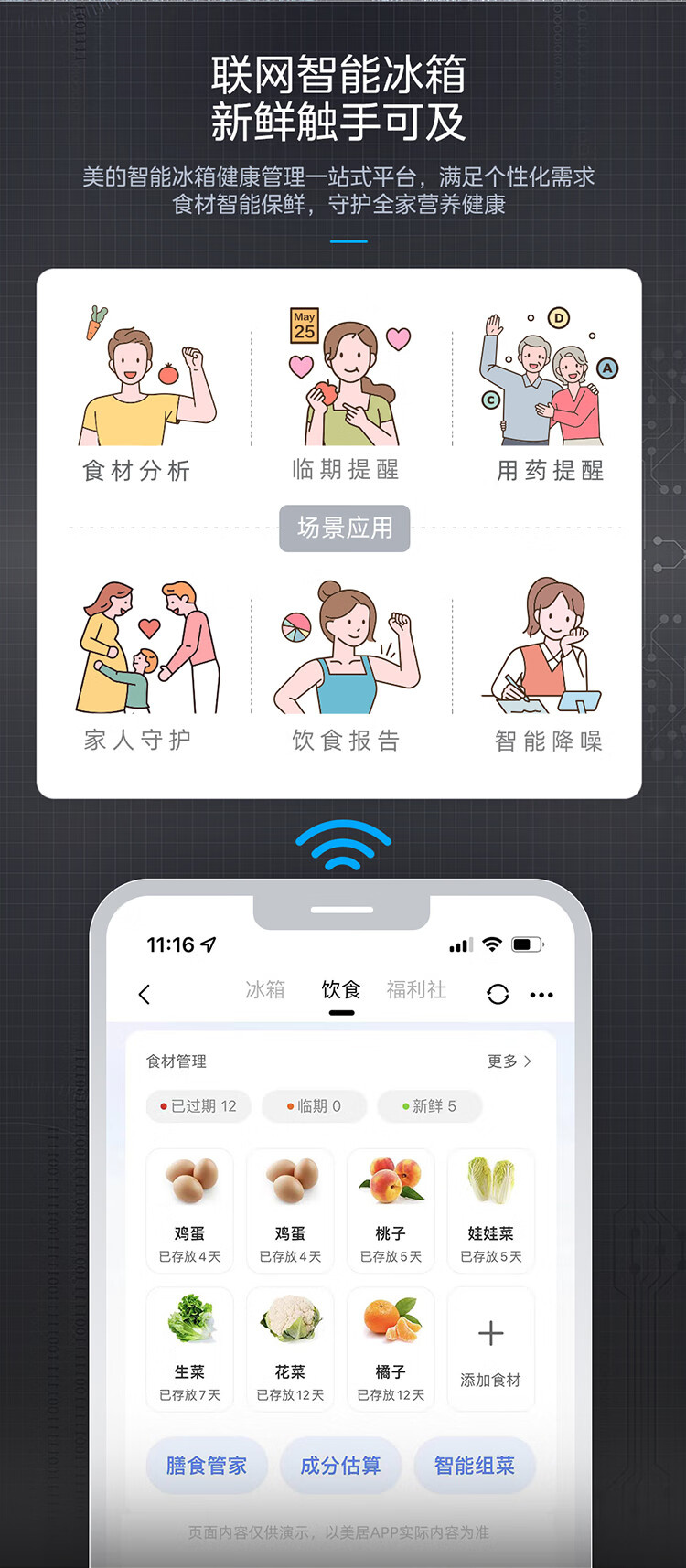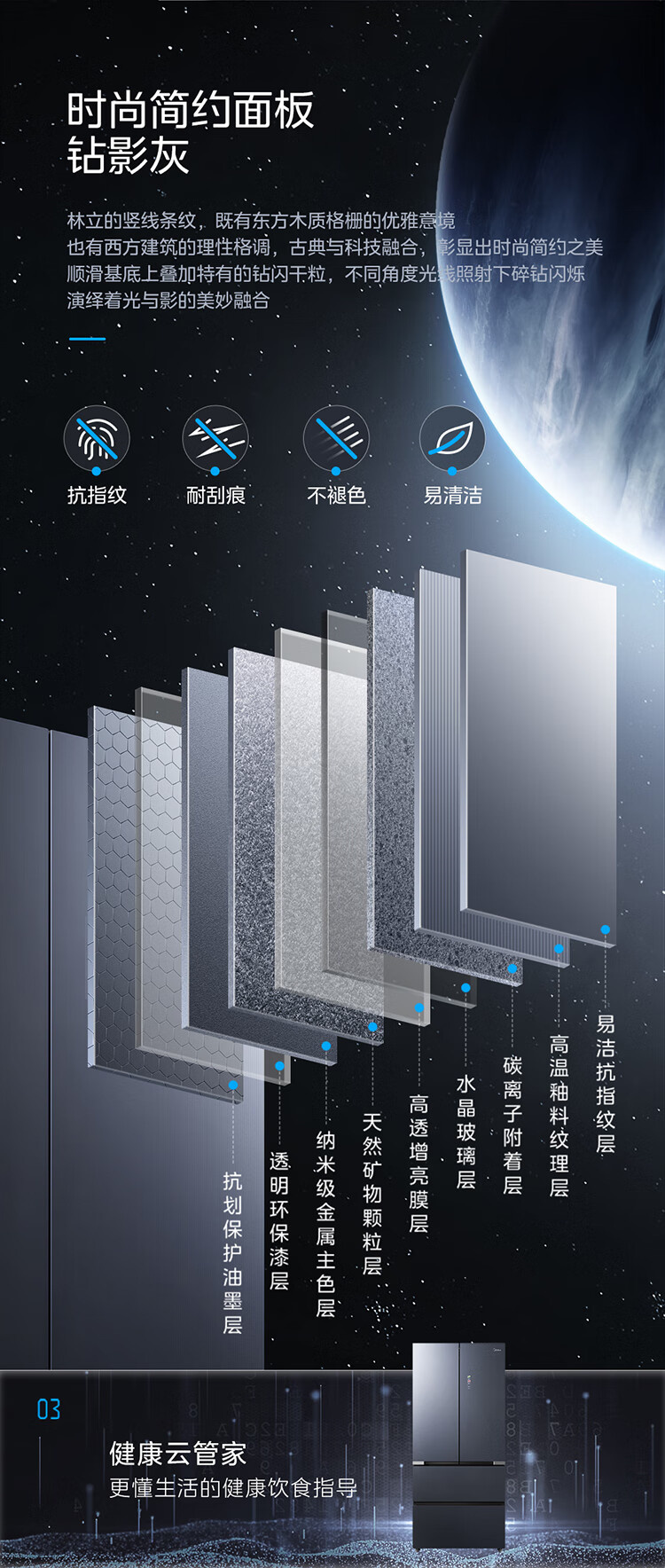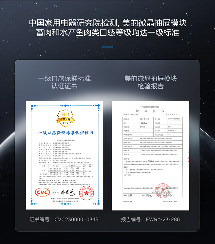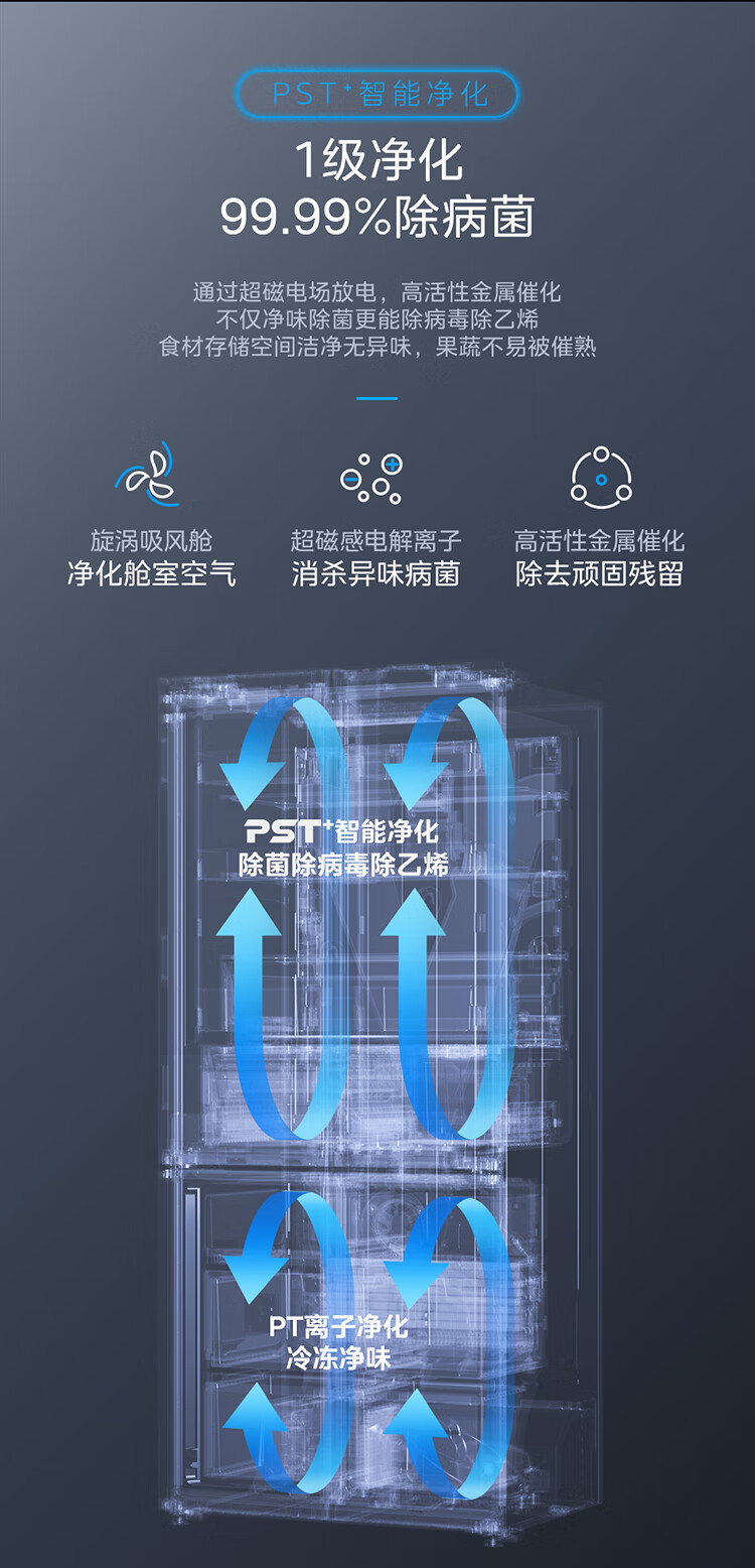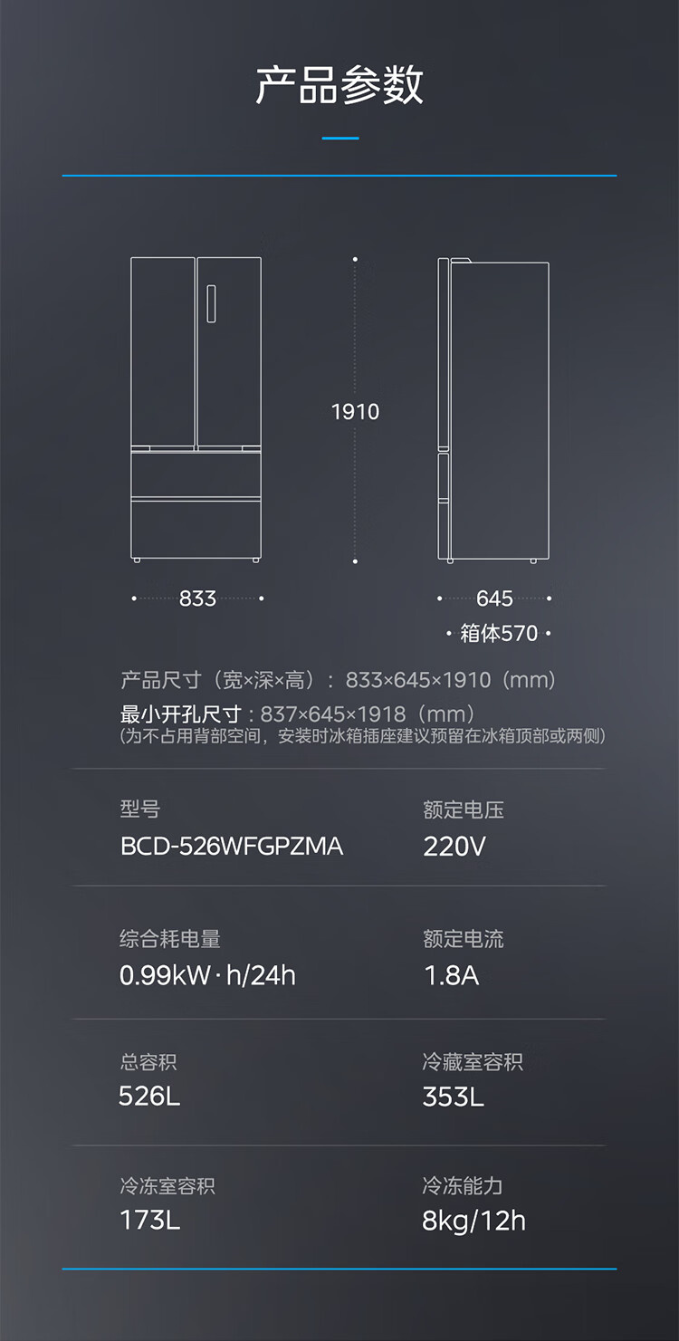 BCD-526WFGPZMA钻影灰 526升 风冷无霜 变频 法式四门冰箱 1级能效 美的(Midea)