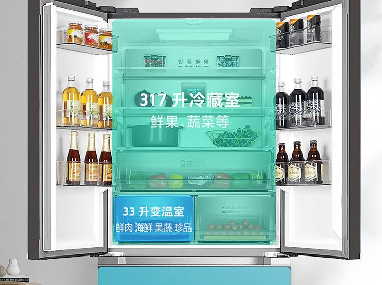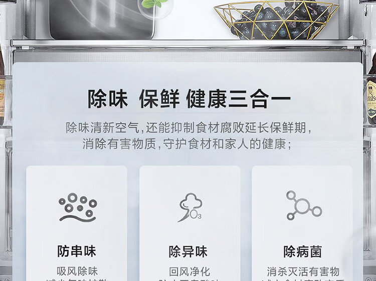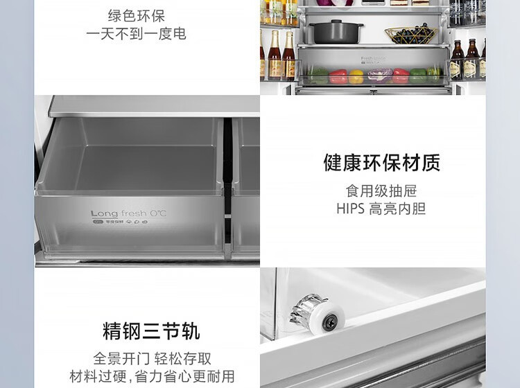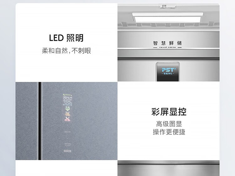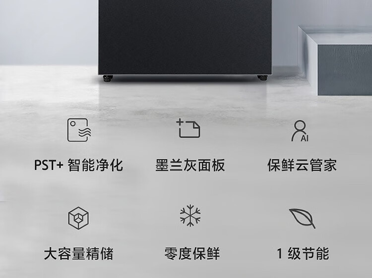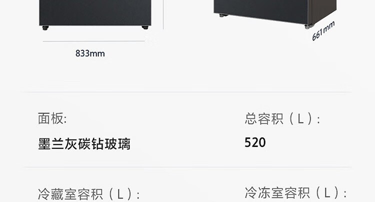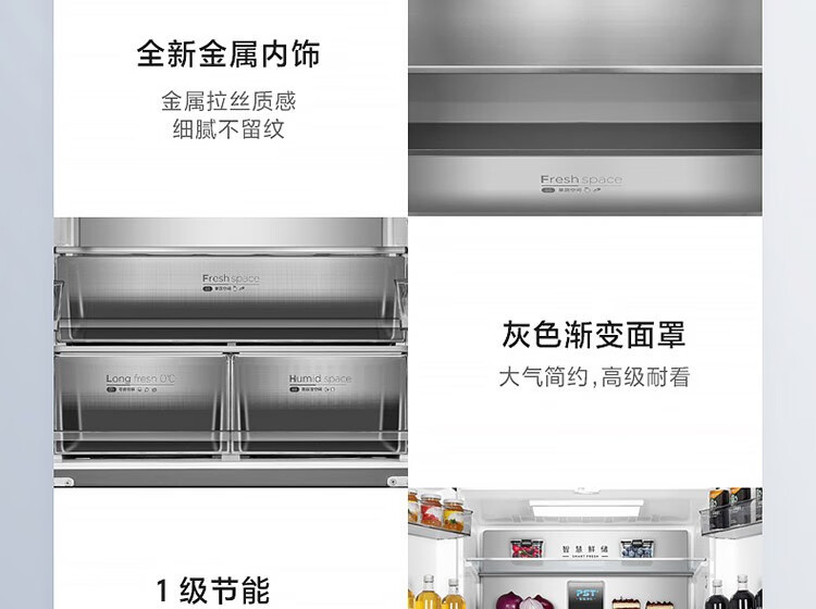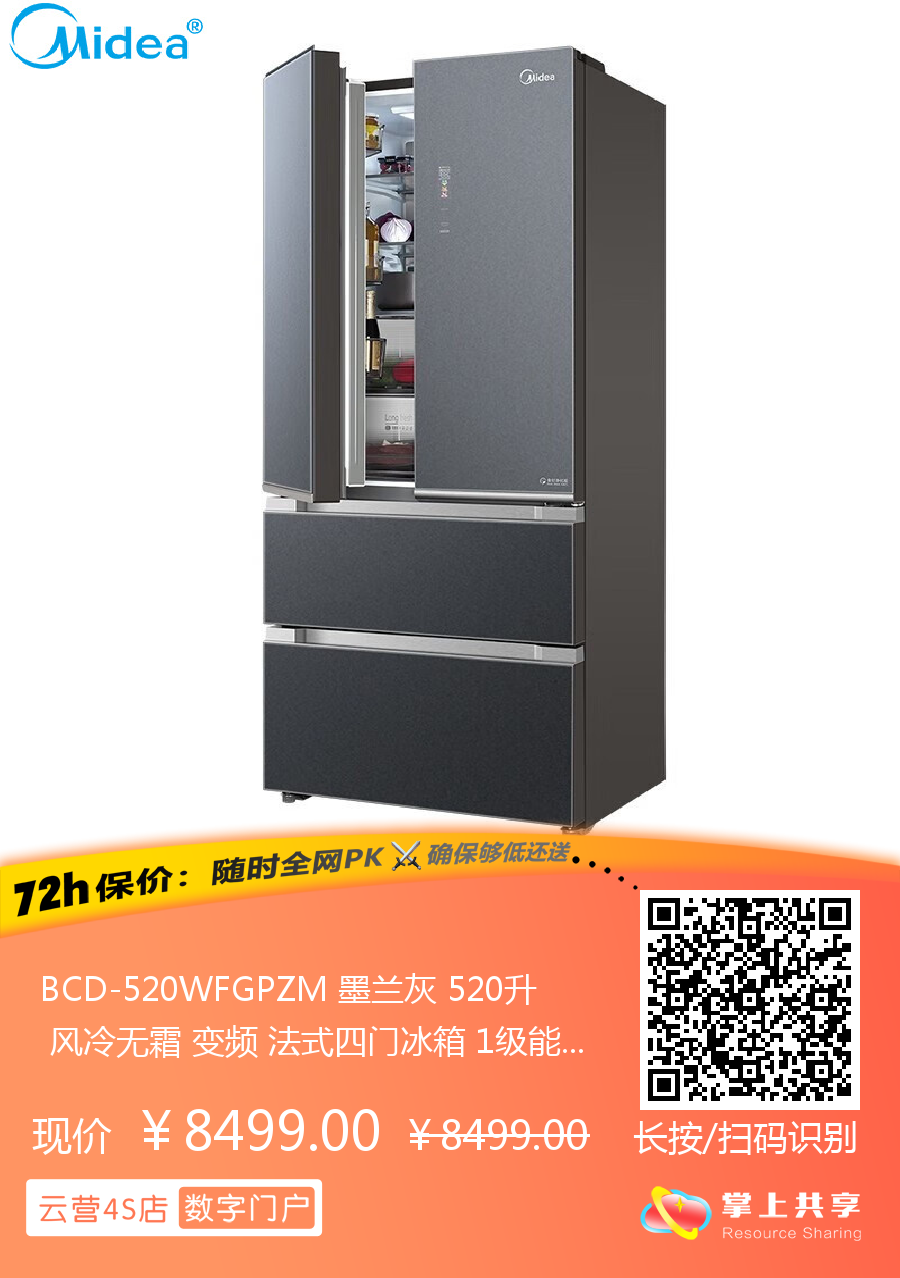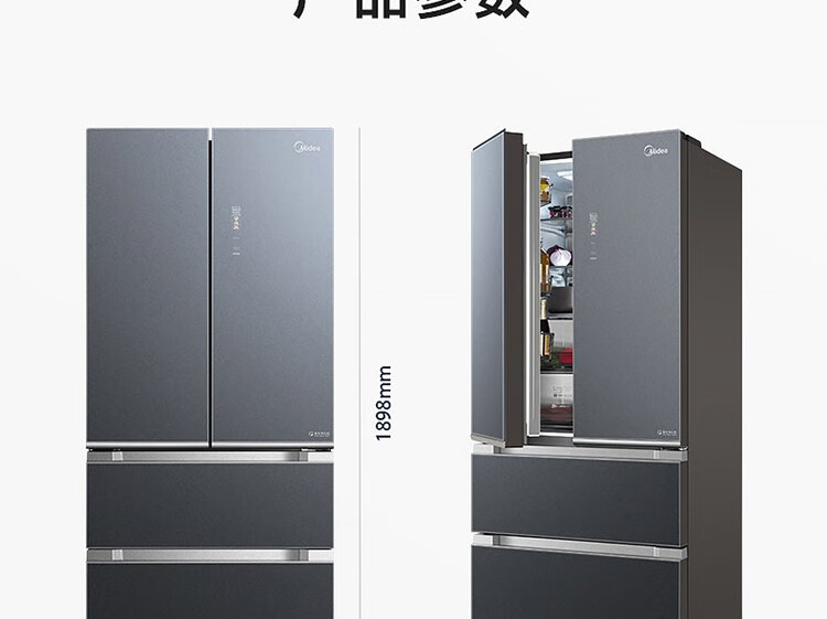 BCD-520WFGPZM 墨兰灰 520升 风冷无霜 变频 法式四门冰箱 1级能效 美的(Midea)