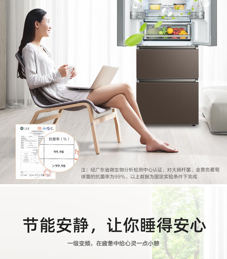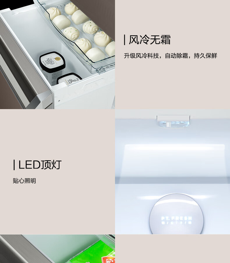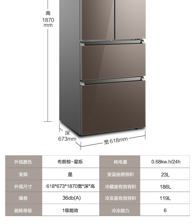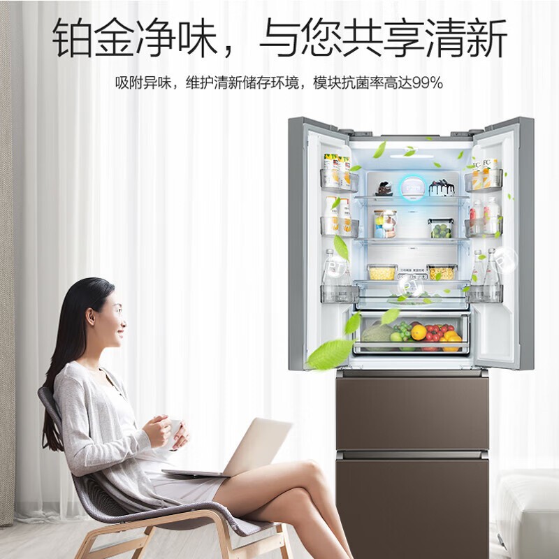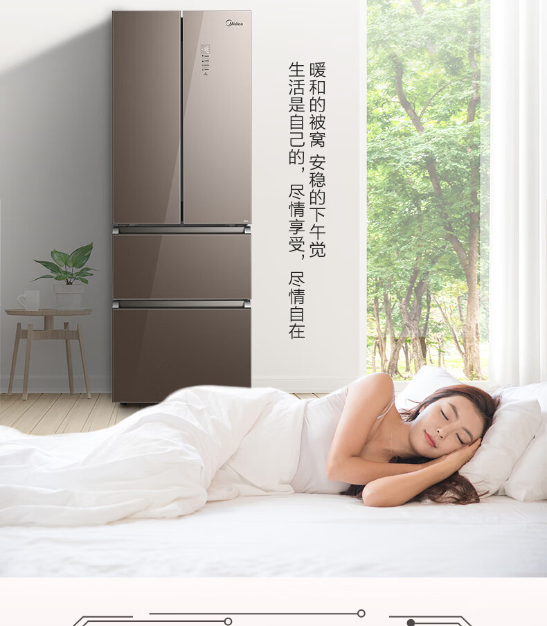 BCD-328WFGPM 布朗棕-星烁 328升 风冷无霜 变频 法式四门冰箱 1级能效 美的(Midea)
