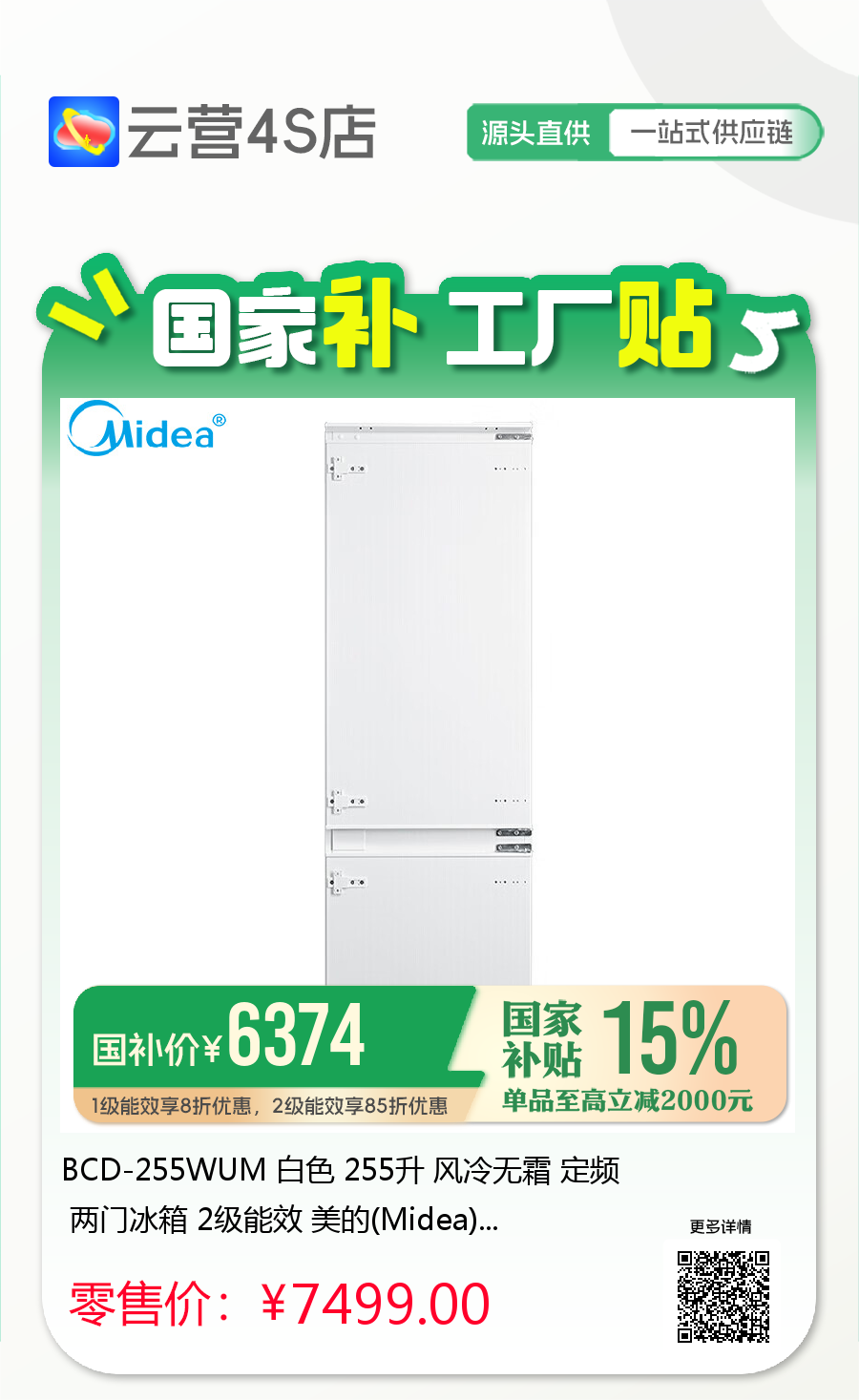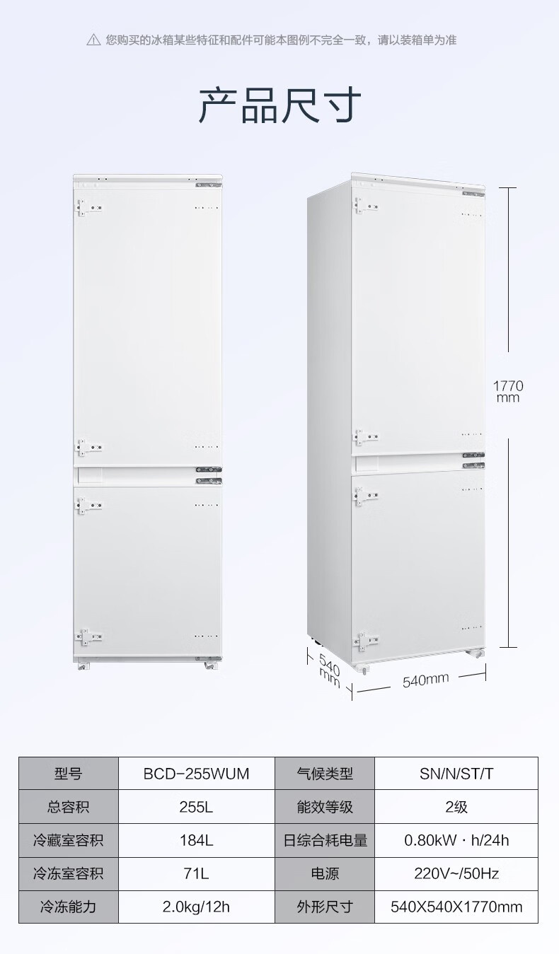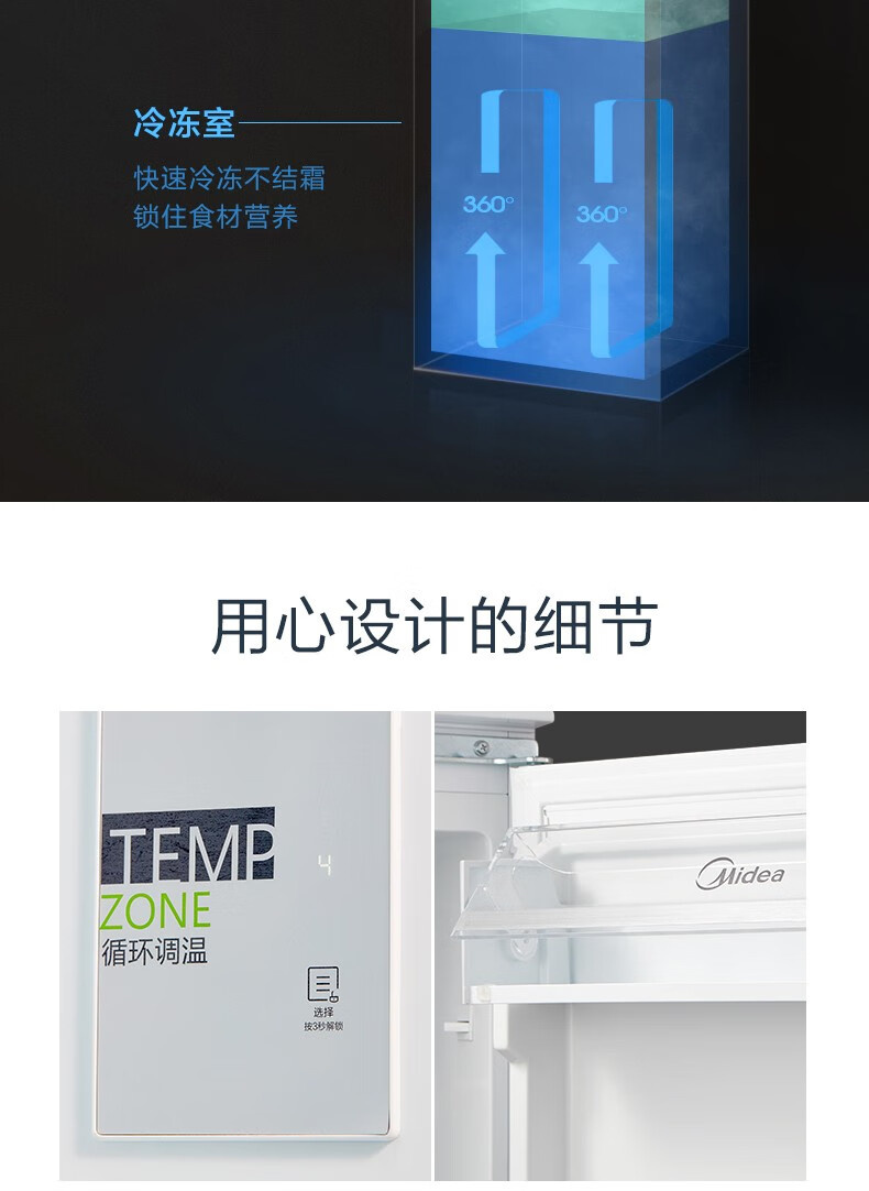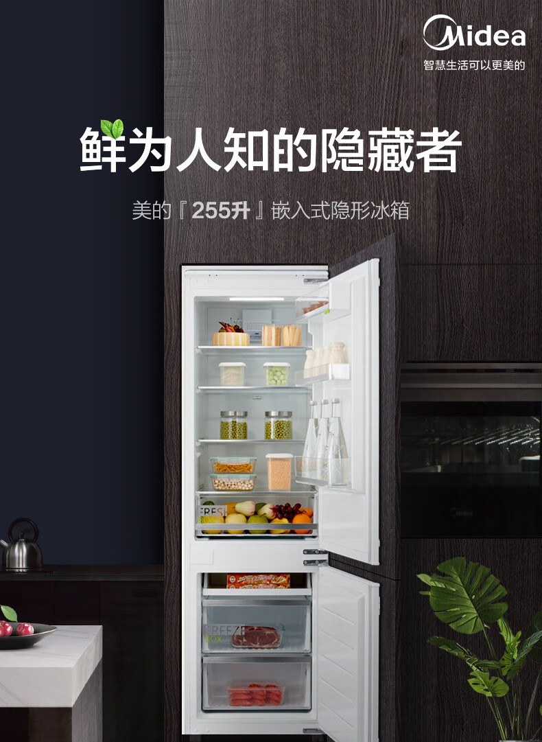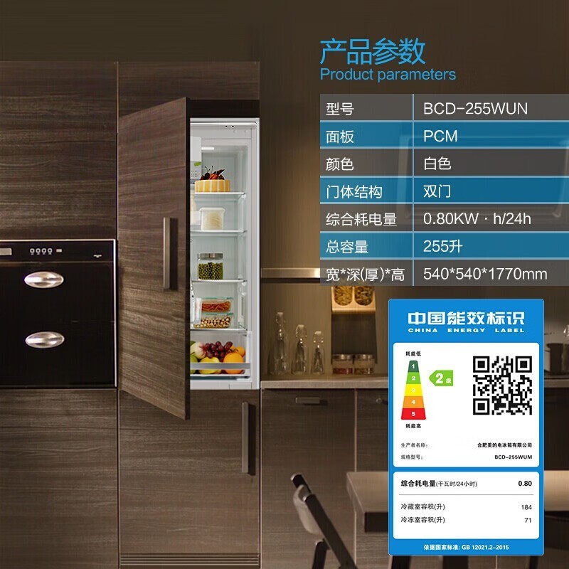 BCD-255WUM 白色 255升 风冷无霜 定频 两门冰箱 2级能效 美的(Midea)