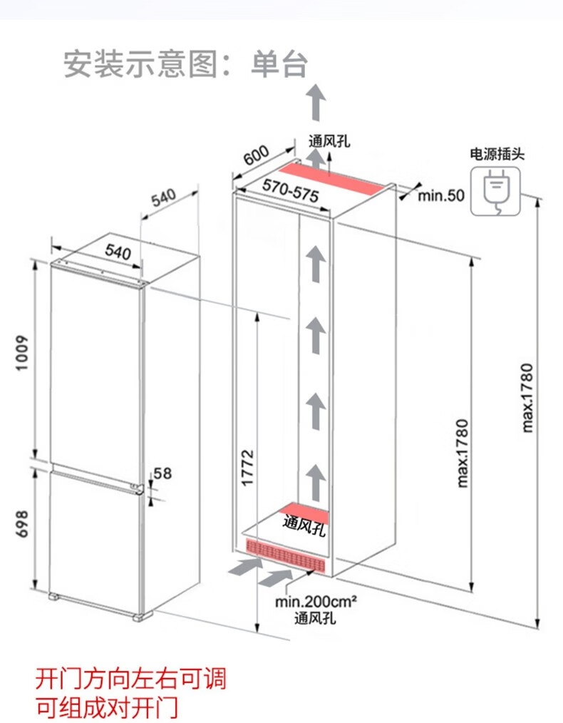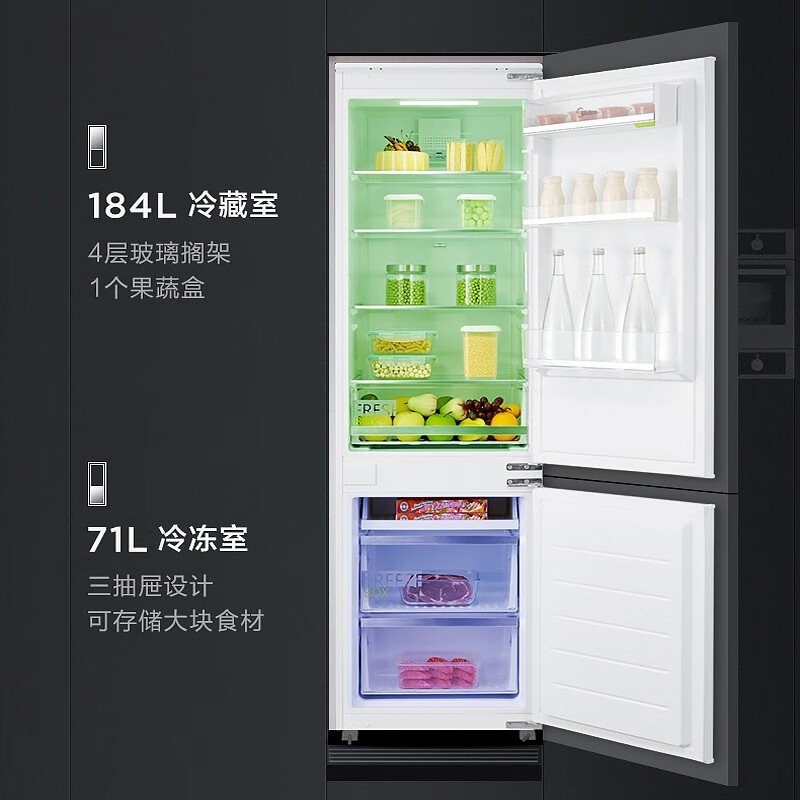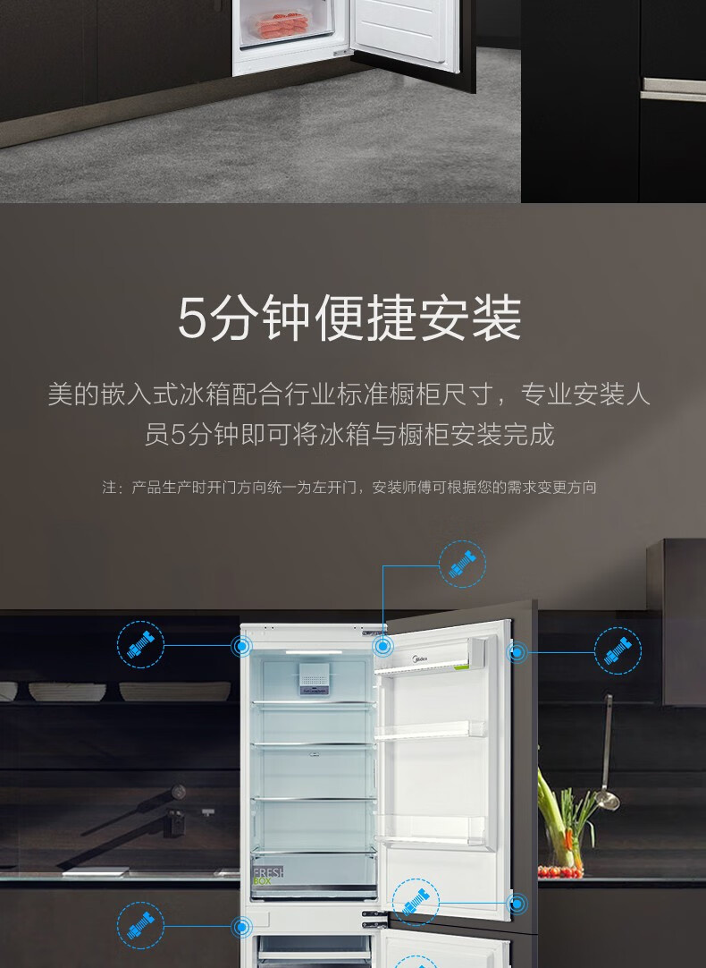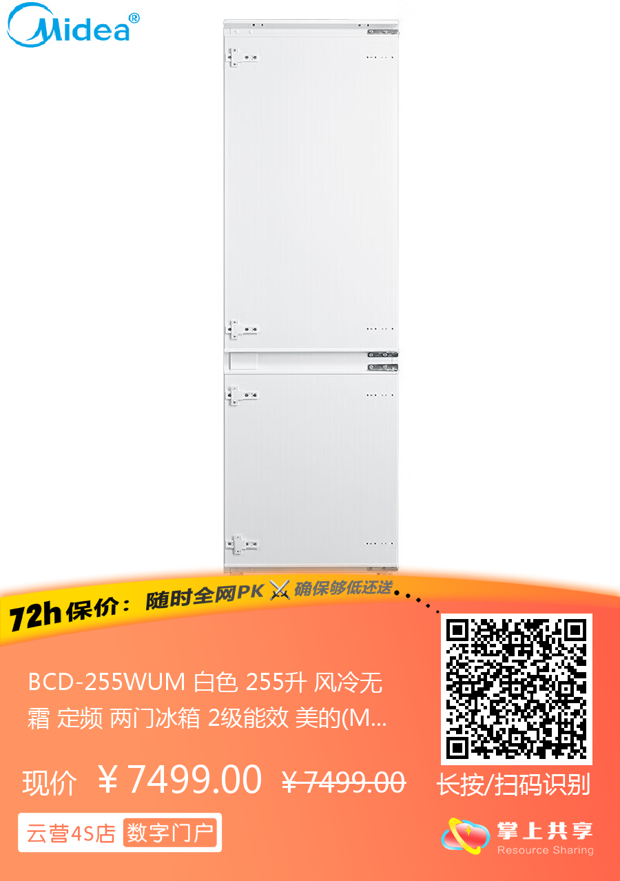 BCD-255WUM 白色 255升 风冷无霜 定频 两门冰箱 2级能效 美的(Midea)