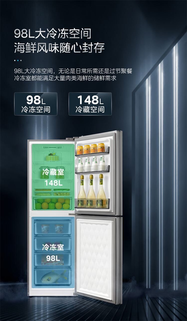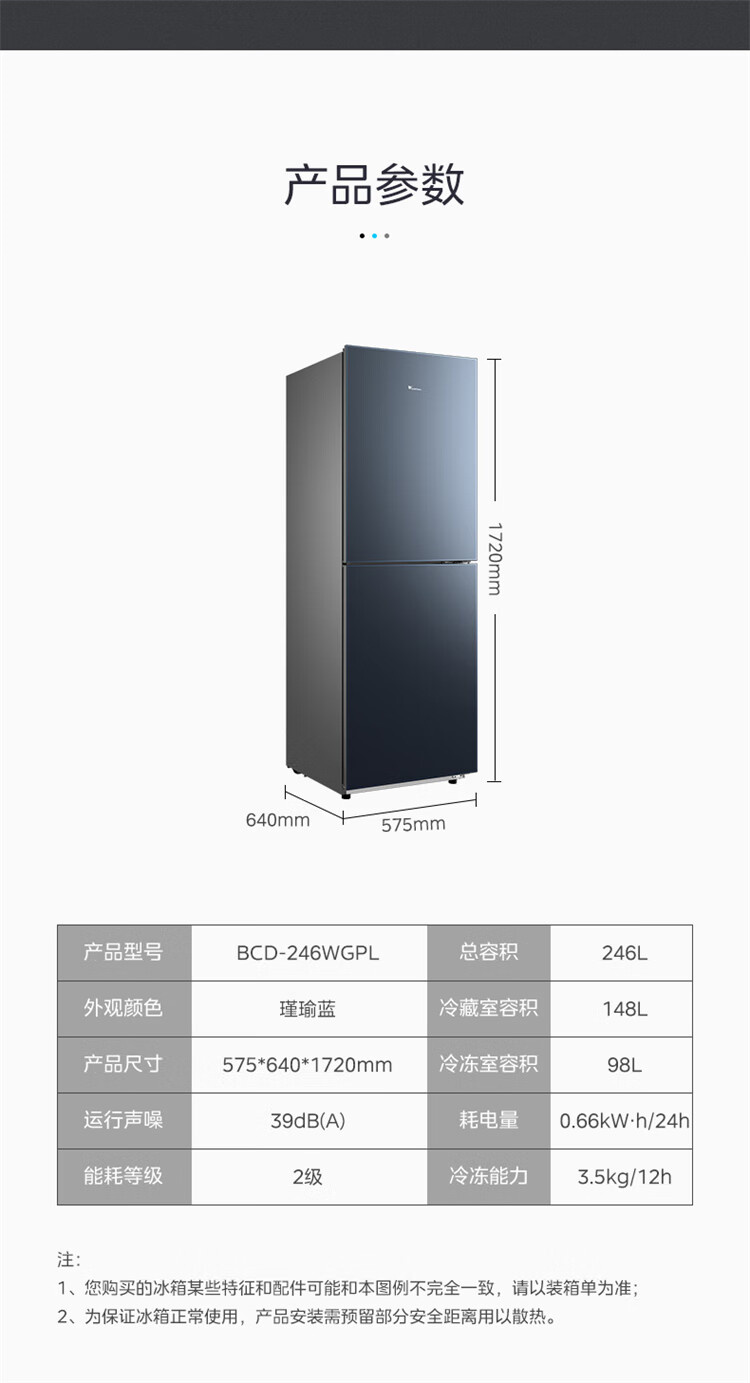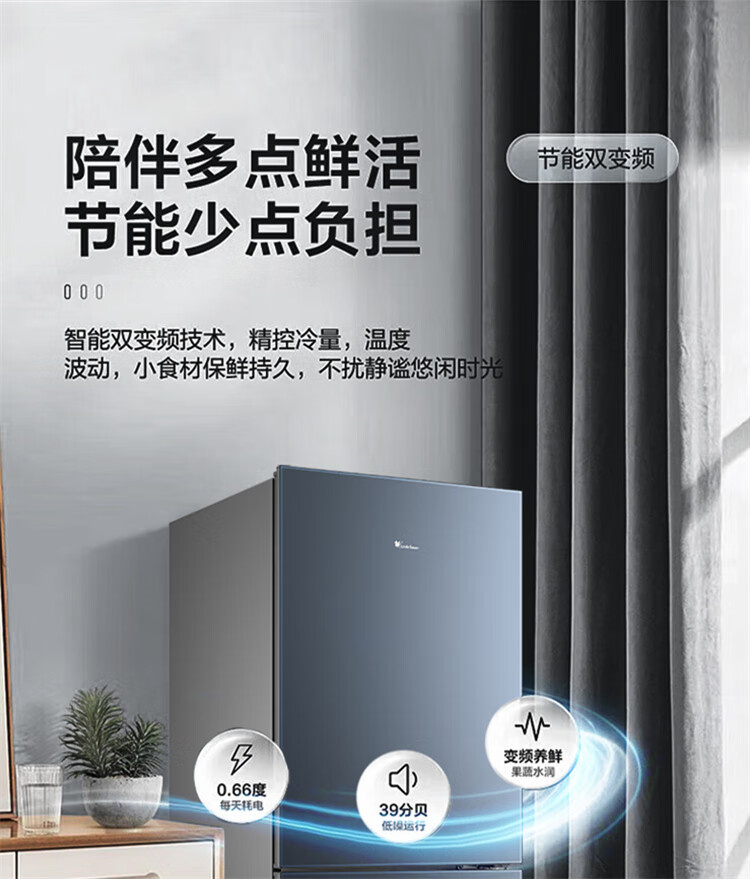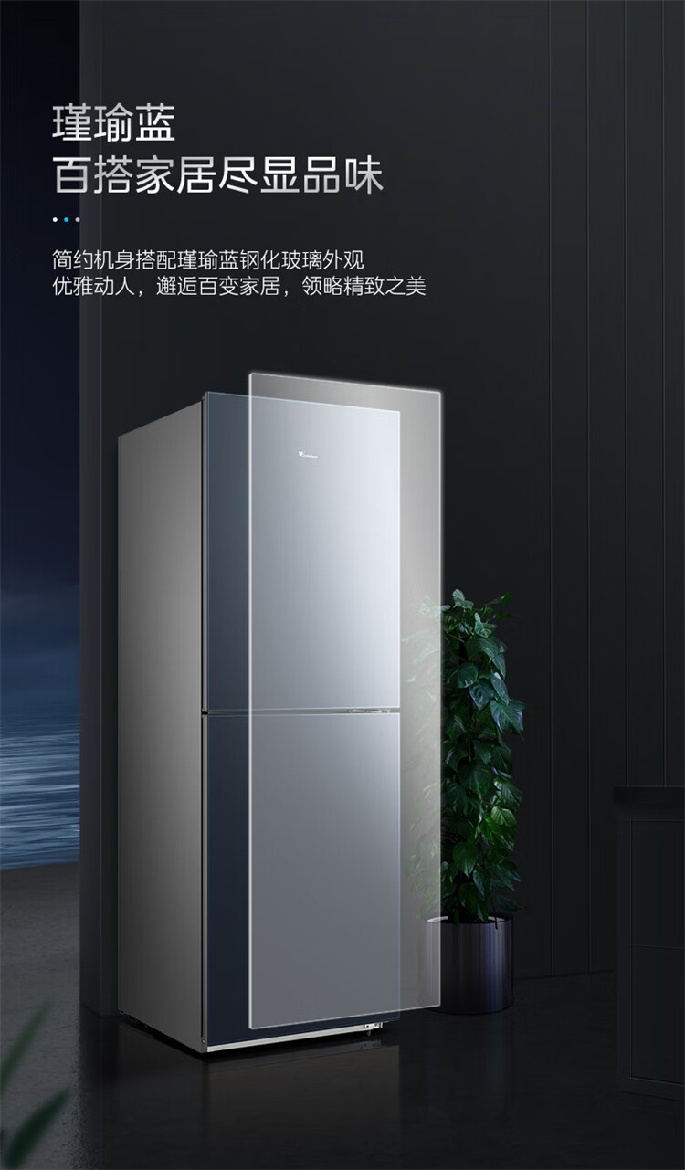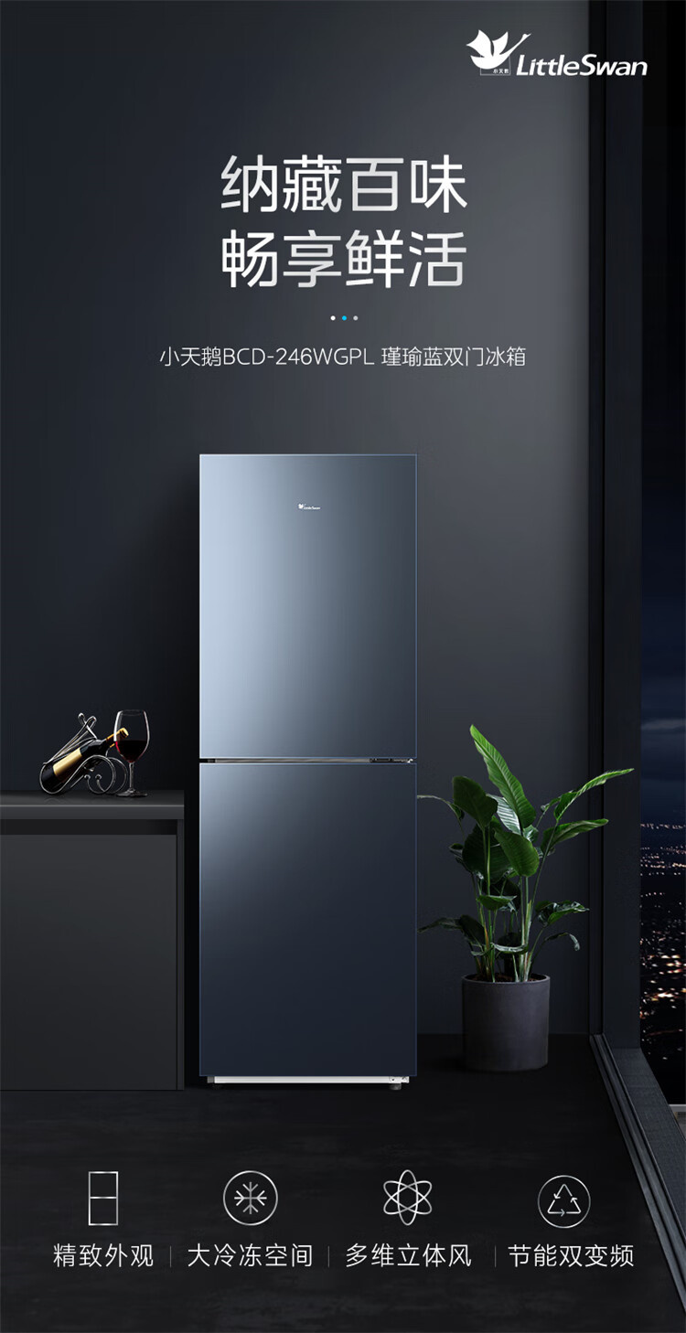 BCD-246WGPL 瑾瑜蓝 246升 风冷无霜 变频 两门冰箱 2级能效 小天鹅(LitteSwan)