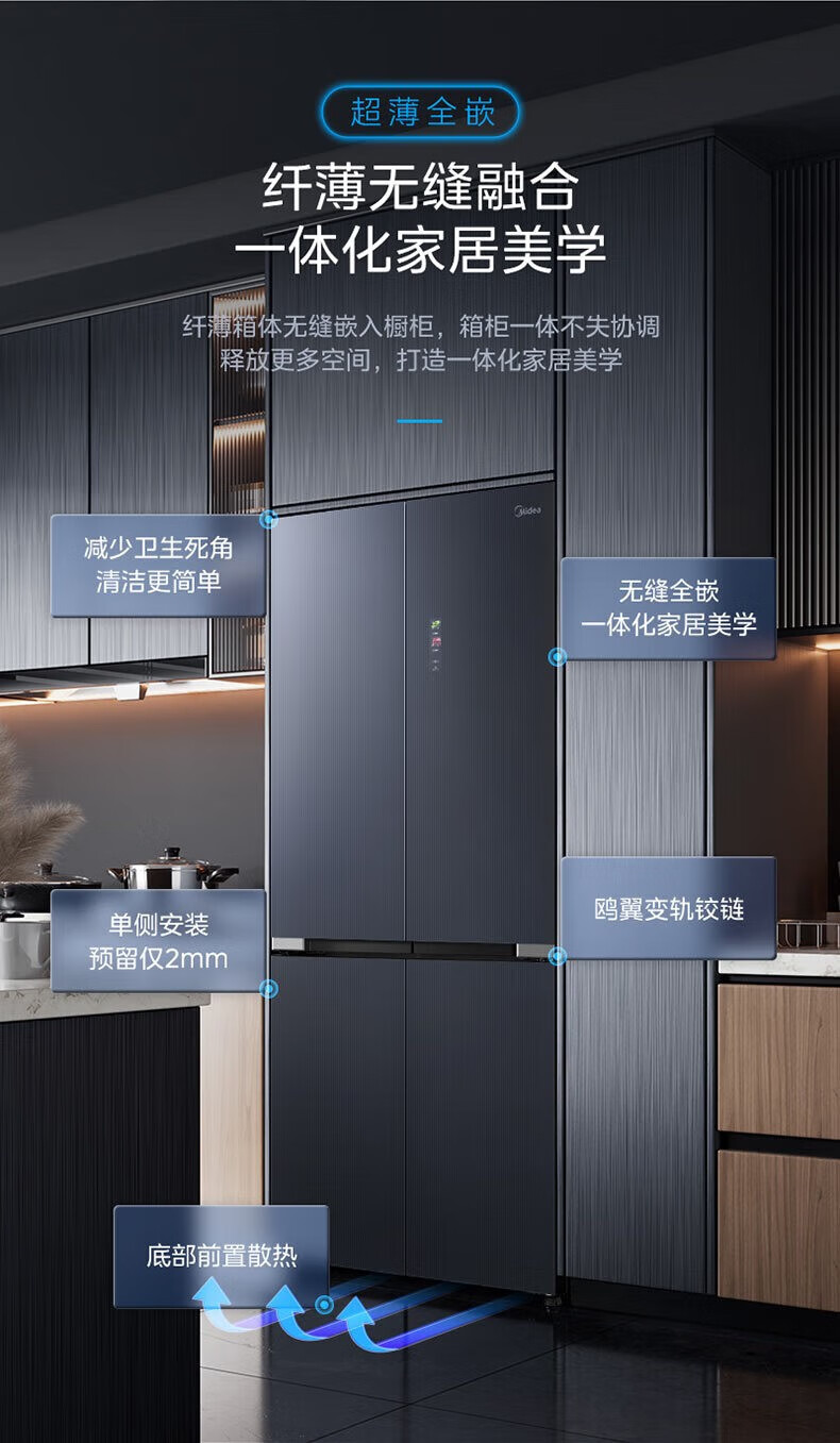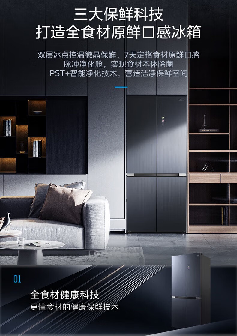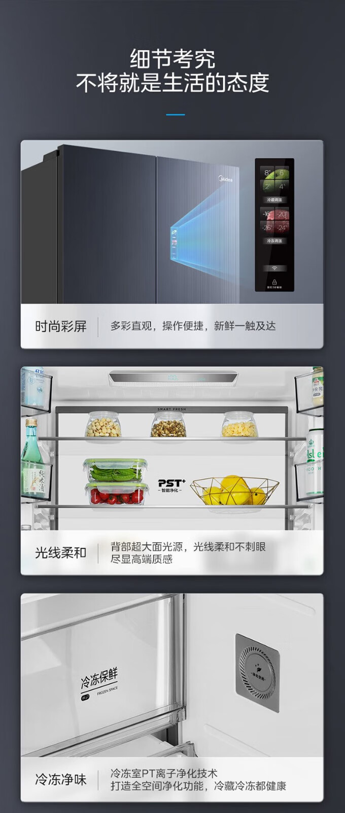 BCD-527WSGPZMA 钻影灰 527升 风冷无霜 变频 对开门冰箱 1级能效 美的(Midea)