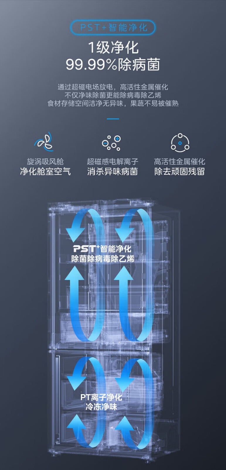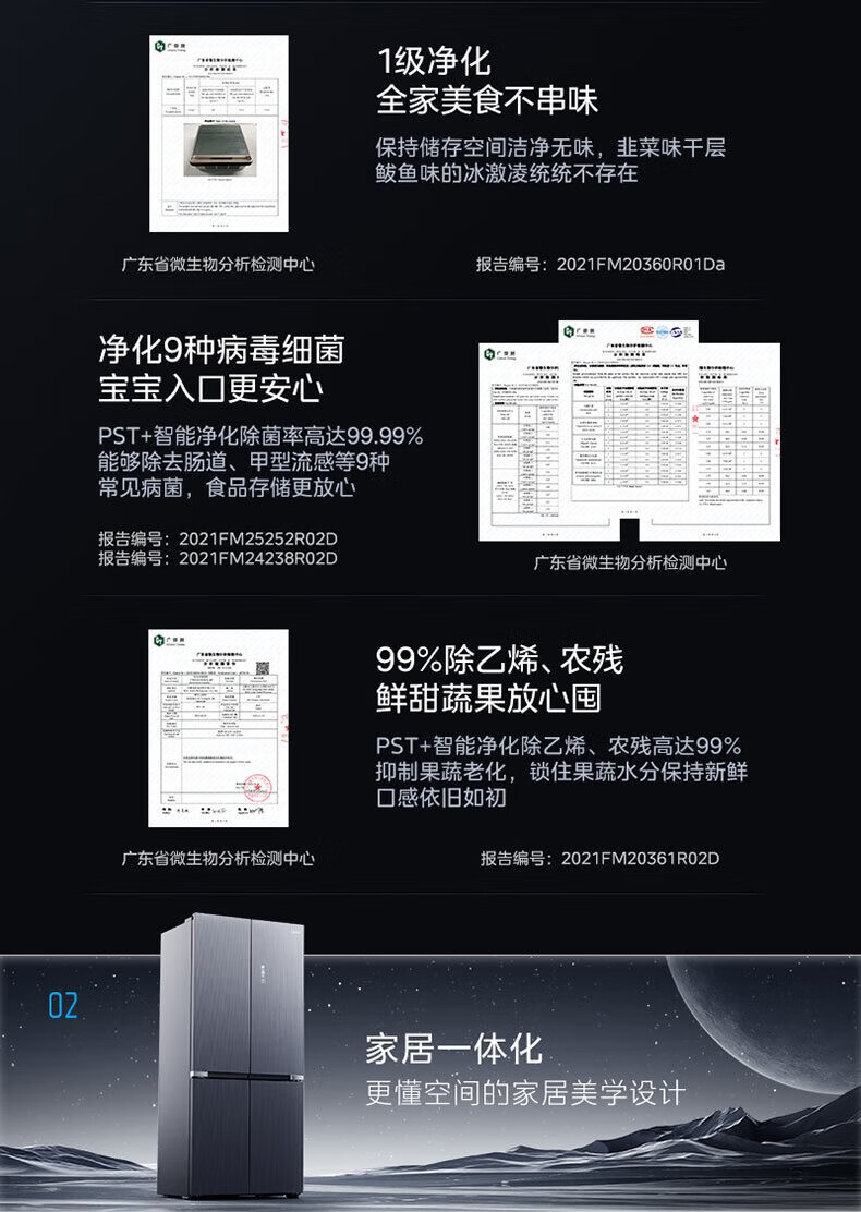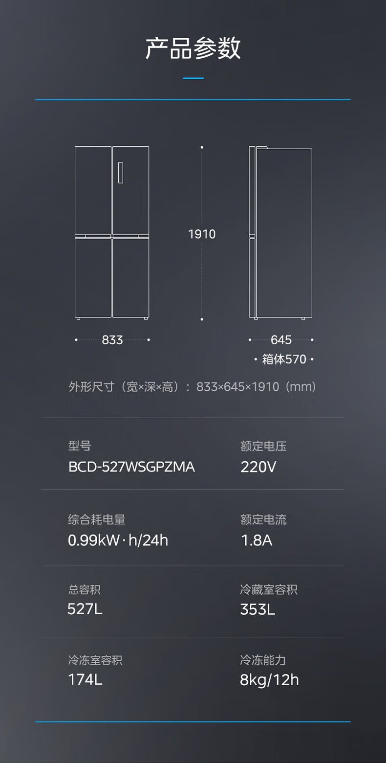 BCD-527WSGPZMA 钻影灰 527升 风冷无霜 变频 对开门冰箱 1级能效 美的(Midea)