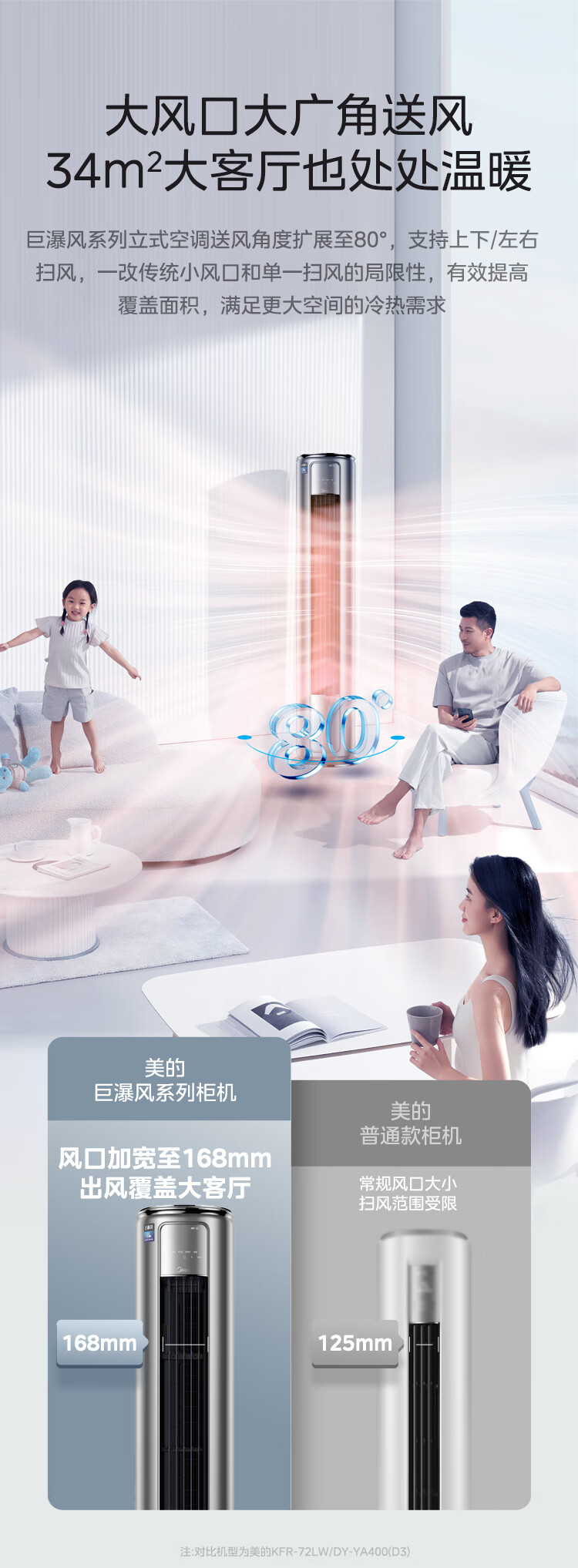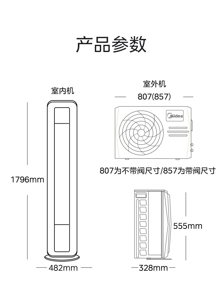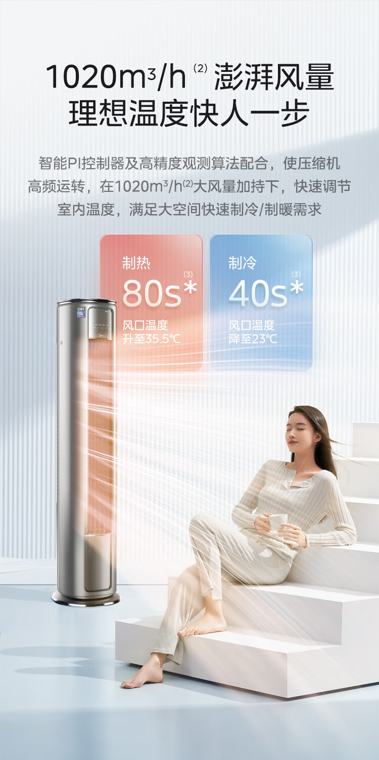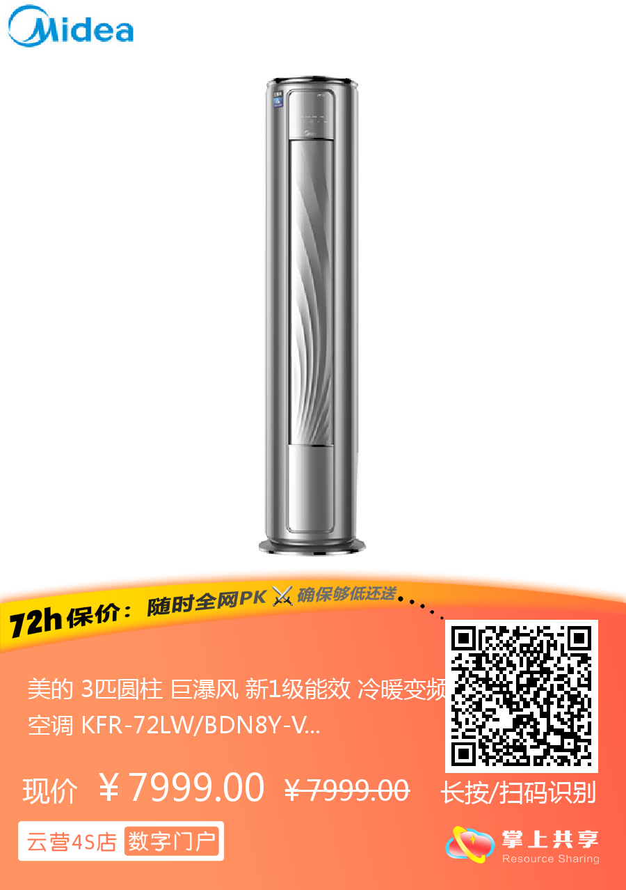 美的 3匹圆柱 巨瀑风 新1级能效 冷暖变频空调 KFR-72LW/BDN8Y-VC201(1)