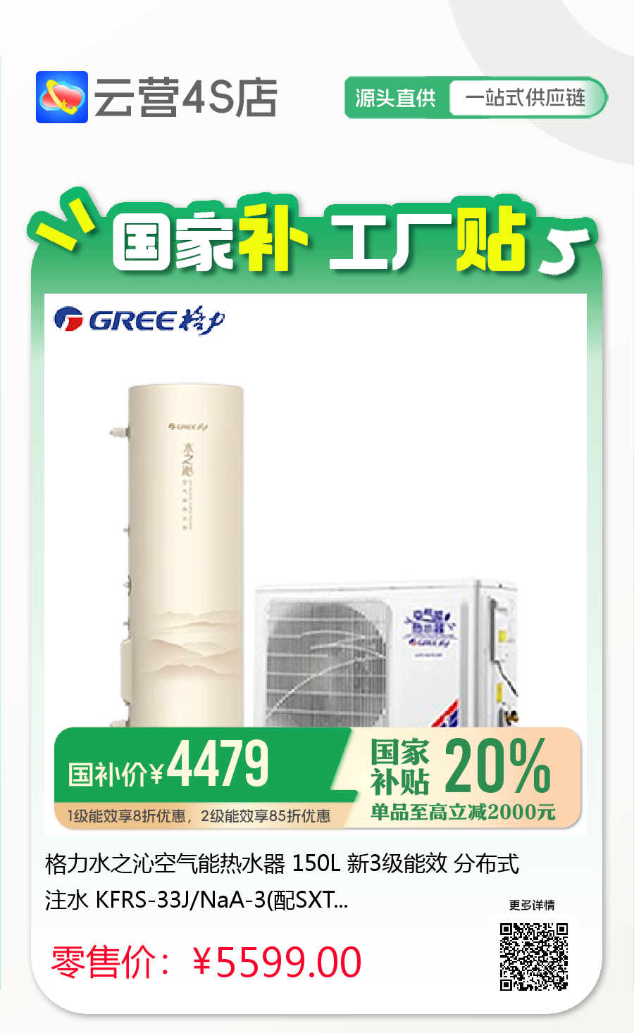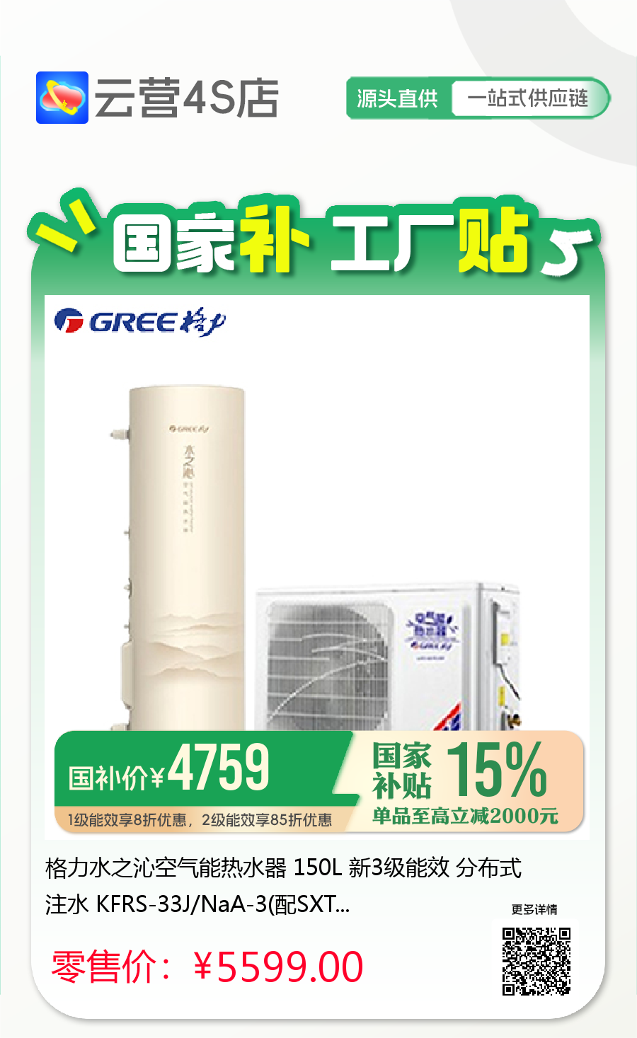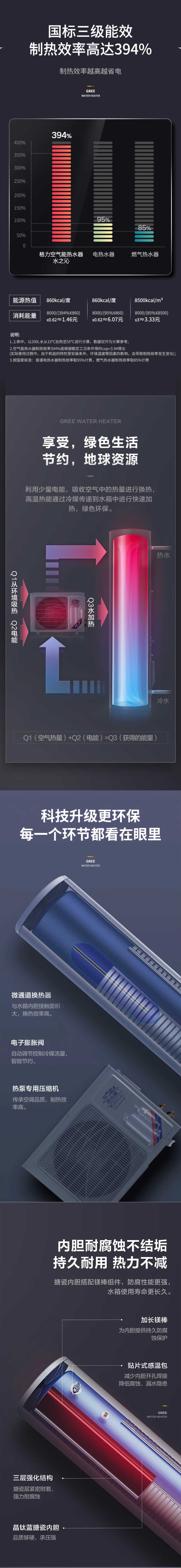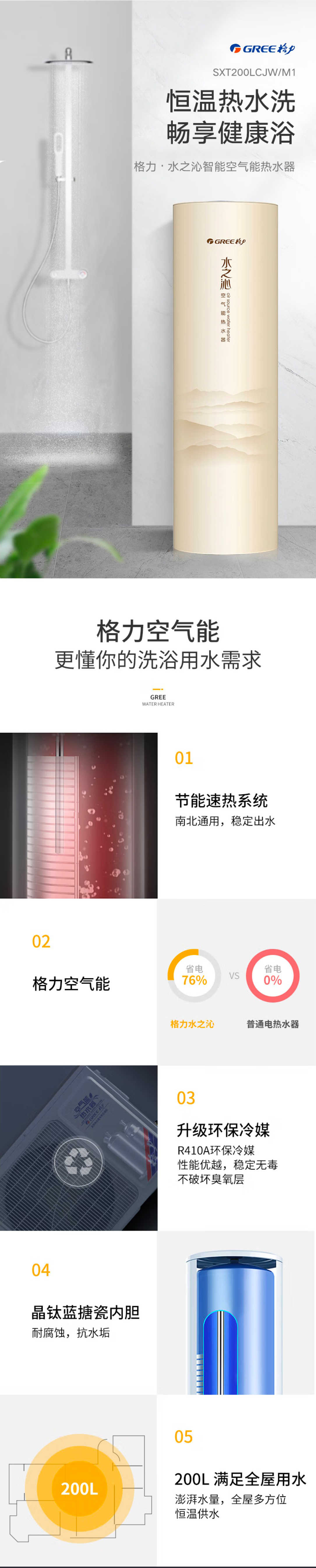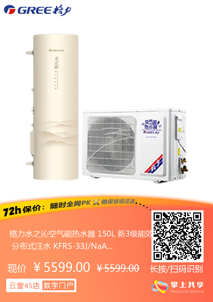 格力水之沁空气能热水器 150L 新3级能效 分布式注水 KFRS-33J/NaA-3(配SXT150LCJW/R-3)