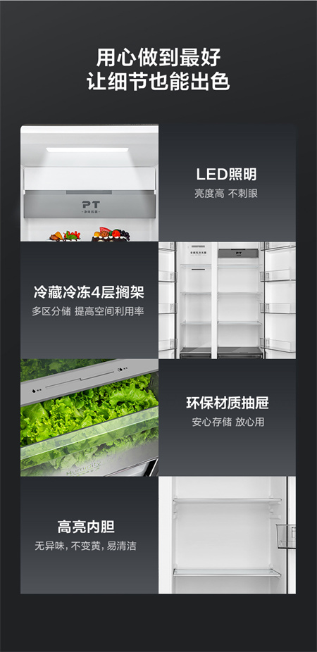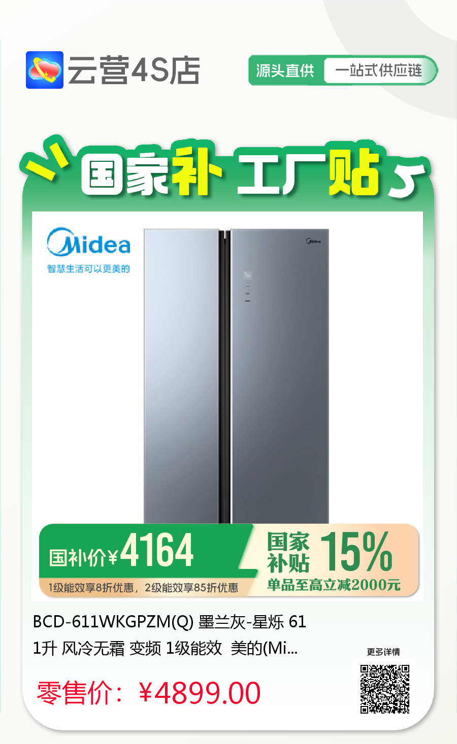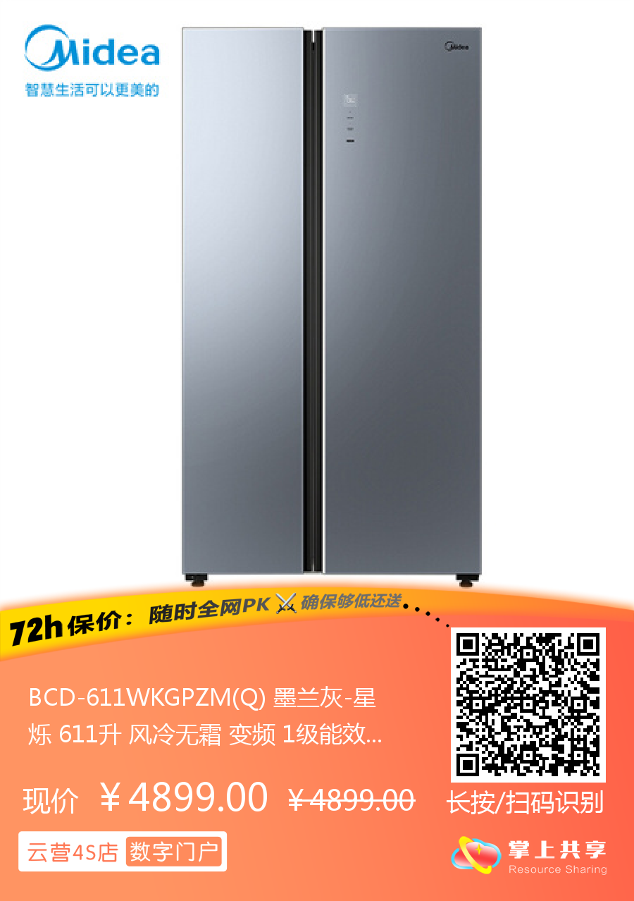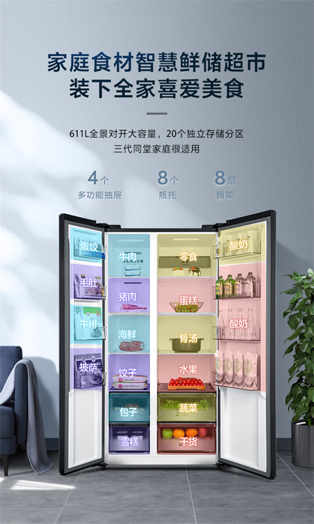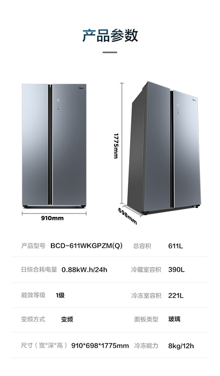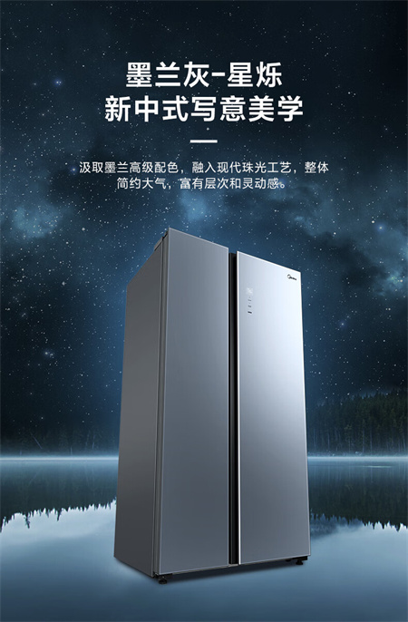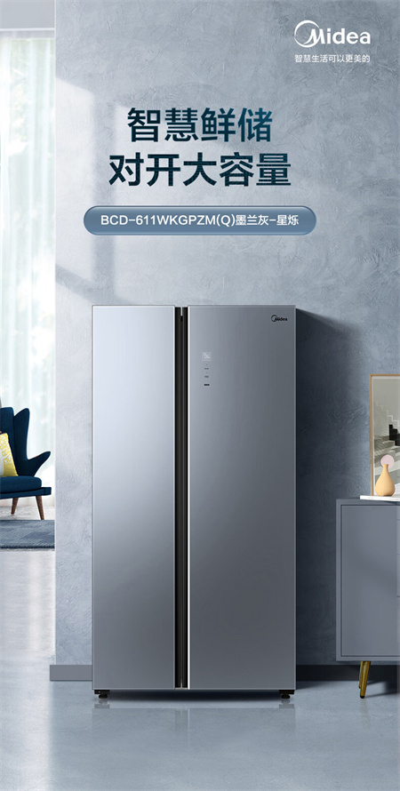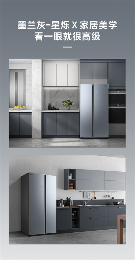 BCD-611WKGPZM(Q) 墨兰灰-星烁 611升 风冷无霜 变频 1级能效 美的(Midea)