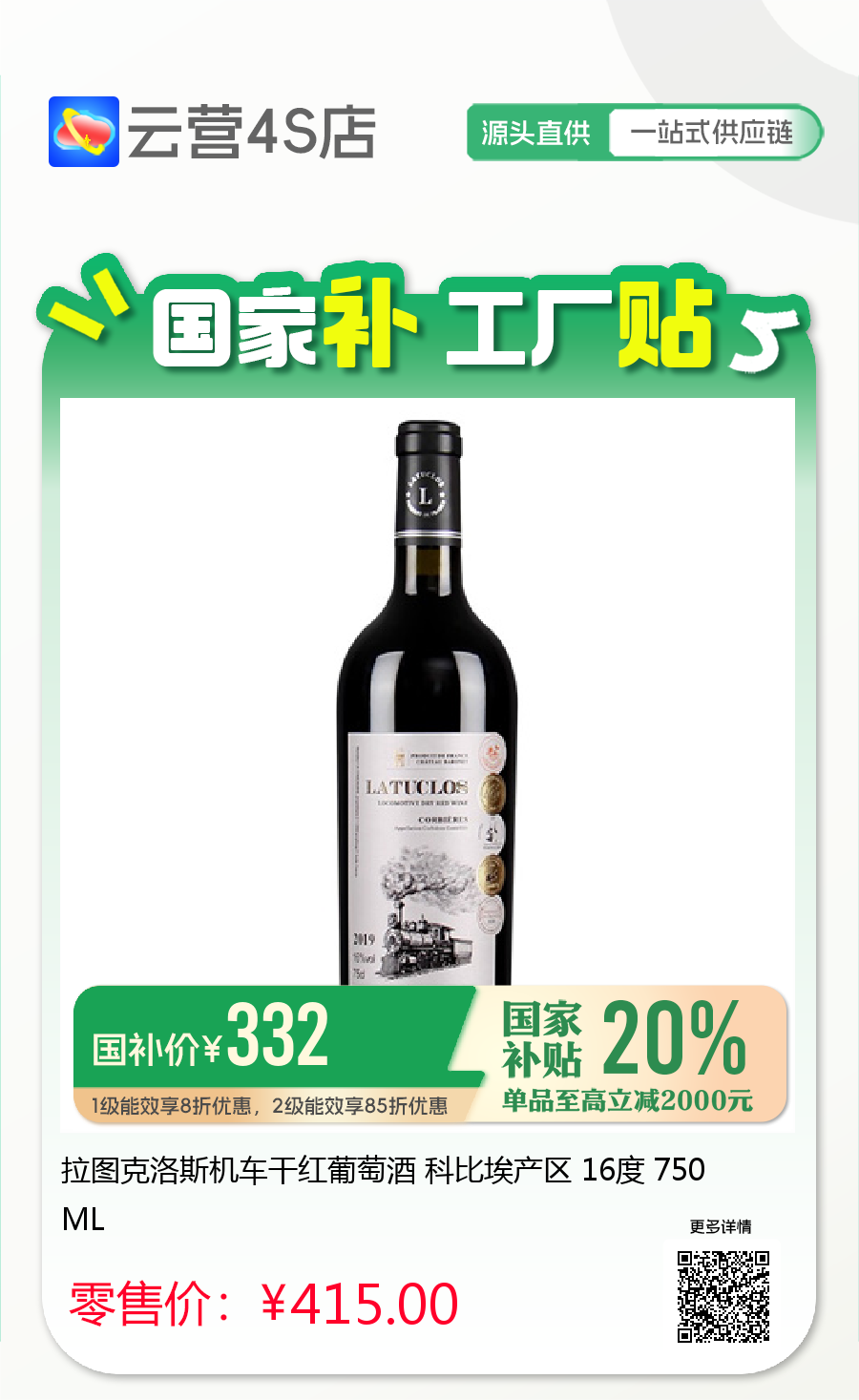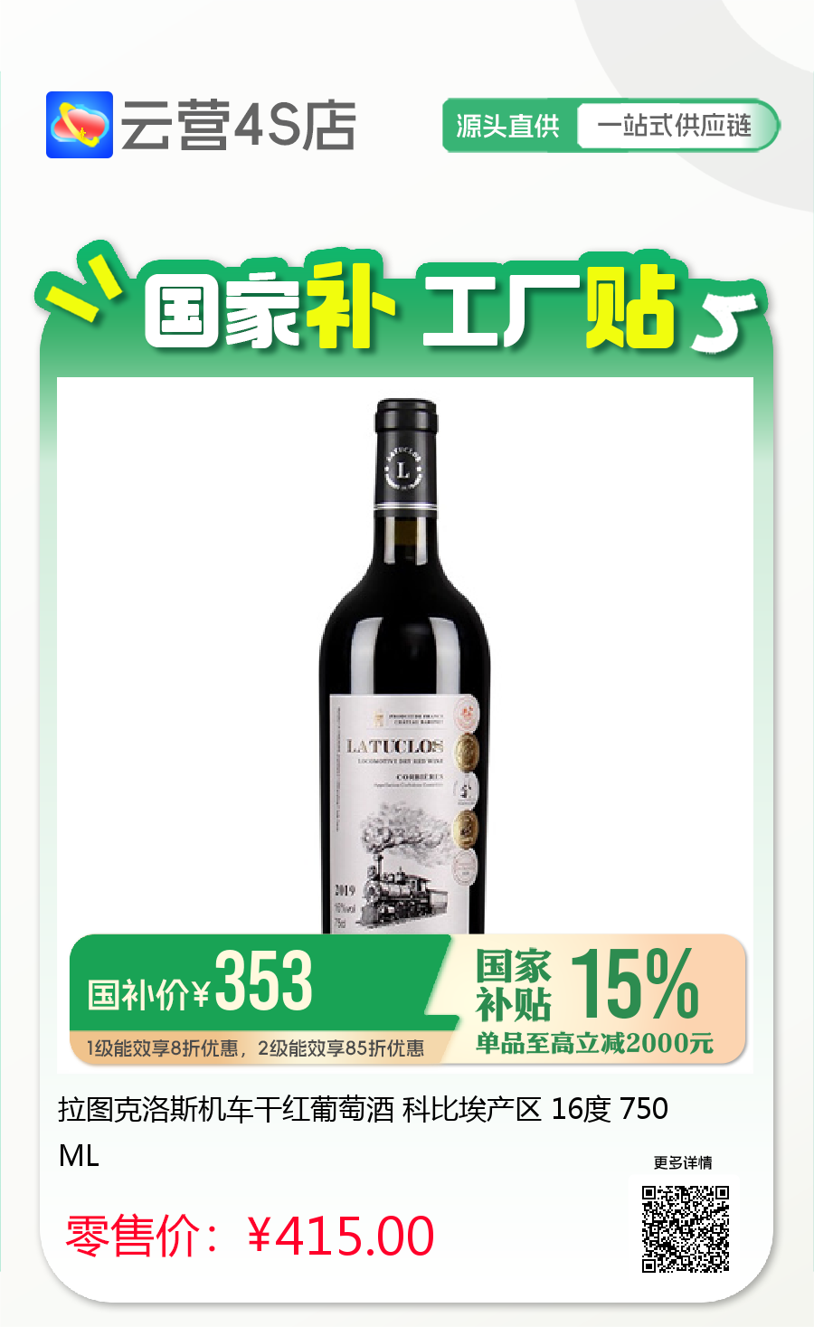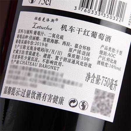 拉图克洛斯机车干红葡萄酒 科比埃产区 16度 750ML