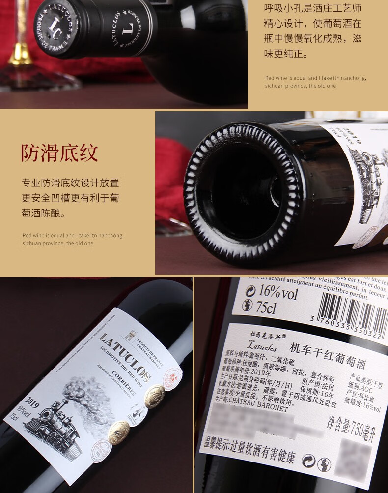 拉图克洛斯机车干红葡萄酒 科比埃产区 16度 750ML