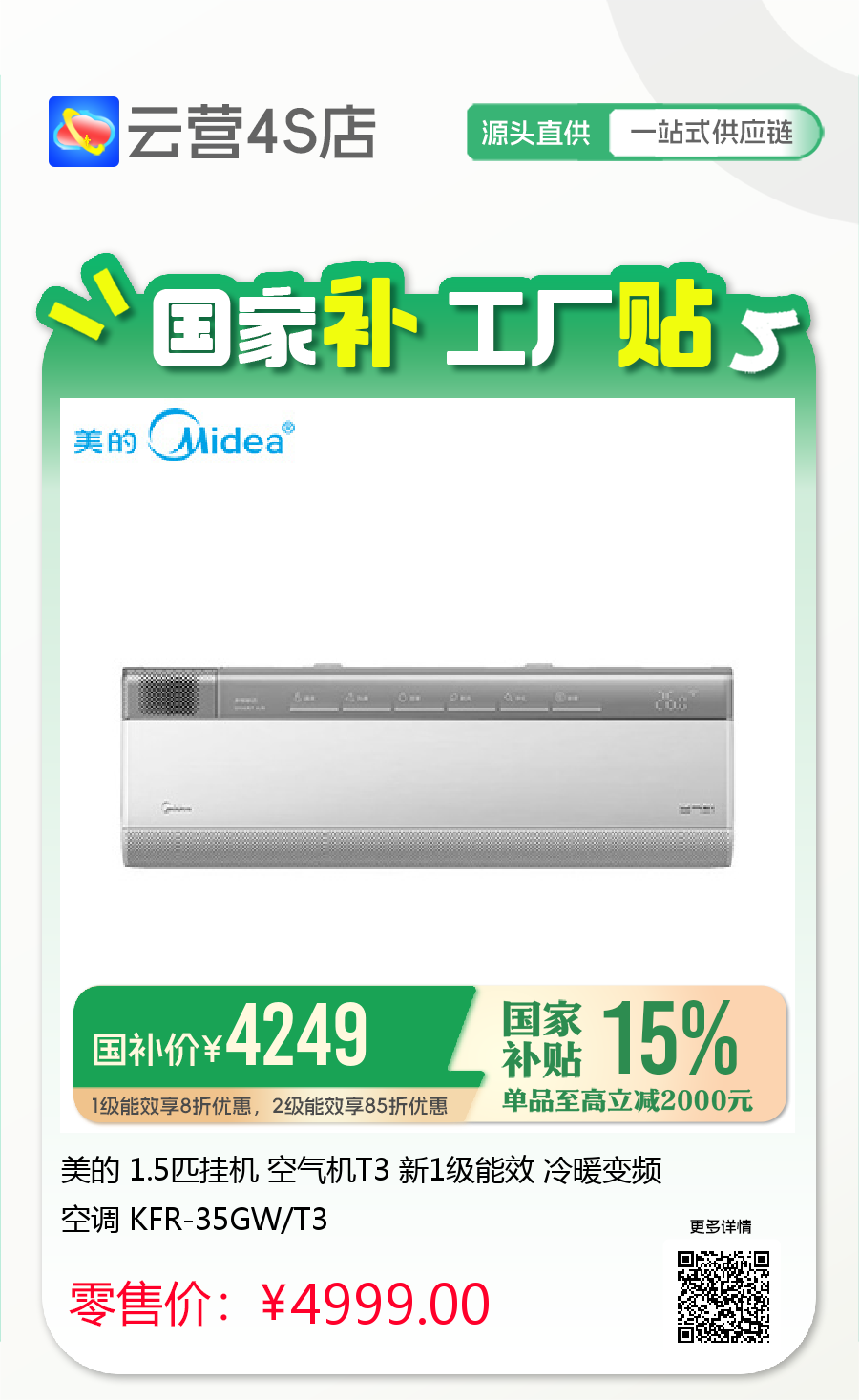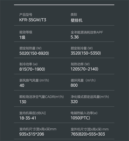 美的 1.5匹挂机 空气机T3 新1级能效 冷暖变频空调 KFR-35GW/T3