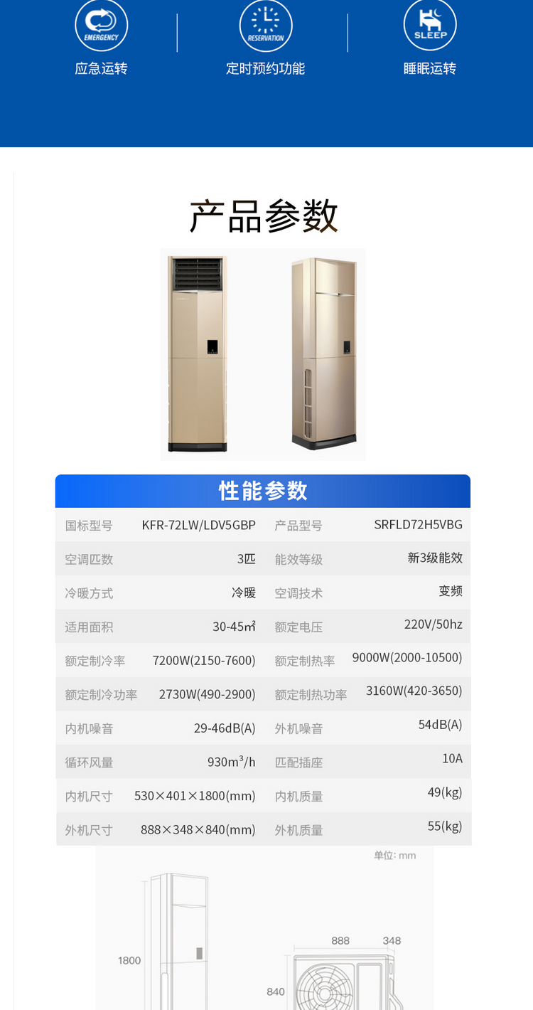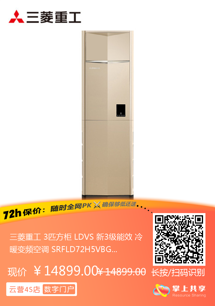 三菱重工 3匹方柜 LDVS 新3级能效 冷暖变频空调 SRFLD72H5VBG