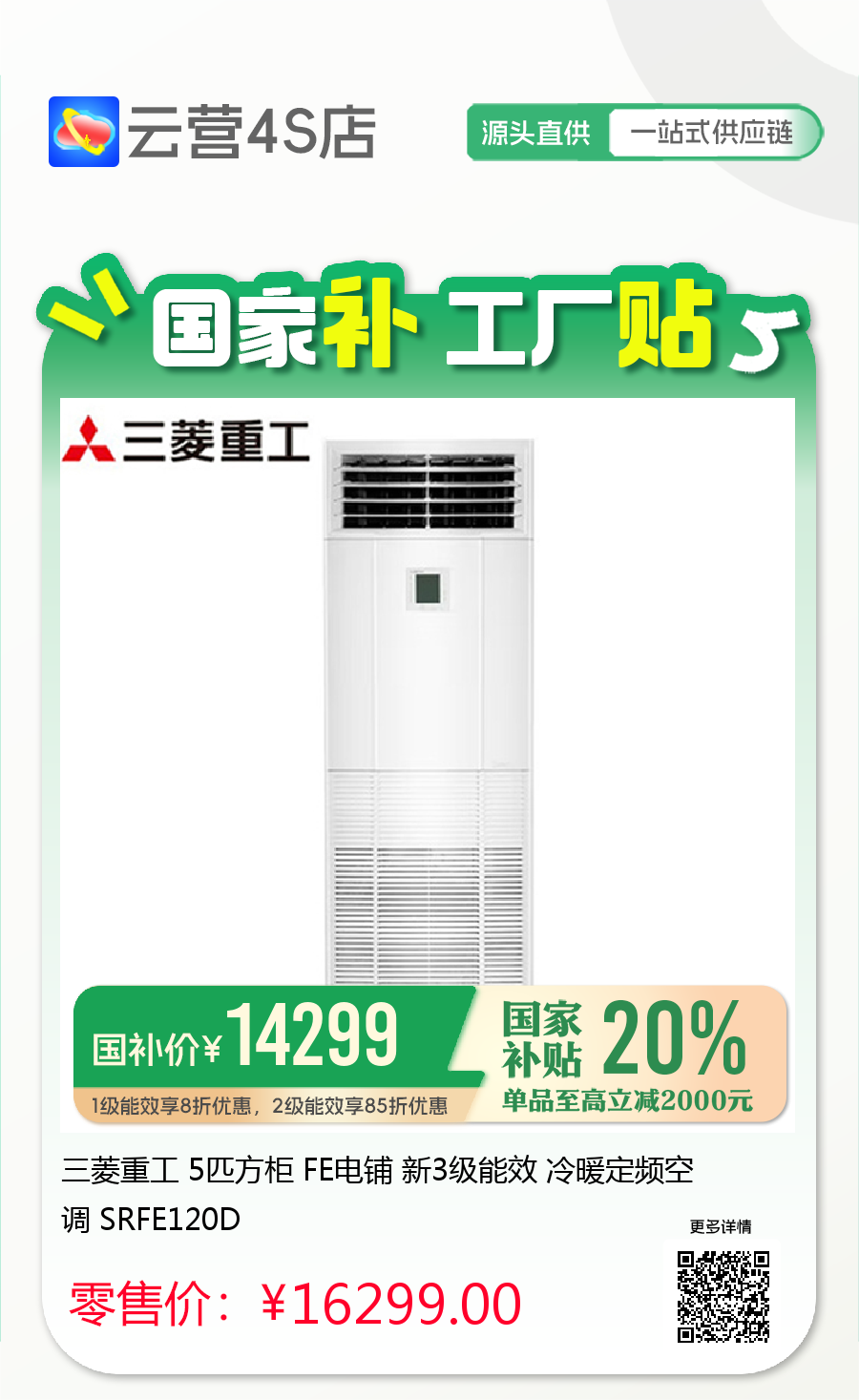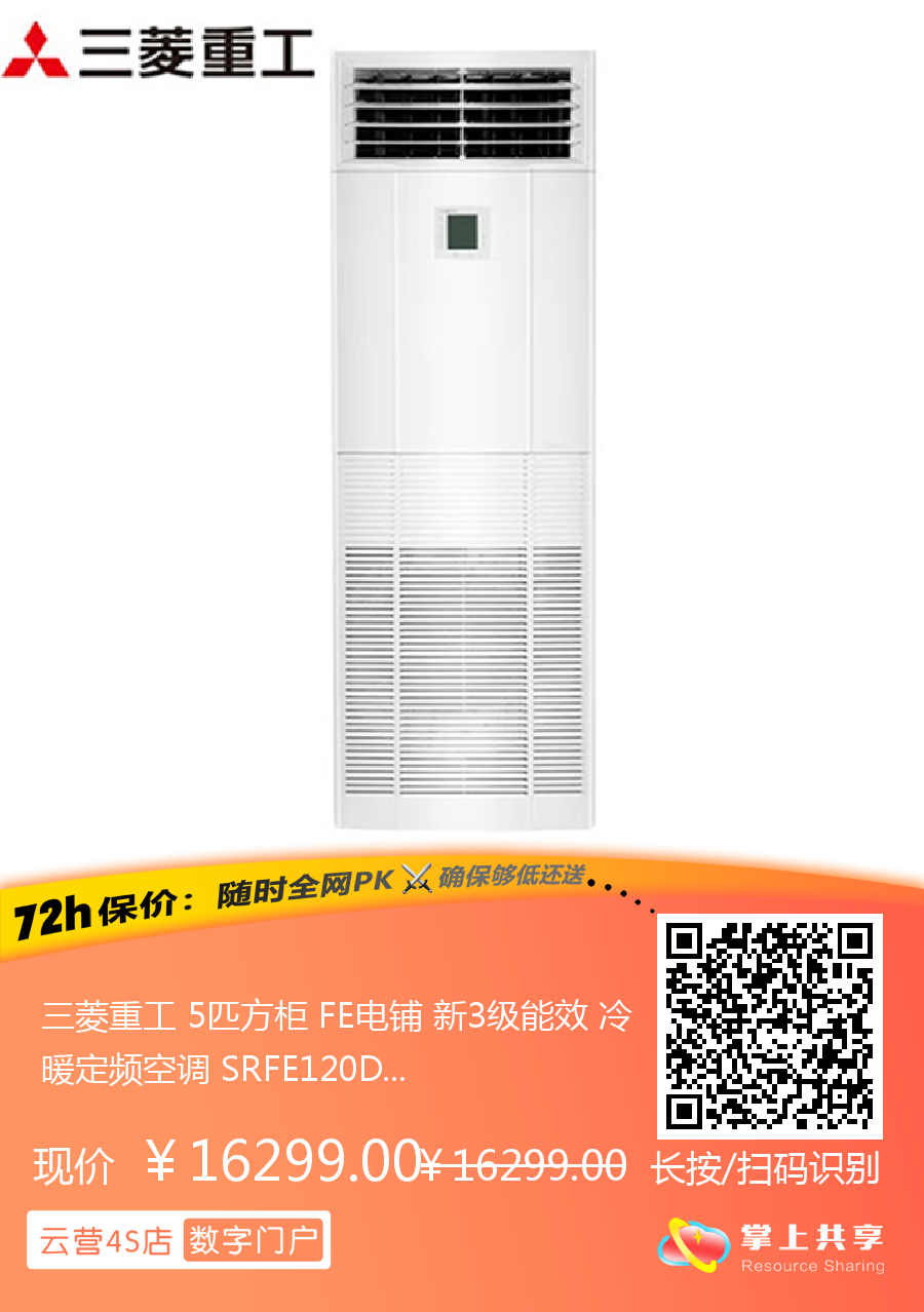 三菱重工 5匹方柜 FE电铺 新3级能效 冷暖定频空调 SRFE120D