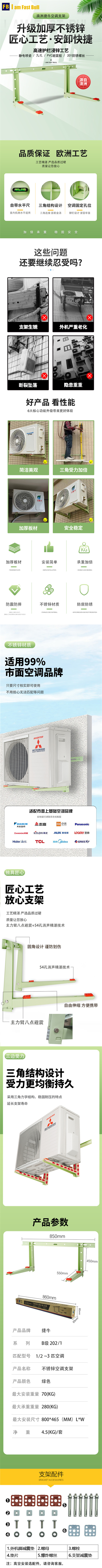 捷牛空调不锈锌支架 适用1~1.5匹 B201