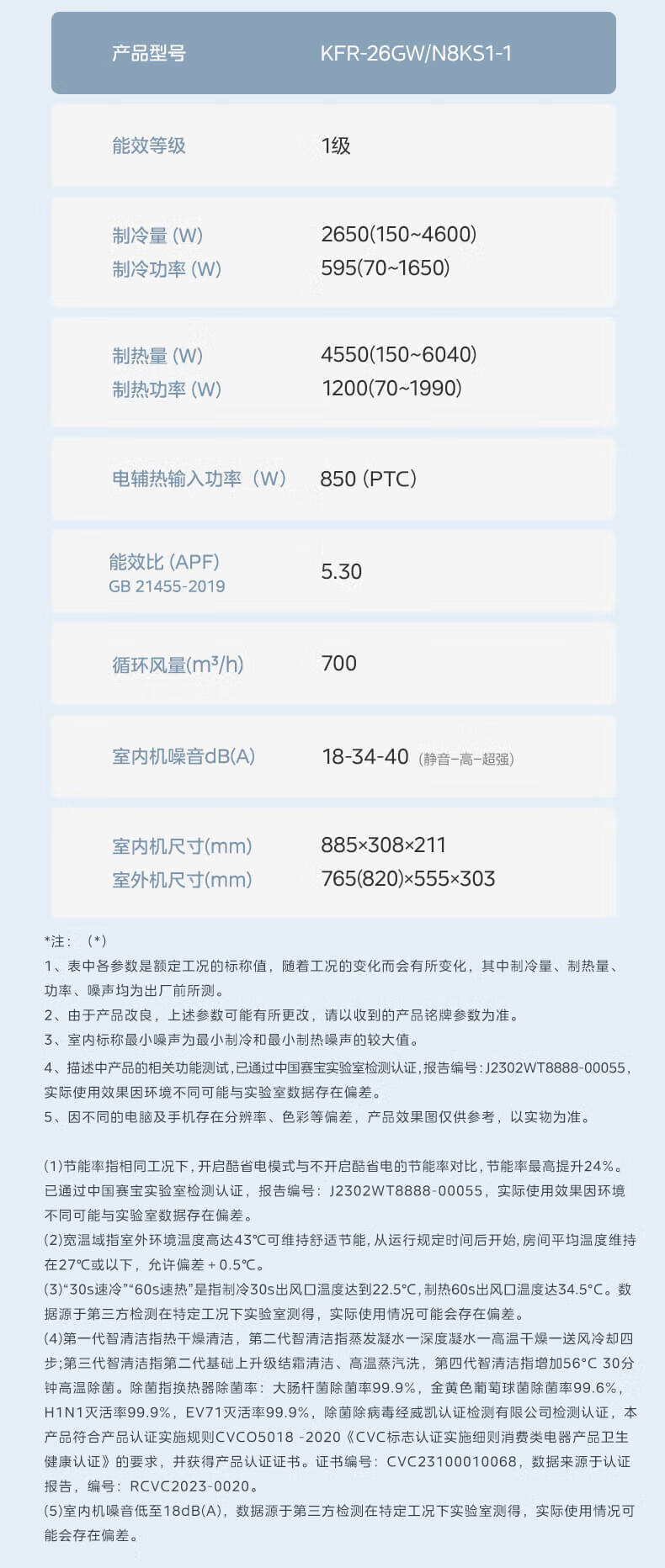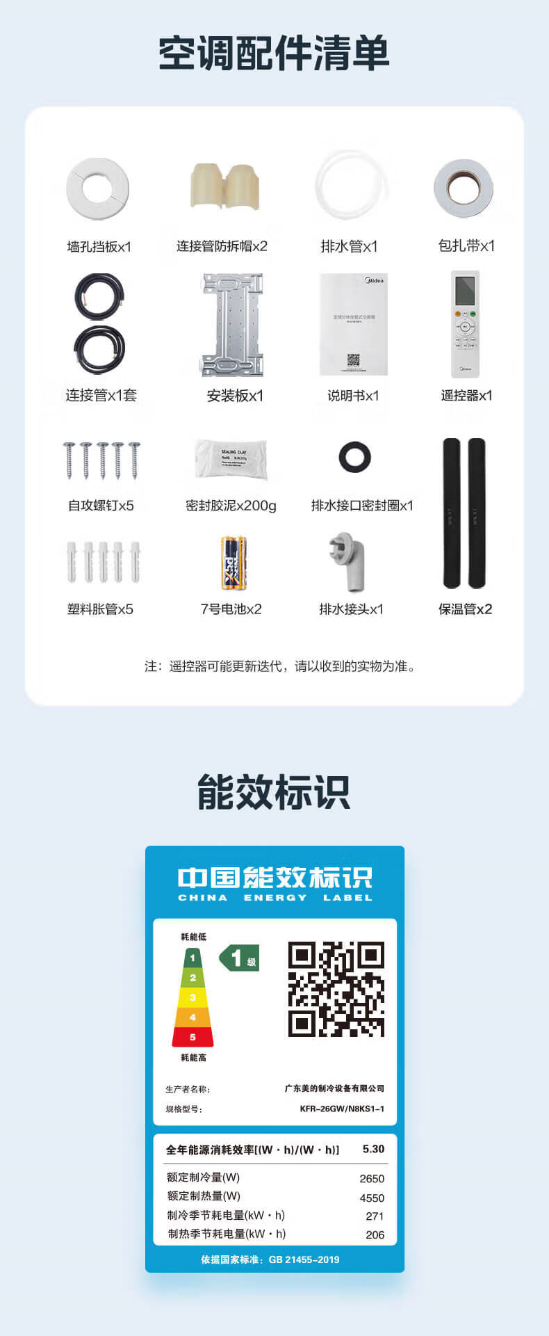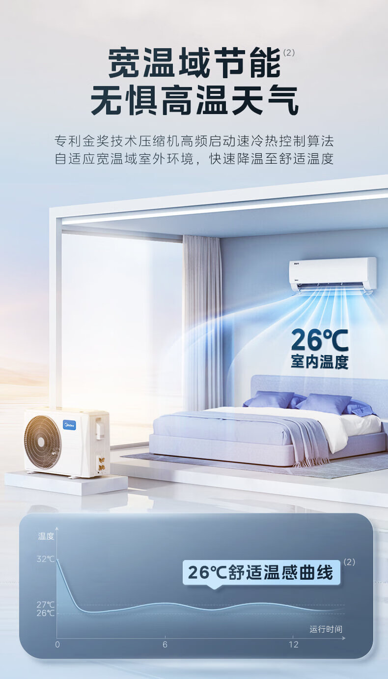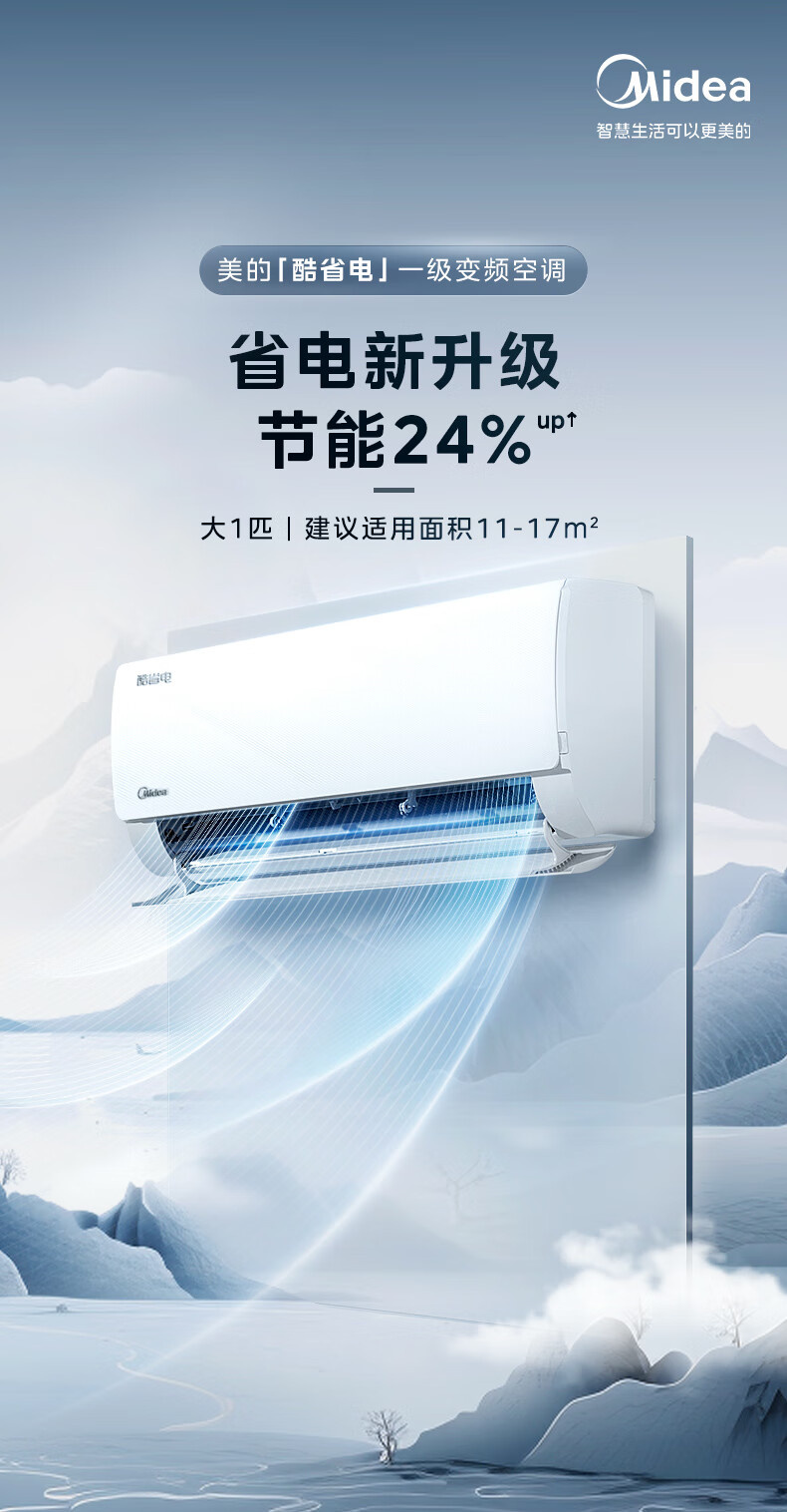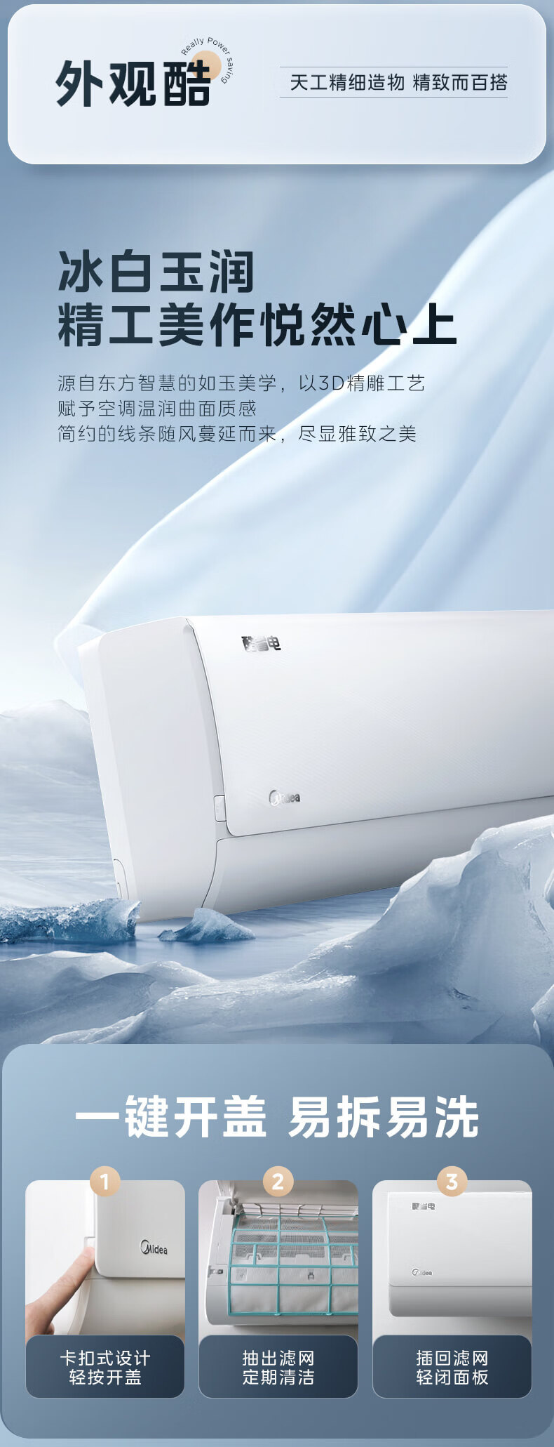 美的 大1匹挂机 酷省电 新1级能效 冷暖变频空调 KFR-26GW/N8KS1-1