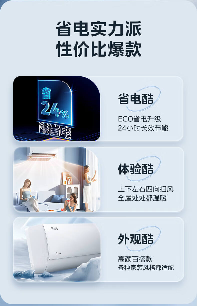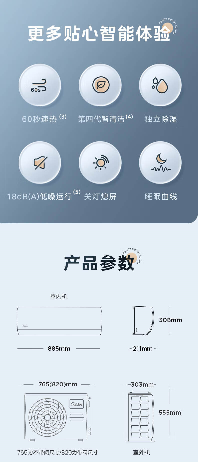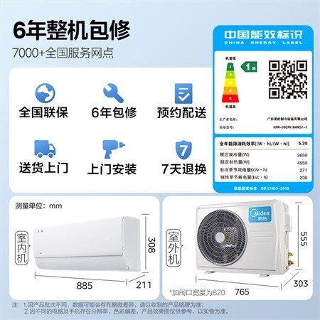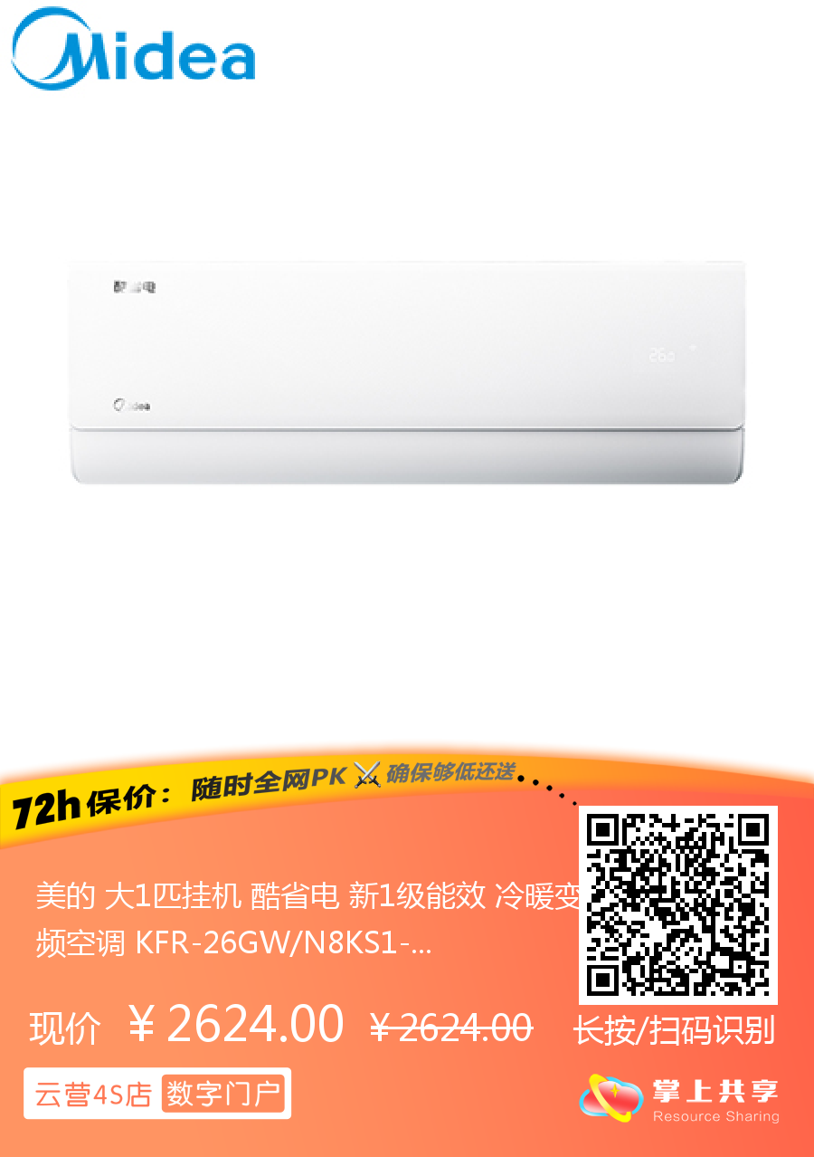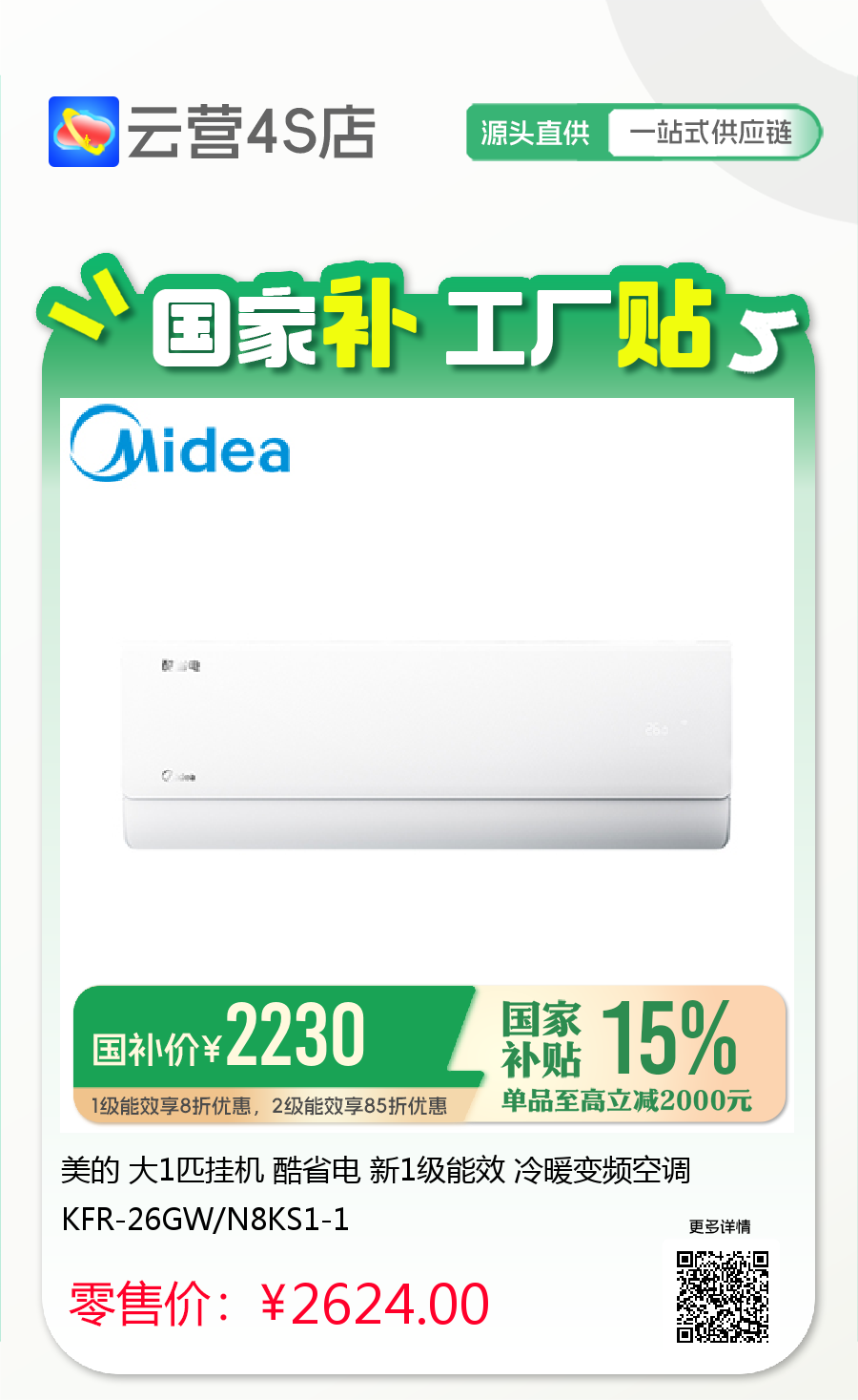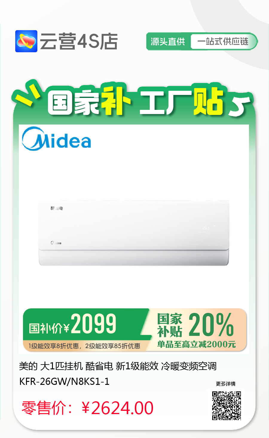 美的 大1匹挂机 酷省电 新1级能效 冷暖变频空调 KFR-26GW/N8KS1-1