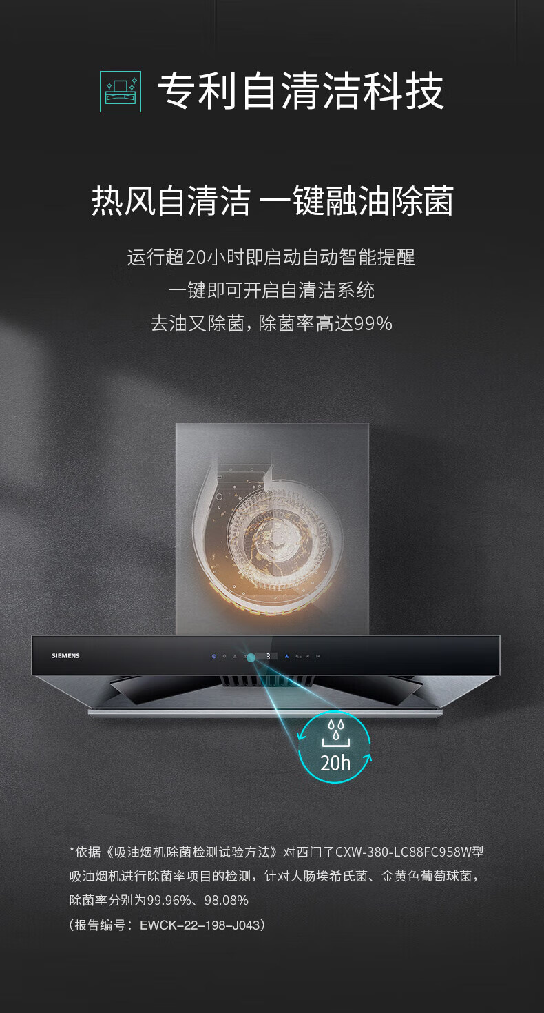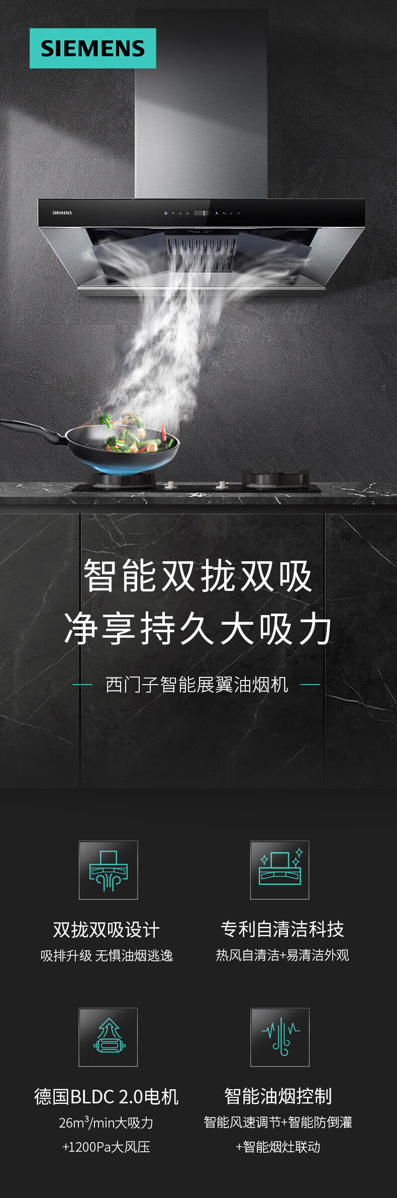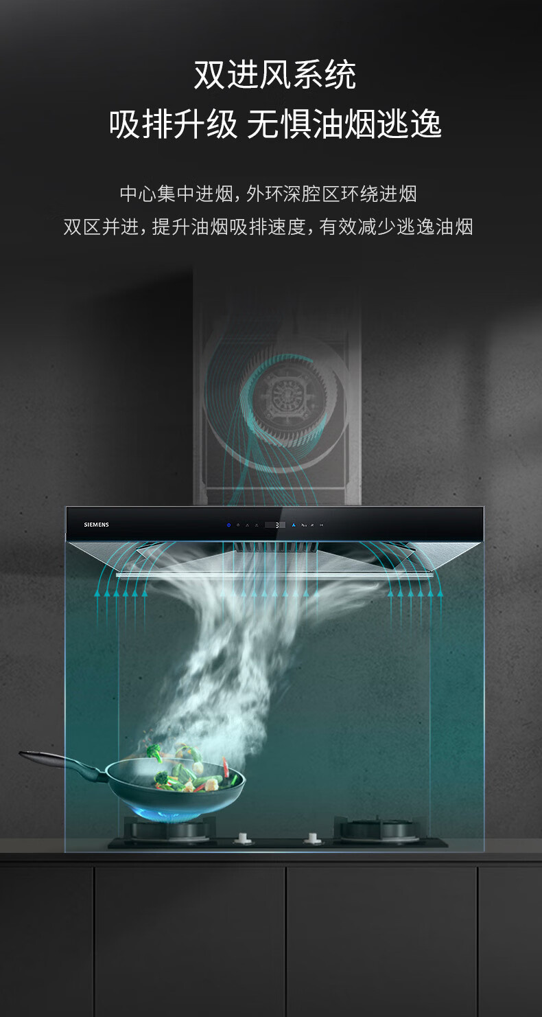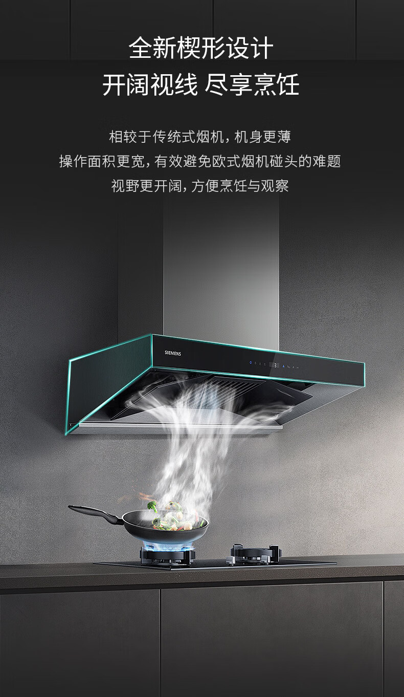 LC77UA951W 大风量21.5m³/min 430Pa 一键除菌 欧式拢吸 顶吸 西门子吸油烟机
