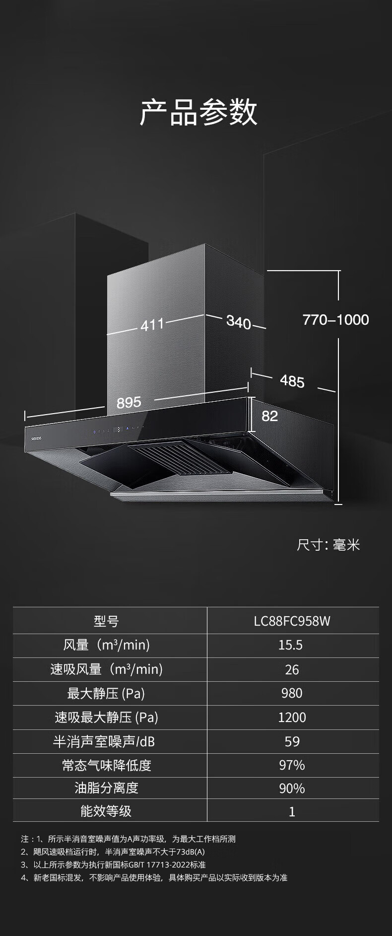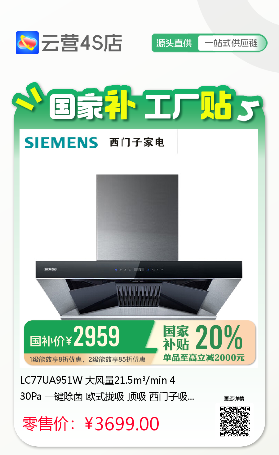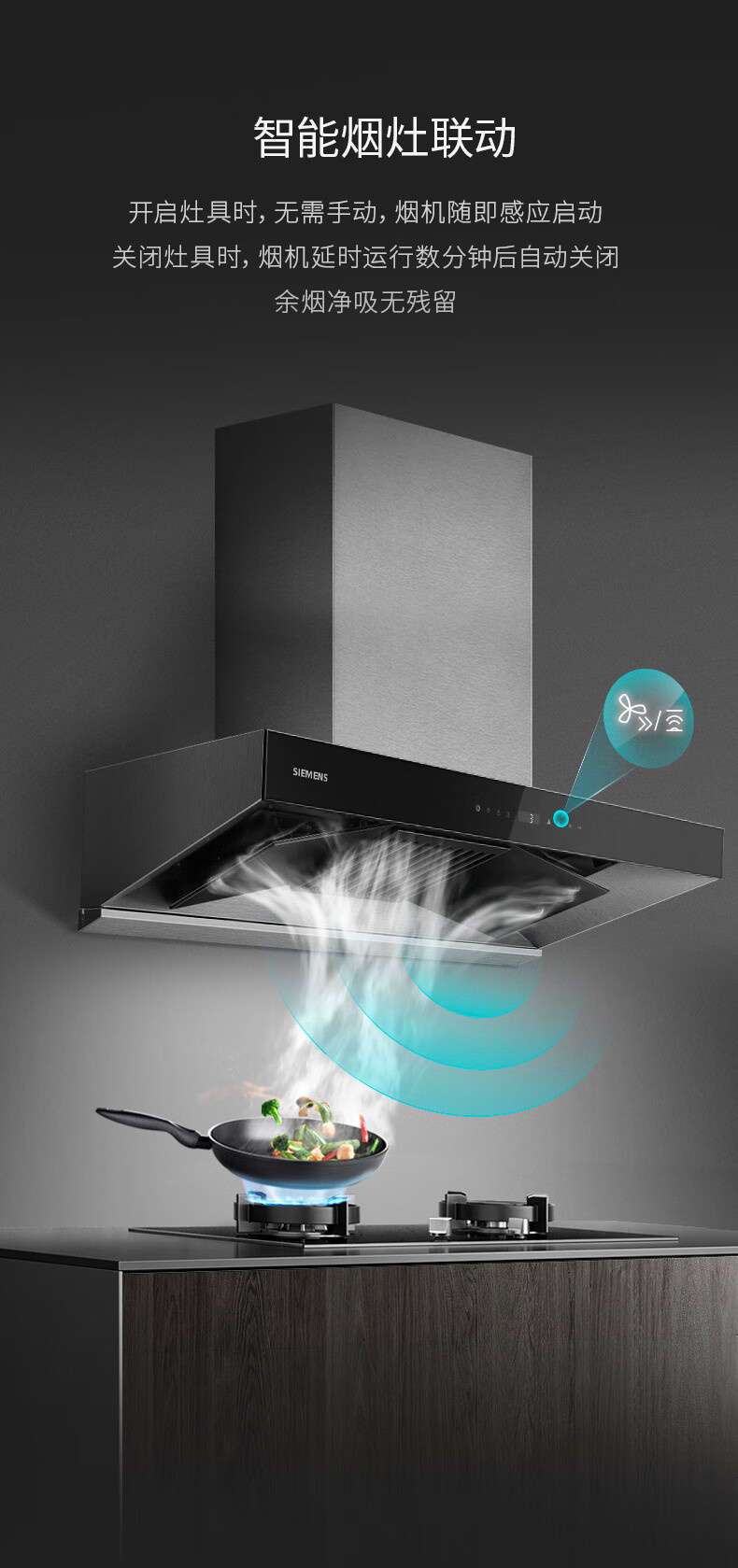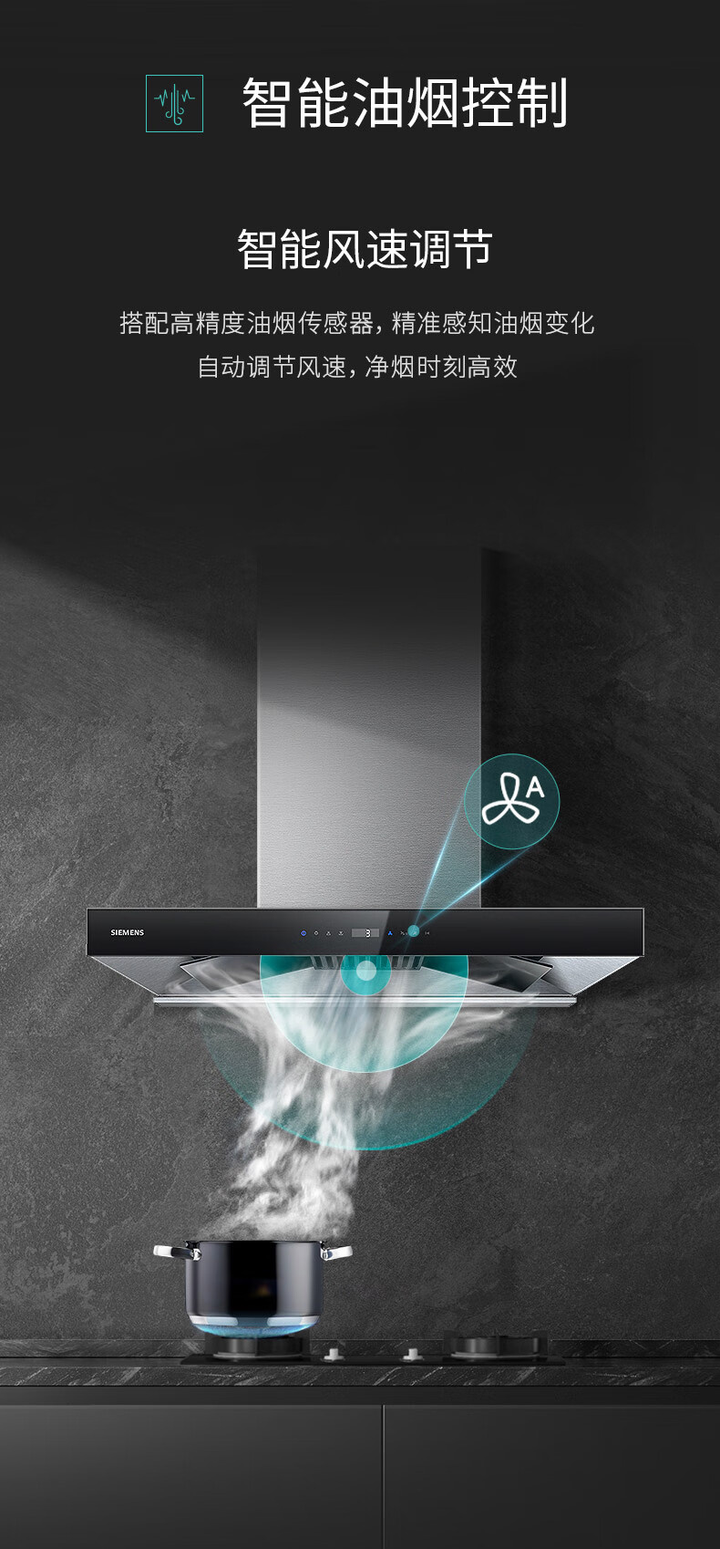 LC77UA951W 大风量21.5m³/min 430Pa 一键除菌 欧式拢吸 顶吸 西门子吸油烟机