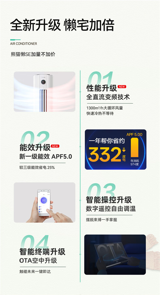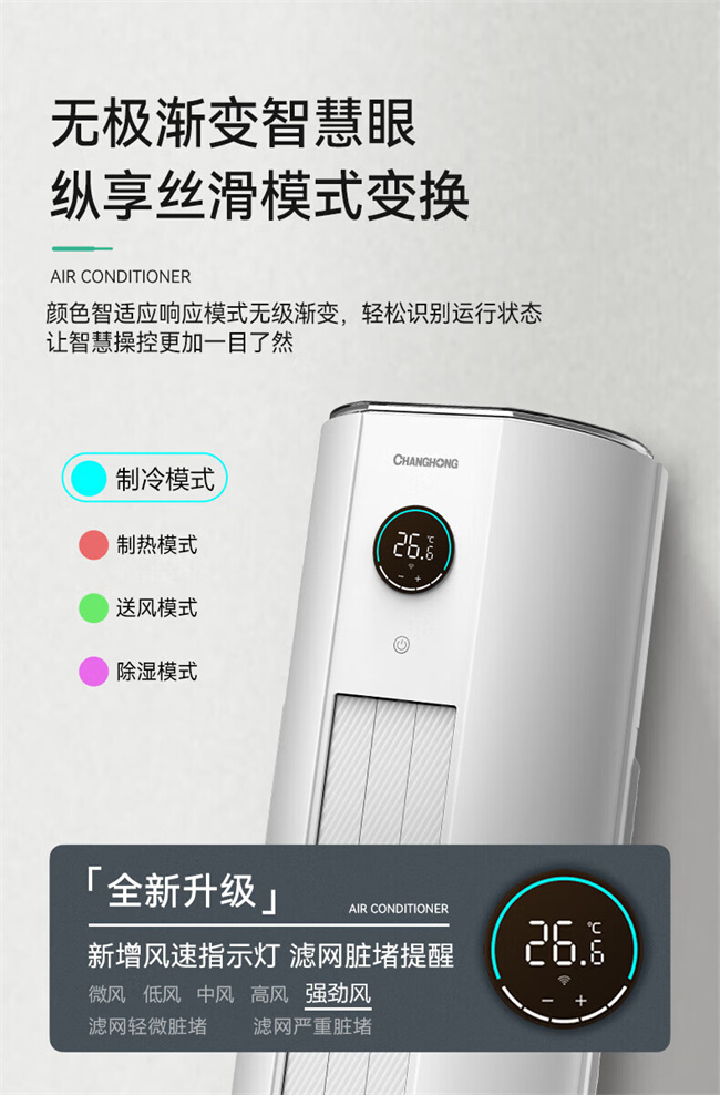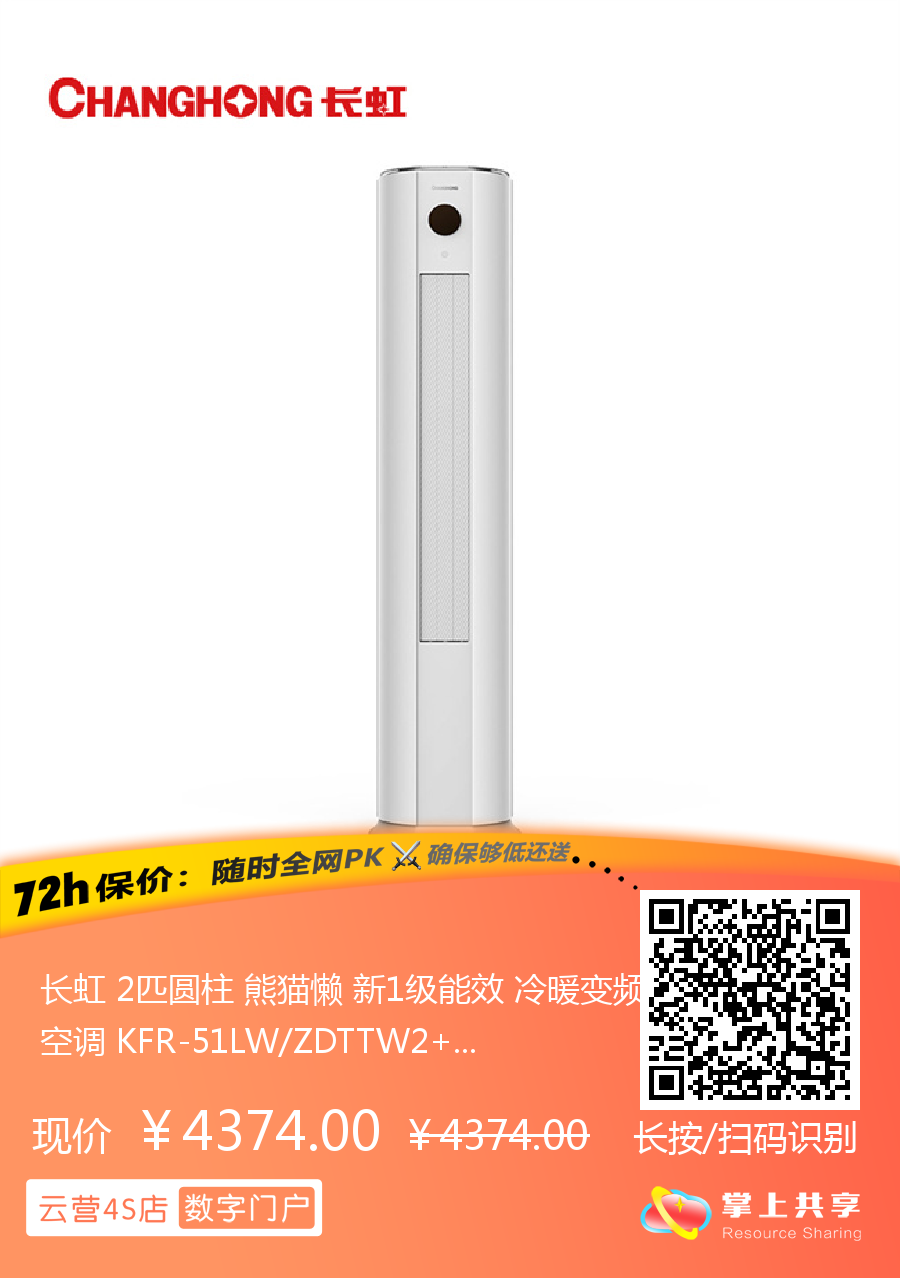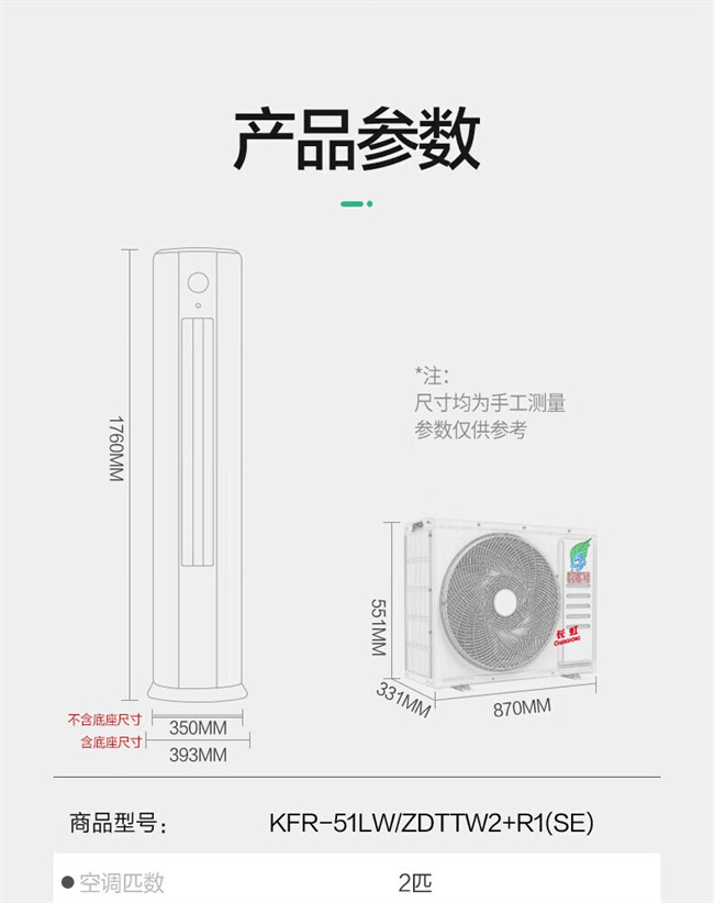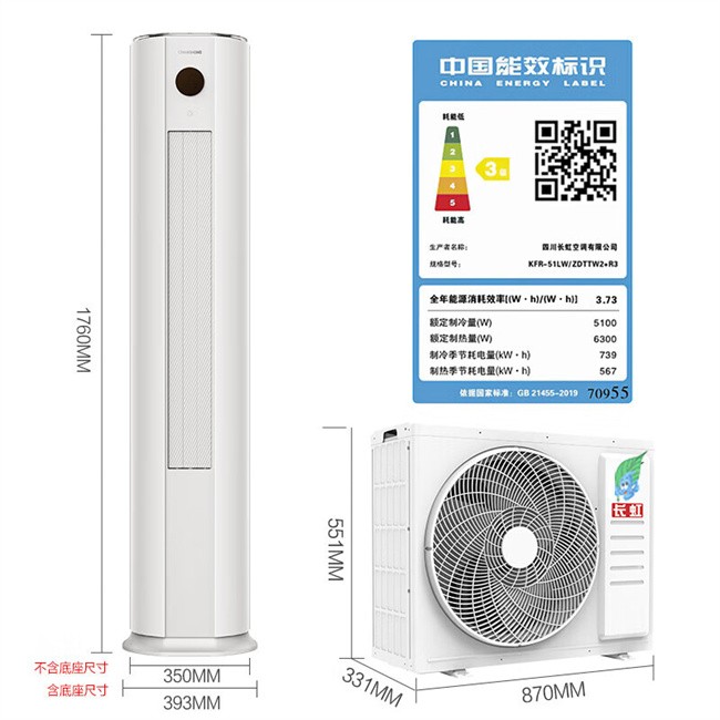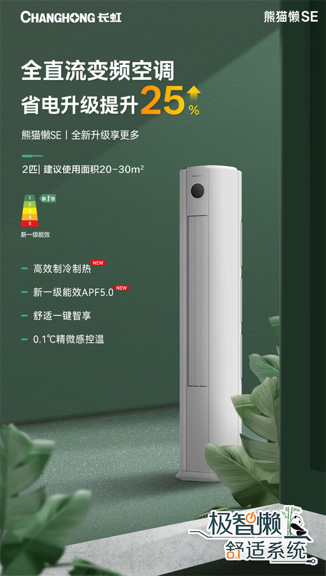 长虹 2匹圆柱 熊猫懒 新1级能效 冷暖变频空调 KFR-51LW/ZDTTW2+R1
