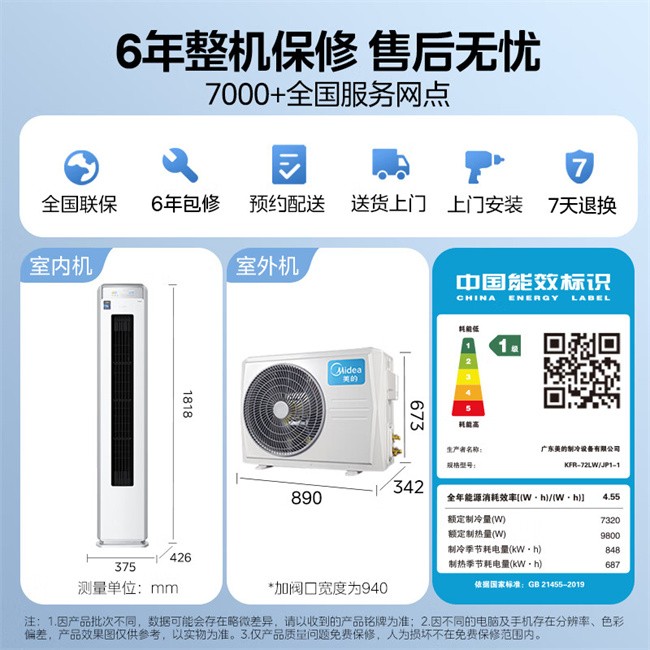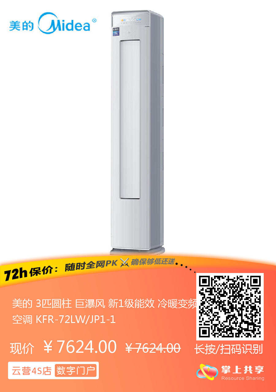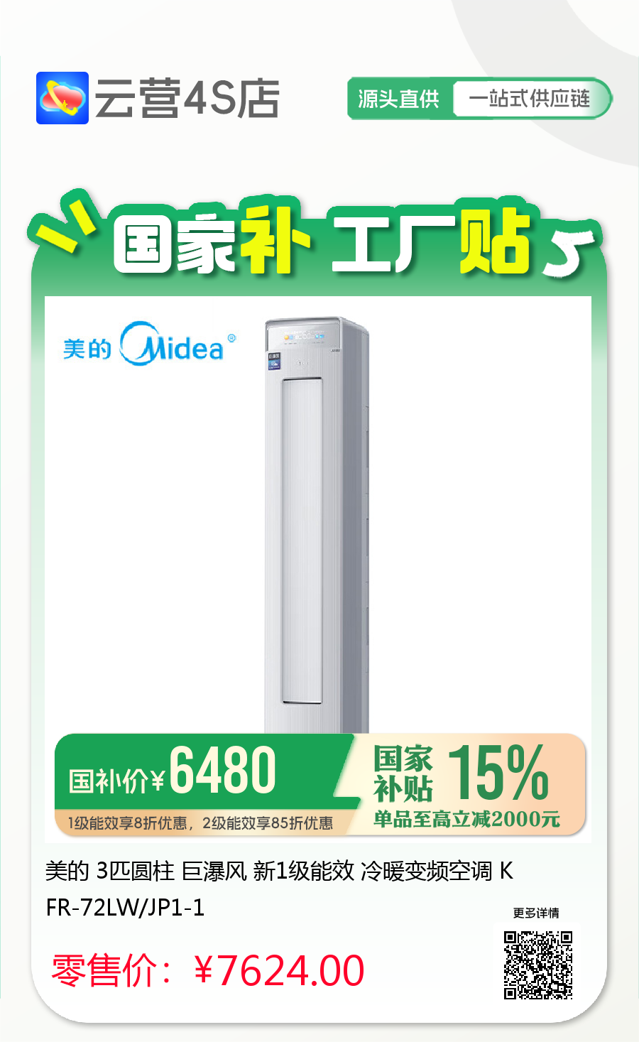 美的 3匹圆柱 巨瀑风 新1级能效 冷暖变频空调 KFR-72LW/JP1-1