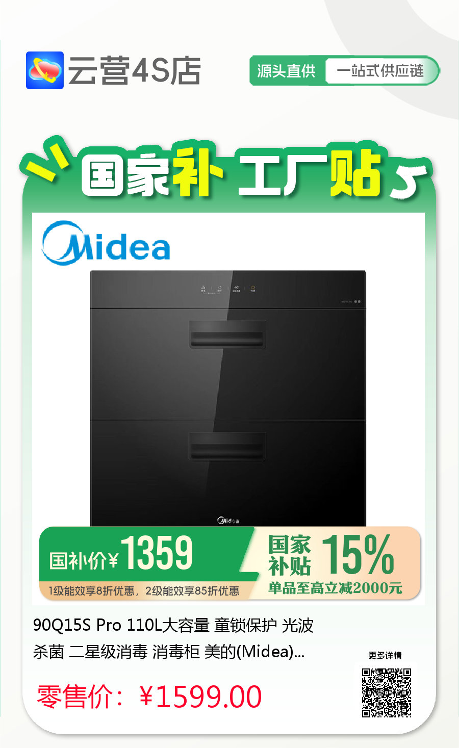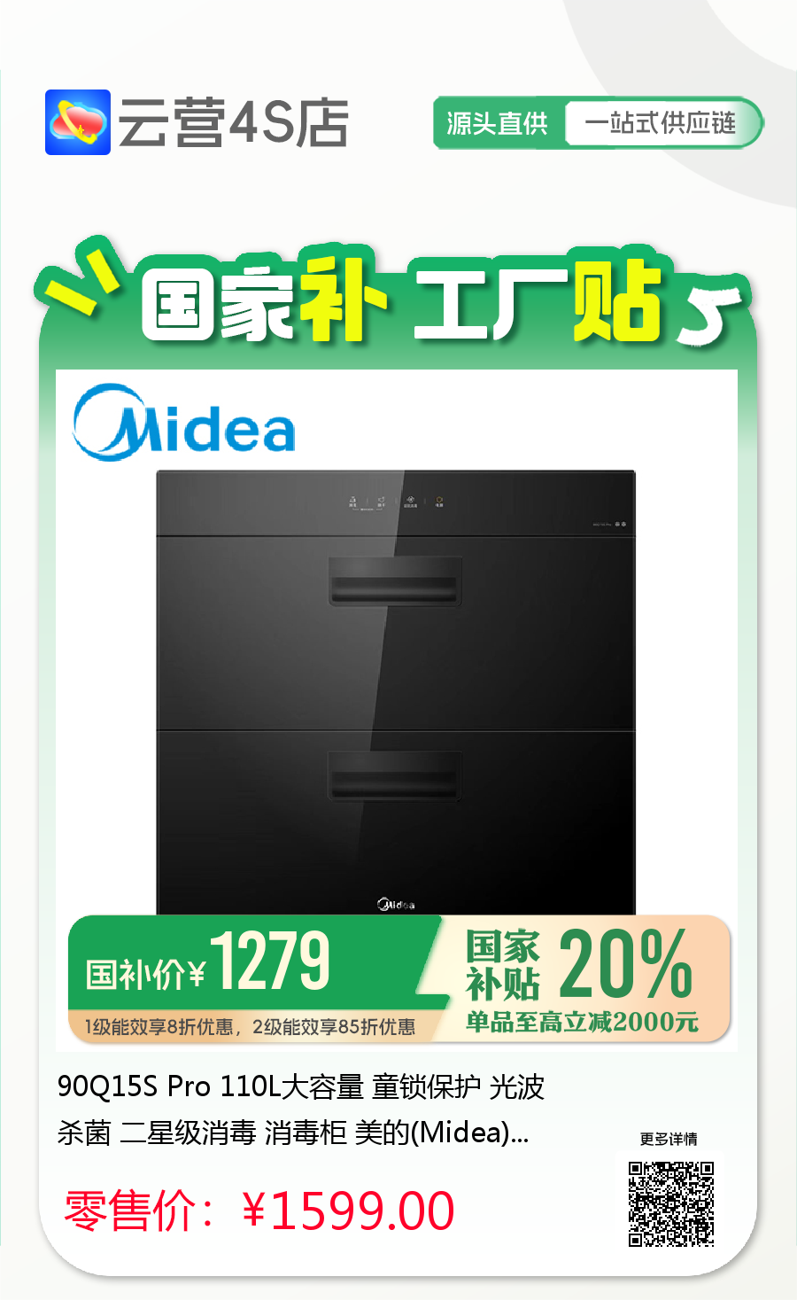 90Q15S Pro 110L大容量 童锁保护 光波杀菌 二星级消毒 消毒柜 美的(Midea)