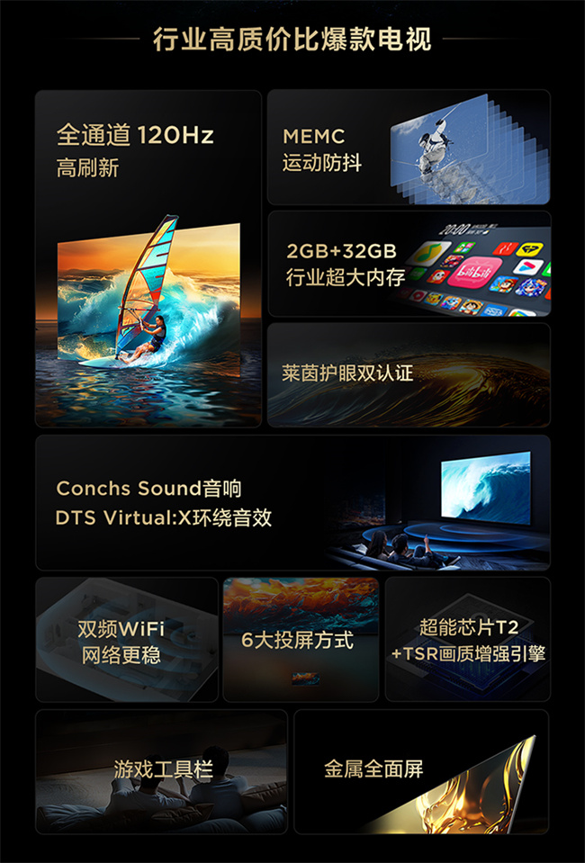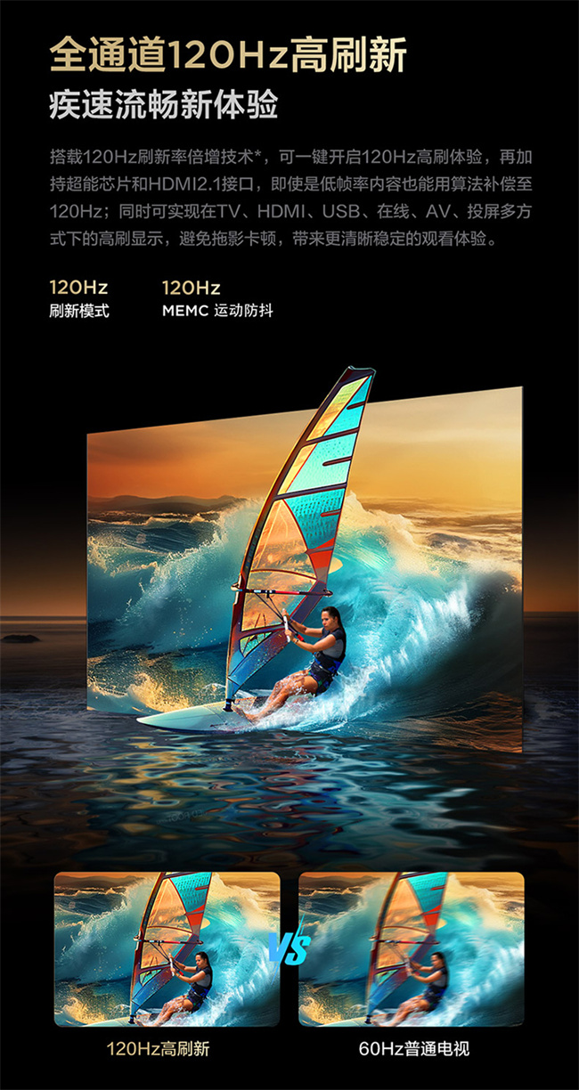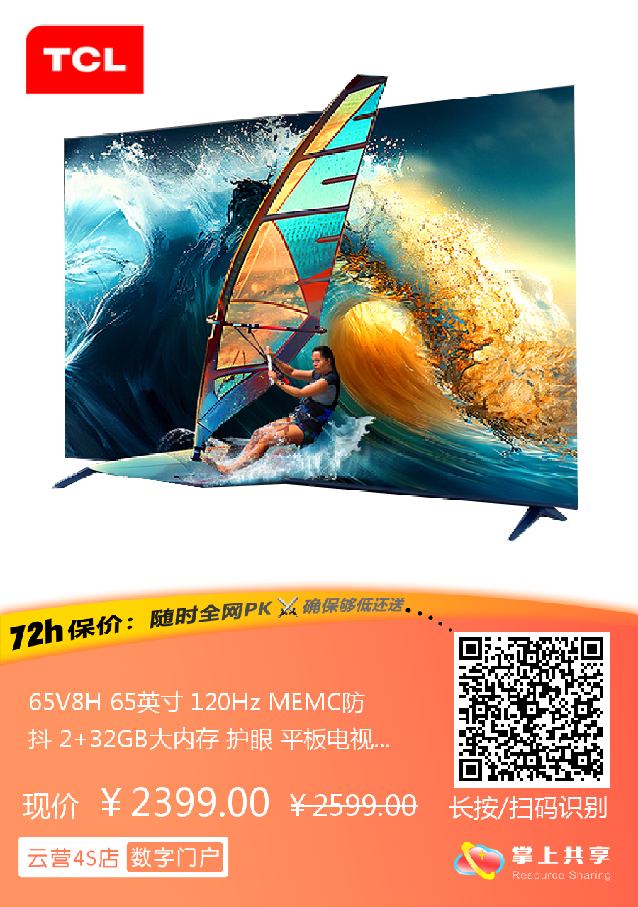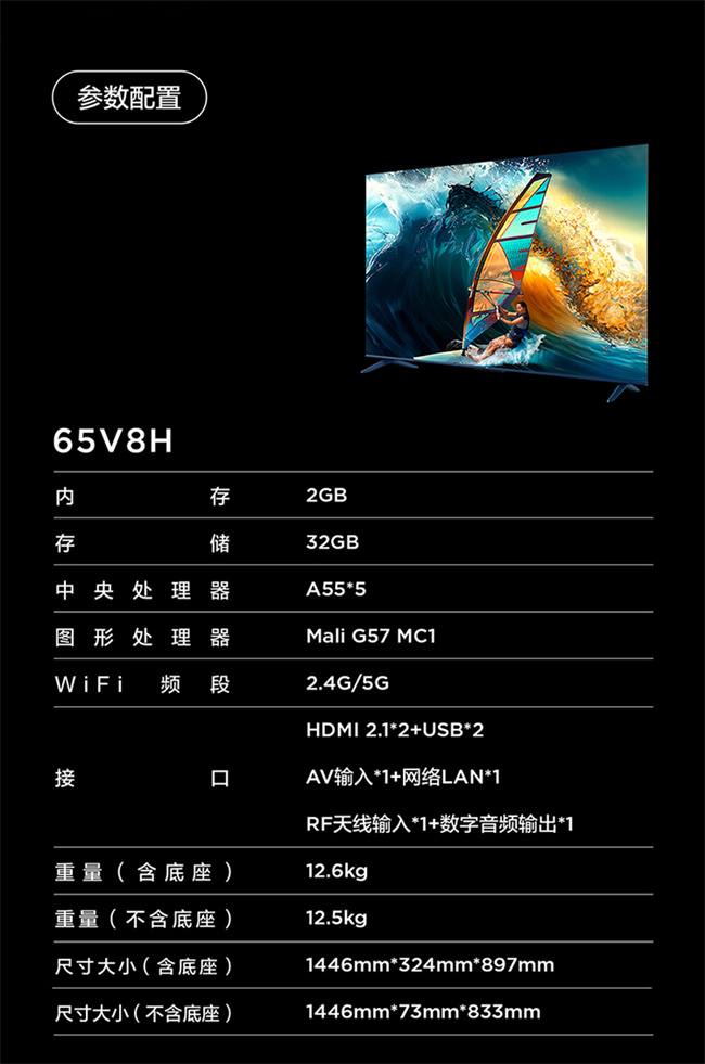 65V8H 65英寸 120Hz MEMC防抖 2+32GB大内存 护眼 平板电视 TCL电视