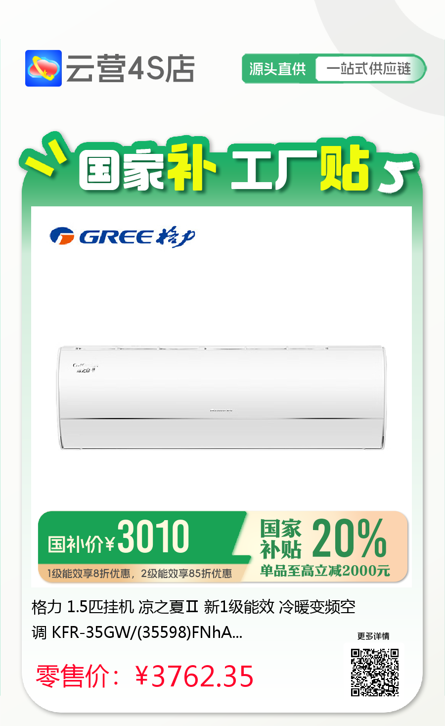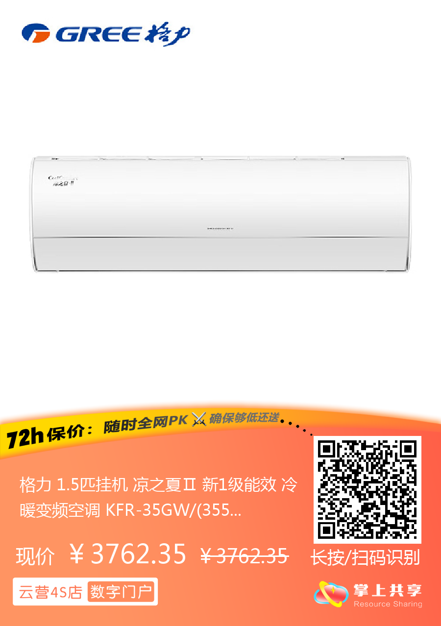格力 1.5匹挂机 凉之夏Ⅱ 新1级能效 冷暖变频空调 KFR-35GW/(35598)FNhAa-B1(WIFI)(温馨白)