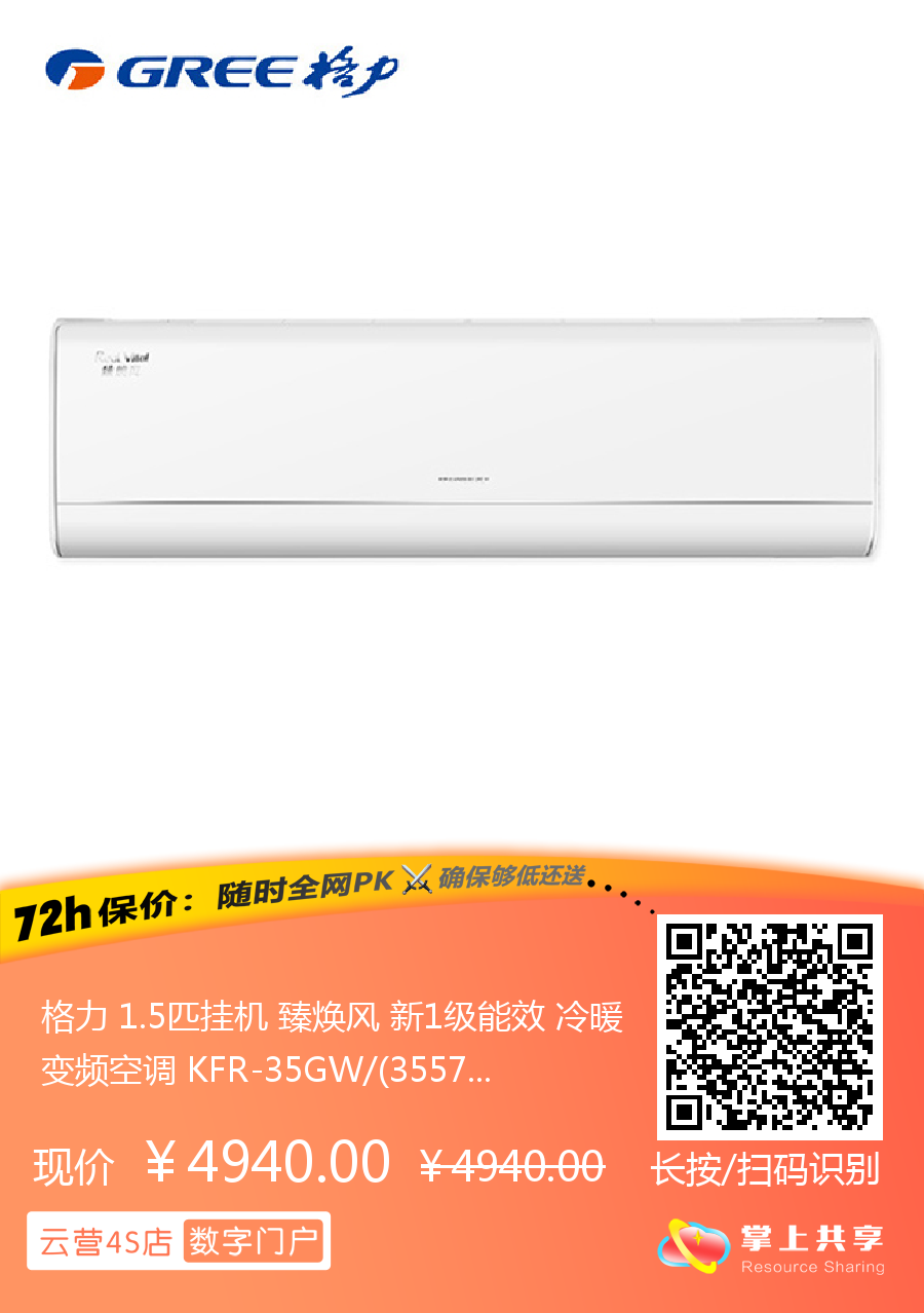 格力 1.5匹挂机 臻焕风 新1级能效 冷暖变频空调 KFR-35GW/(35572)FNhAa-B1(WIF1)(温馨白)