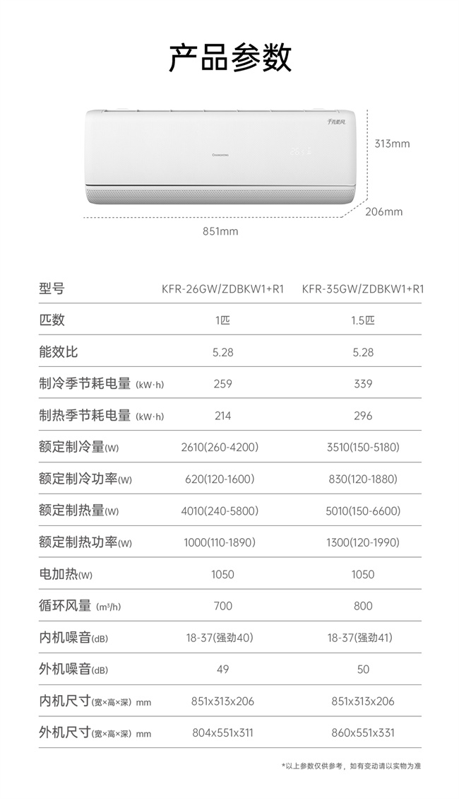 长虹 1.5匹挂机 BK 新1级能效 冷暖变频空调 KFR-35GW/ZDBKW1+R1