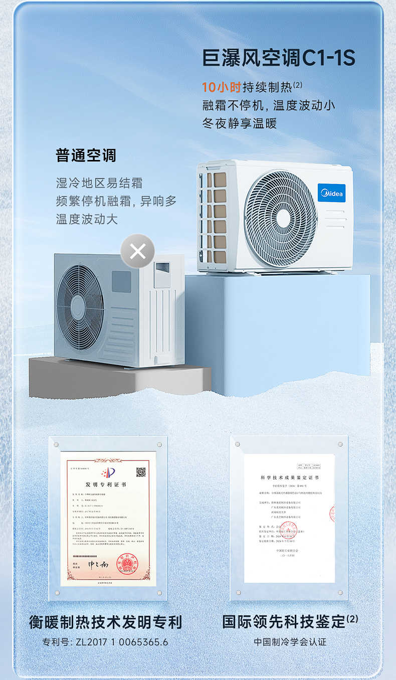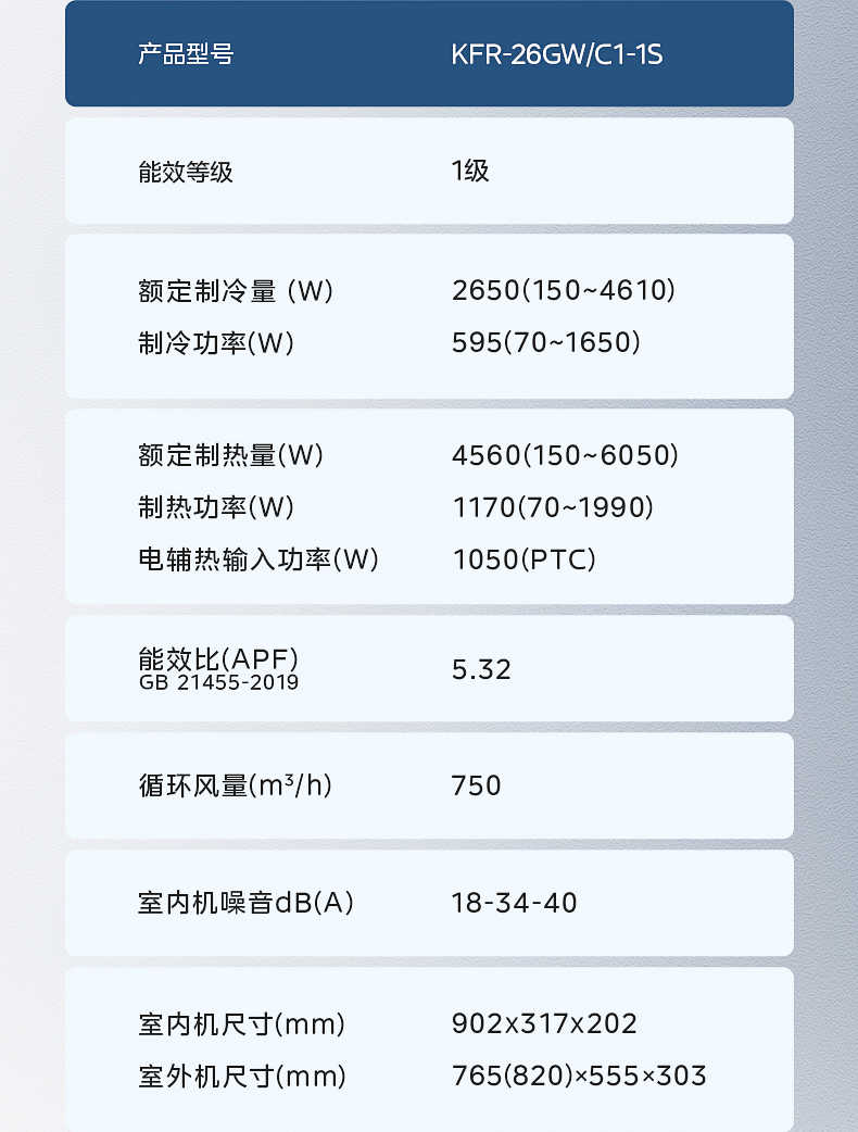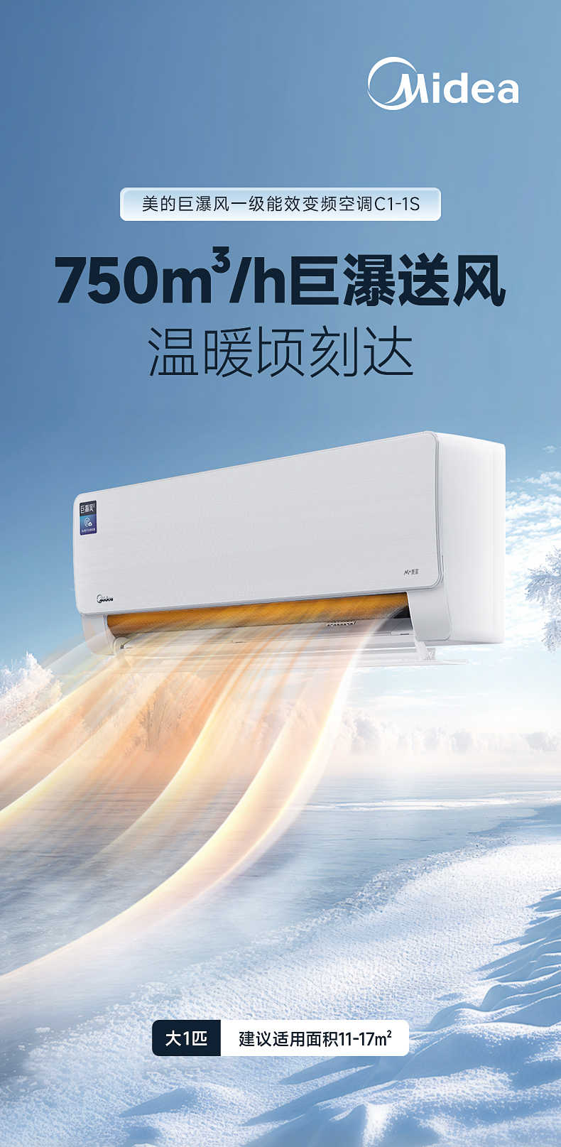 美的 大1匹挂机 巨瀑风 新1级能效 冷暖变频空调 KFR-26GW/C1-1S
