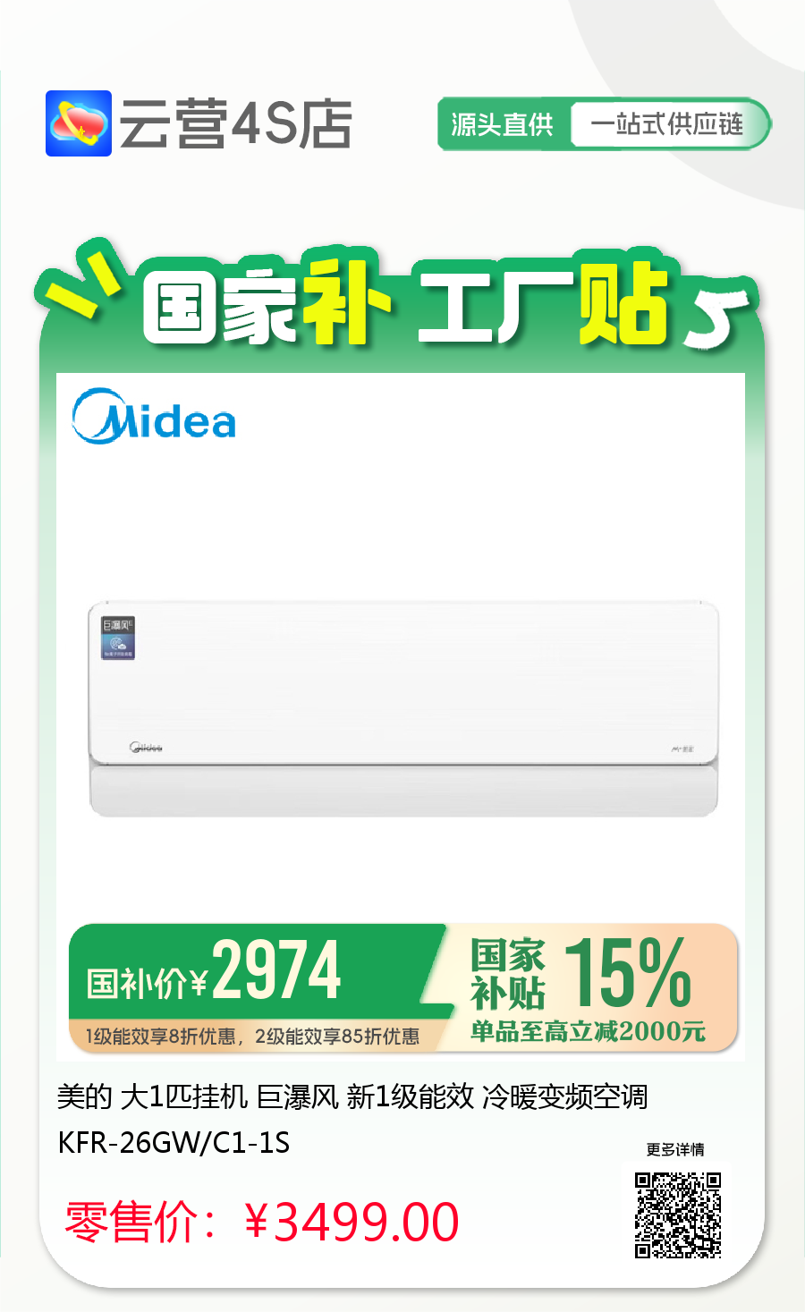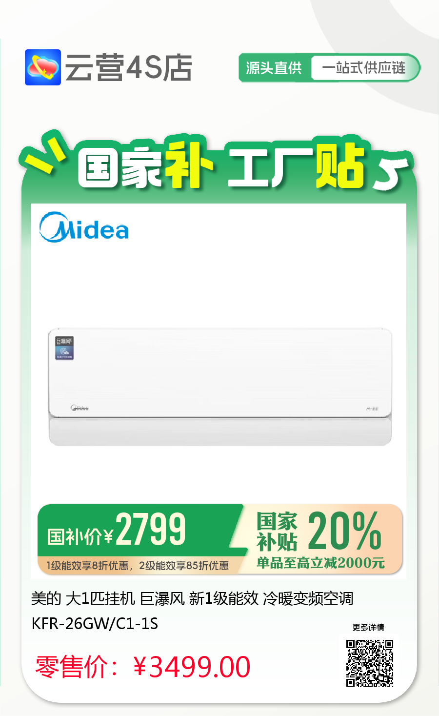 卖家: 美的空调~「云营4S店❃无界直营」地址:小榄镇新市路64号